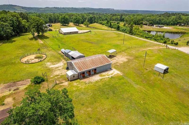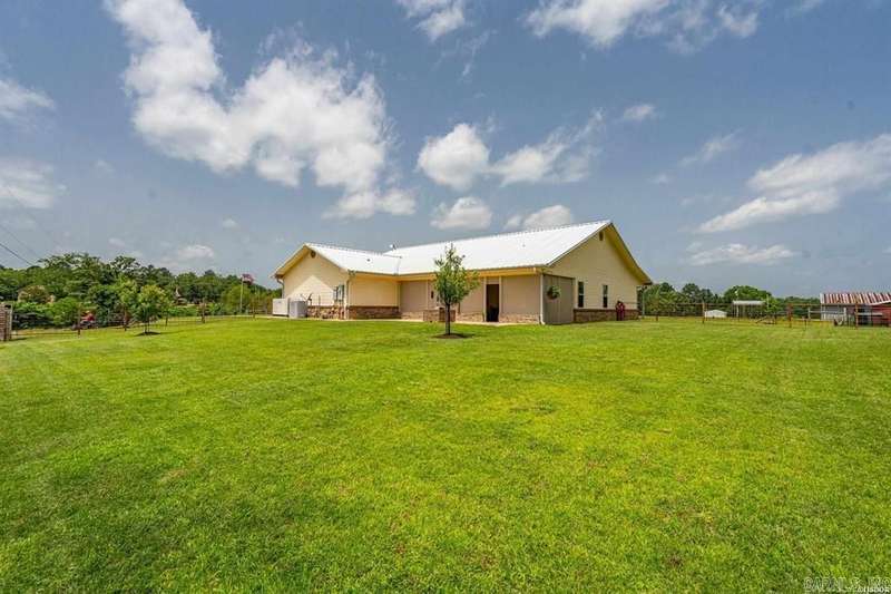 **Charming Ranch Estate Retreat! Your Dream Homestead Awaits!** Welcome to your private oasis! Nestled in the heart of nature, this stunning ranch estate offers a harmonious blend of rural charm and modern convenience, perfect for horse lovers and hobby farmers alike. The home sits on top of ridge with views in all directions. Step inside and be greeted by an expansive open-concept layout where a vaulted ceiling soars overhead, creating a bright airy feeling throughout. Beautiful cork floors underfoot not only add a warm aesthetic, but also provide both durability and style. Enjoy preparing meals in the kitchen while you entertain family and friends. Custom soft close cabinets, large island and upscale appliances make it easy to enjoy. Just off of the kitchen you will find a very large screened in porch where you will enjoy soft breezes and beautiful views. The spacious master suite features a luxurious ensuit with his/hers walk in closets. The large master bath features his/her vanities, water closet and a large shower. The Second and Third bedroom are thoughtfully placed on the other side of the home from privacy. The third bedroom is currently being utilized as an home office