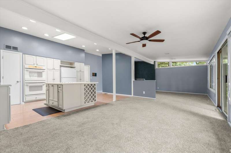 This beautifully designed Mid-Century Modern home features an open-concept layout, 2 full baths, and an attached garage. The oversized island is the heart of the home, ideal for hosting get-togethers and casual gatherings. Large windows fill the space with natural light, enhancing the clean lines and airy feel. Outside, enjoy a spacious backyard with a covered patio has endless potential for outdoor entertaining or relaxation.