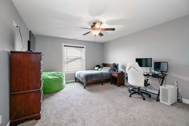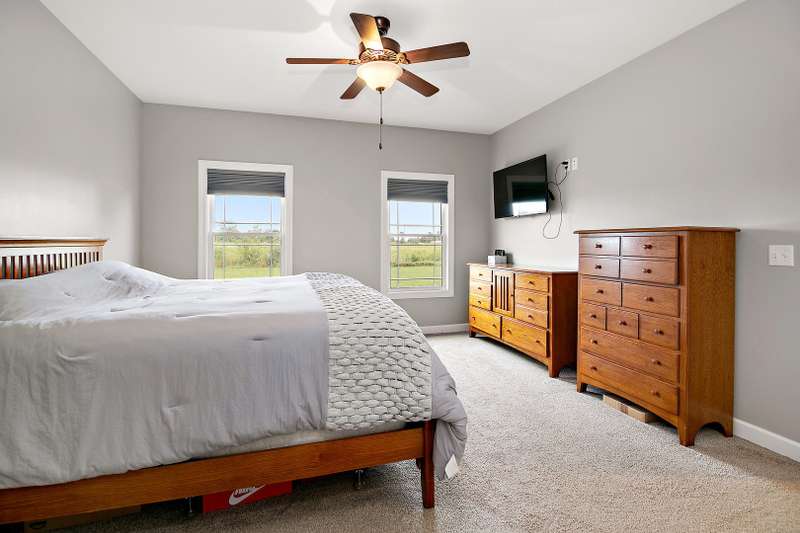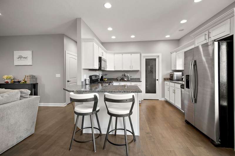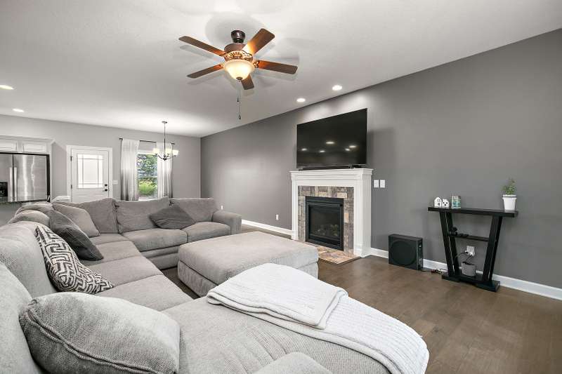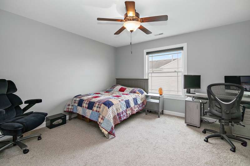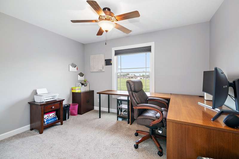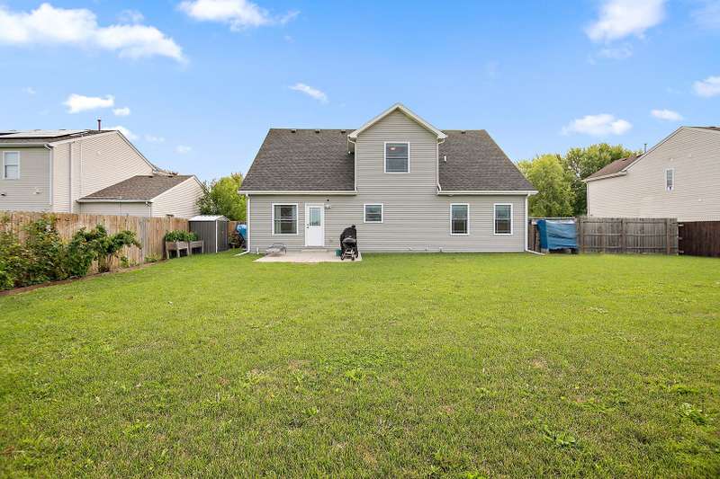 Welcome to 1459 Patriot Way in the desirable Eagle Creek Subdivision of Bourbonnais. Built in 2019, this immaculate home blends modern finishes with a thoughtful layout, offering the feel of a brand-new build without the wait. Step inside to find 9-foot ceilings, wide trim, and hardwood floors throughout the kitchen, dining, and living spaces. The kitchen is a showstopper-featuring white cabinetry, granite countertops, stainless steel appliances (all included), a breakfast bar, pantry closet, and a separate yet open eat-in area perfect for gatherings and everyday meals. The living room flows effortlessly from the kitchen and dining areas and features a statement gas fireplace that creates a warm, welcoming atmosphere. The main-floor primary suite is a true retreat with a walk-in closet and a luxurious tiled walk-in shower. Upstairs, you'll find three oversized bedrooms-each spacious enough for king-sized beds, seating areas, or work-from-home setups, with ample closet space throughout. Main-floor laundry adds convenience (washer and dryer stay), and the full unfinished basement offers a smart layout with plumbing already in place for a future bathroom-giving you endless potential to expand. Enjoy outdoor living with a concrete patio, a backyard storage shed, and privacy provided by open field views behind the home. The heated 3-car garage offers ample storage and workspace, making it perfect for hobbies, vehicles, or both. Located just moments from two nearby parks, this home is pristine, practical, and move-in ready-offering the very best of Bourbonnais living.