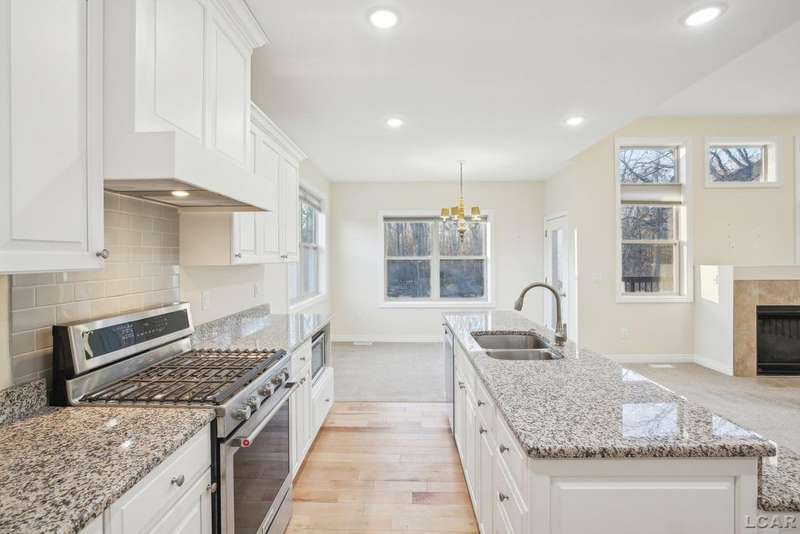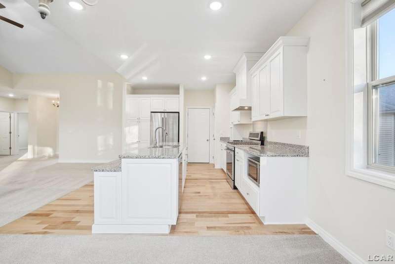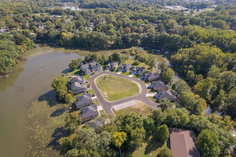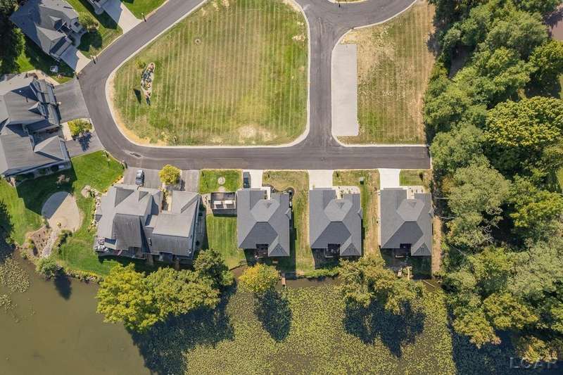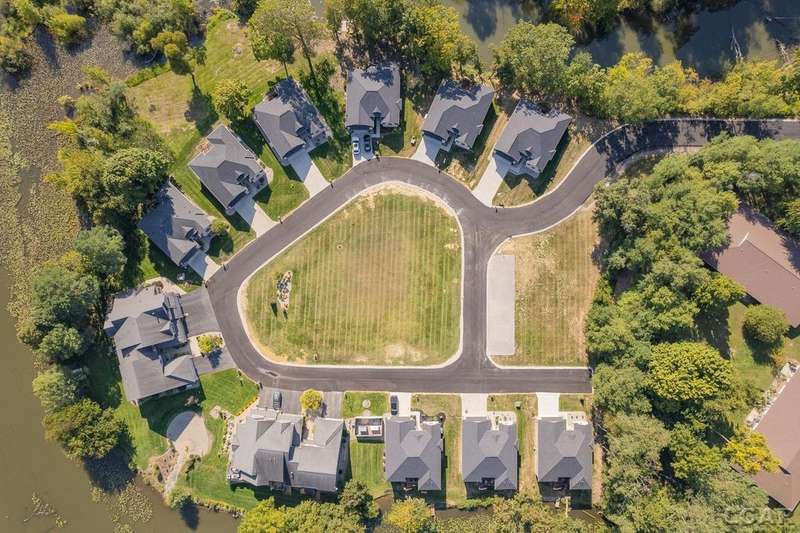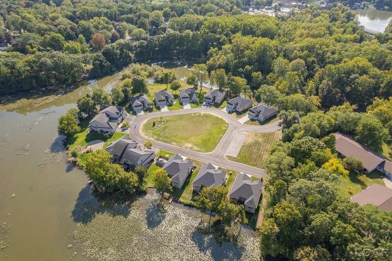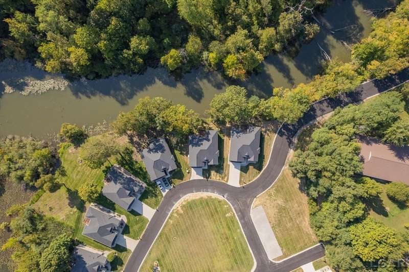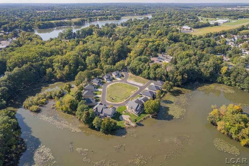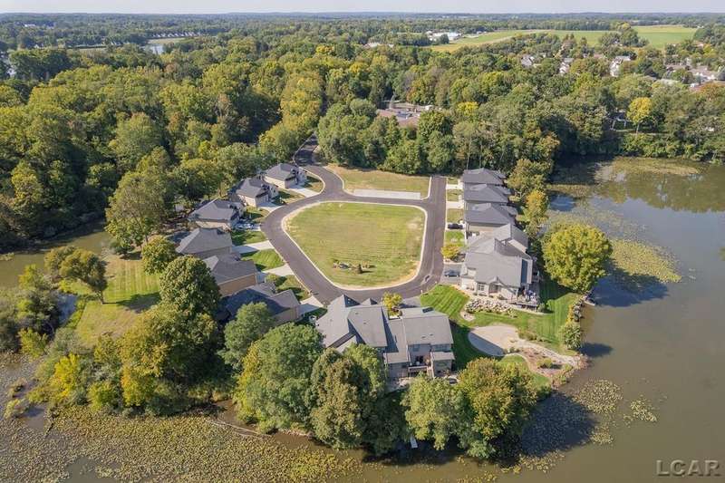 Right-size on the River Raisin! Newer 2022 Built Detached Condo! Exclusive neighborhood and Sunset River Views! New road paving just completed! 1,430 SF, 3-beds, 3 baths, 2-car attached garage, and finished basement! Cathedral ceilings, gas fireplace, granite counters, custom LaFata cabinets, counter seating at island, pantry closet, back deck with stairs, KitchenAid appliances and whole house generator included! River view also from the spacious primary bedroom ensuite with 2 sinks, tiled shower, walk-in closet, and laundry closet with washer and dryer to stay. The finished basement offers daylight windows, large family room, 3rd bedroom, 3rd bath, and ample storage area. Hardwood floors, ceramic tile, high efficiency forced air furnace, zoned basement heating, central air, and gas hot water heater. Stair lift and owned water softener also included. Low association fee includes lawn care, road maintenance/snow removal, and snow removal on driveway and walkway. Popular North side Tecumseh location, convenient city services, minutes to groceries, shops, and amenities. Easy Living with Serene River and Wildlife Views!