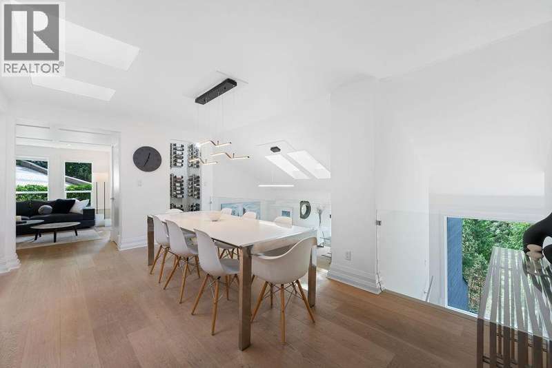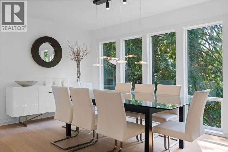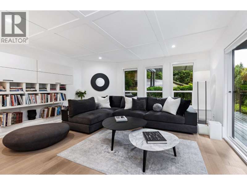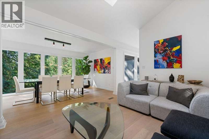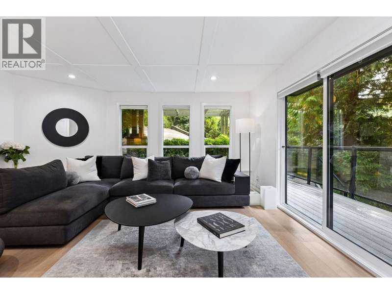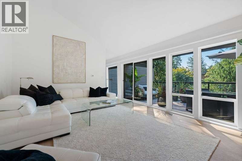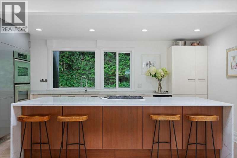 A stunning West Coast Contemporary residence tucked away on a quiet cul-de-sac in Bayridge. Thoughtfully reimagined and architecturally refined, this home is bathed in natural light with floor-to-ceiling windows and skylights framing tranquil forest and Cypress Creek views. The bright, open floor plan strikes the perfect balance between warm, intimate living and sophisticated entertaining. Elegant wide-plank oak hardwood floors, vaulted ceilings, a custom SieMatic kitchen with Wolf and Liebherr appliances, and an oversized marble island anchor the main level. Expansive balconies off the living room and a private lower deck create seamless indoor-outdoor flow, ideal for gatherings or quiet retreat. With the primary bedroom on the main and three additional bedrooms below, the layout offers both flexibility and comfort. A short walk to Isetta Café, minutes to Caulfeild Village, and located within West Vancouvers top catchments of West Bay Elementary School and Rockridge Secondary School. (id:58403)