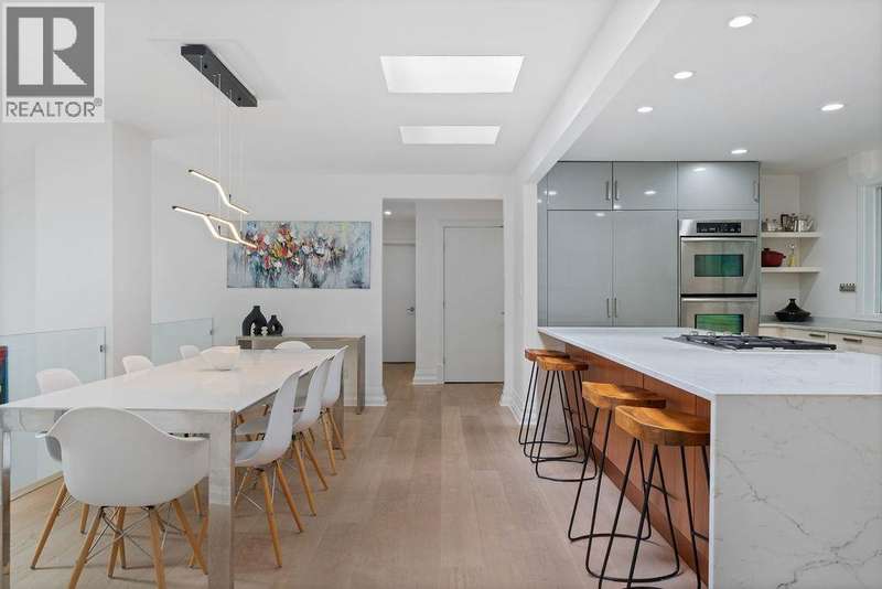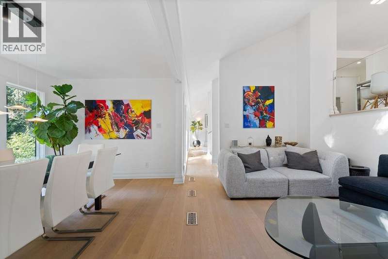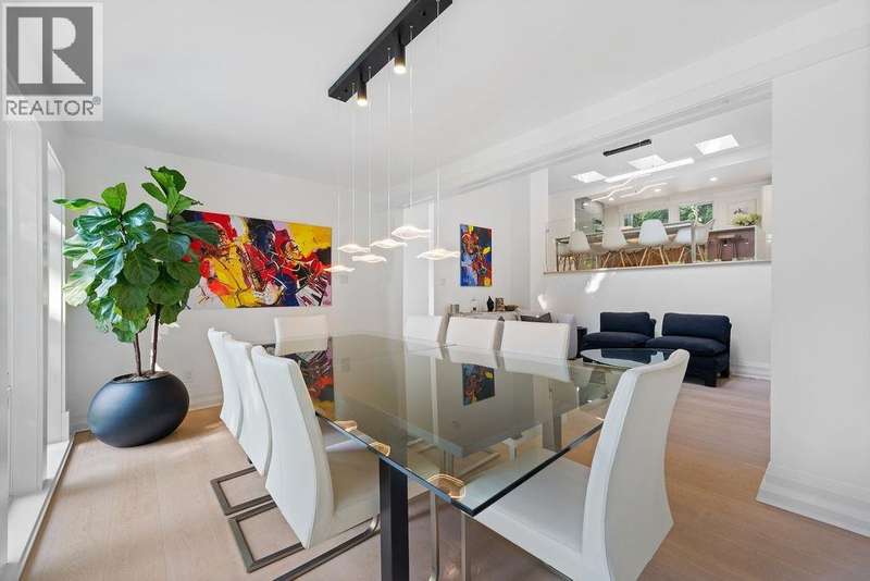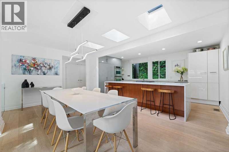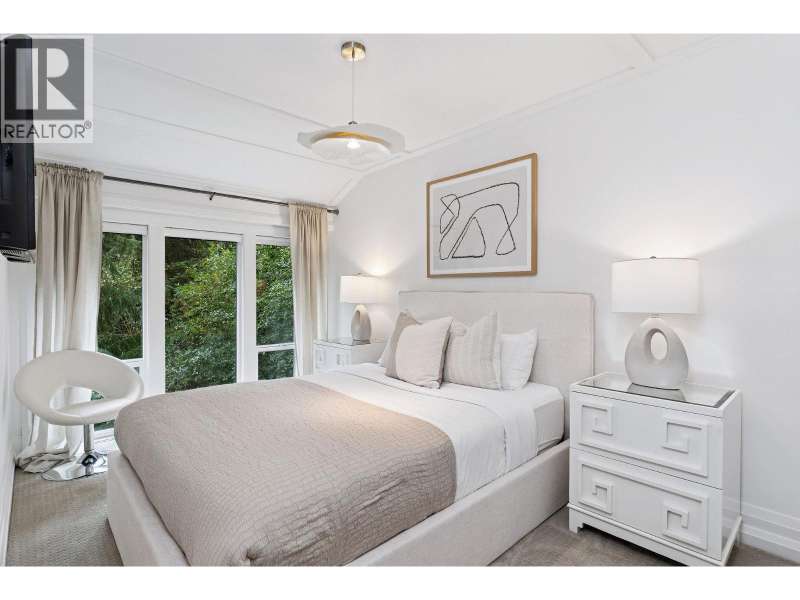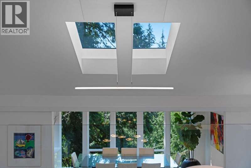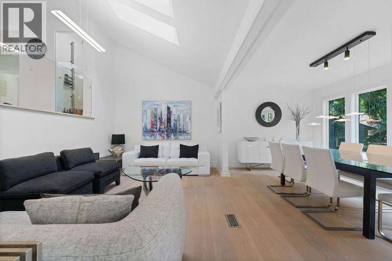 A stunning West Coast Contemporary residence tucked away on a quiet cul-de-sac in Bayridge. Thoughtfully reimagined and architecturally refined, this home is bathed in natural light with floor-to-ceiling windows and skylights framing tranquil forest and Cypress Creek views. The bright, open floor plan strikes the perfect balance between warm, intimate living and sophisticated entertaining. Elegant wide-plank oak hardwood floors, vaulted ceilings, a custom SieMatic kitchen with Wolf and Liebherr appliances, and an oversized marble island anchor the main level. Expansive balconies off the living room and a private lower deck create seamless indoor-outdoor flow, ideal for gatherings or quiet retreat. With the primary bedroom on the main and three additional bedrooms below, the layout offers both flexibility and comfort. A short walk to Isetta Café, minutes to Caulfeild Village, and located within West Vancouvers top catchments of West Bay Elementary School and Rockridge Secondary School. (id:58403)