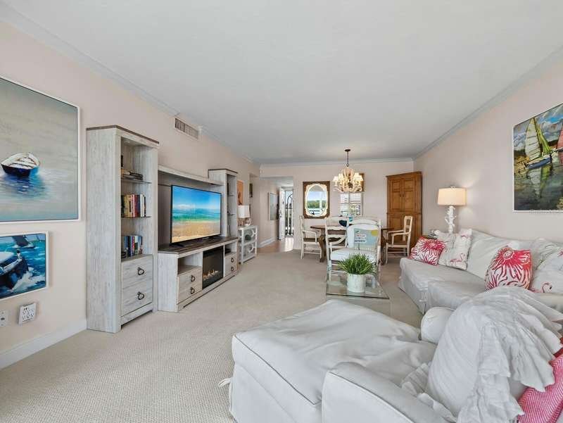 Significant Reduction ! Enjoy breathtaking water views from most rooms in this beautifully renovated top-floor 2-bedroom, 2-bath condo located on the 3rd floor of the highly desirable Longboat Harbour community. Styled with a touch of French flair, the interior features plush velvety carpet throughout—luxurious underfoot and easy on the knees. The kitchen is outfitted with sleek stainless steel appliances, and both bathrooms have been tastefully updated. Impact windows provide peace of mind, and a stacked washer and dryer are conveniently located inside the unit. Longboat Harbour is a vibrant waterfront community offering resort-style living. Residents enjoy access to four heated pools, a well-equipped fitness center, sauna and locker rooms, as well as billiards and game rooms. For outdoor recreation, there are shuffleboard, tennis, and pickleball courts, along with a fishing pier. The community also has a full-time on-site manager for added convenience. Boating enthusiasts will appreciate the available docks that accommodate sail and power boats up to 34 feet on a first-come, first-served basis for an annual fee. There is additional storage for bikes and kayaks, and members are welcome to join the Longboat Harbour Yacht Club, which hosts a variety of social activities. All owners enjoy deeded access to a private beach directly across the street, complete with restrooms, picnic tables, indoor showers, and beach chair storage. Ideally located mid-key, this home is convenient to everything Longboat Key has to offer.