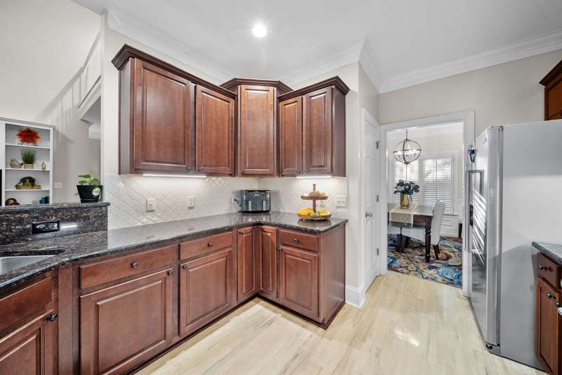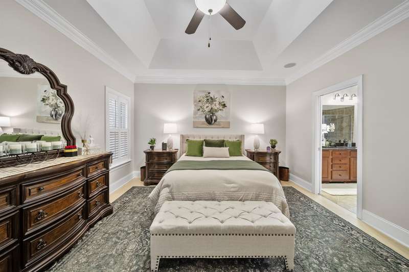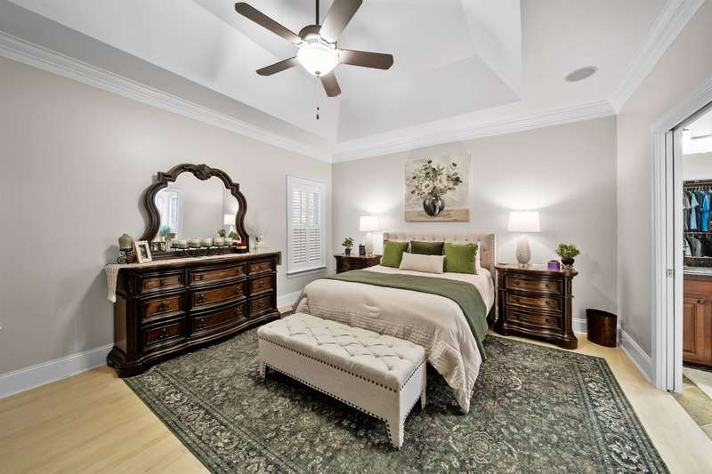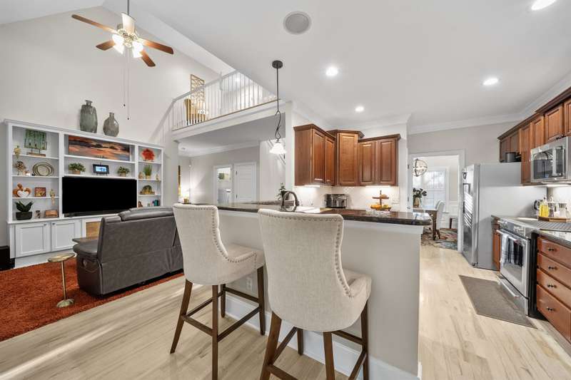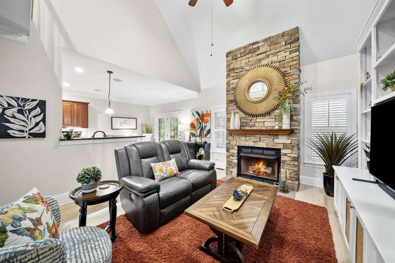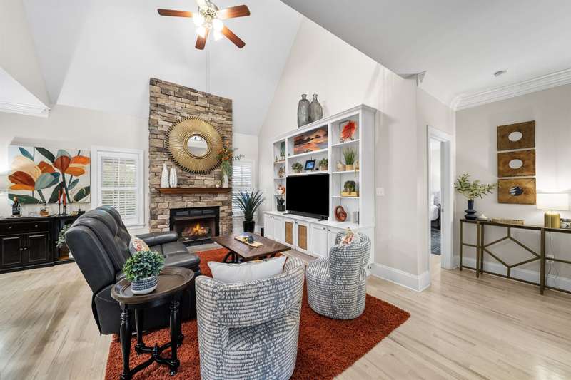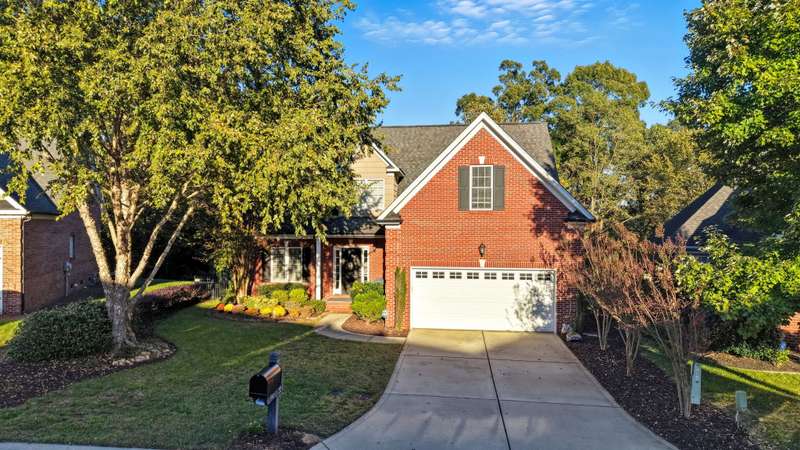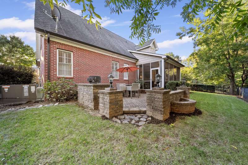 Welcome to this exceptional all-brick residence in the prestigious gated community of Old Course at Cramer Mountain. Perfectly situated alongside the par-4 fourth hole of the Cramer Mountain Club, this elegant two-story home offers 3 bedrooms, 3.5 baths, and a spacious bonus/recreation room above the two-car garage.The main-level primary suite provides comfort and convenience, while the interior showcases refined craftsmanship throughout ? including whitewashed hardwood floors, custom cherry cabinetry, granite countertops, and premium stainless steel appliances featuring a convection oven.The open-concept design connects the breakfast nook and bar to a soaring two-story living room accented by custom built-ins and a striking stone fireplace.Step outside to relax or entertain on the screened-in porch or the beautifully designed brick and stone patio complete with a built-in fire pit. The backyard is fully enclosed with a sleek black aluminum fence, creating the perfect blend of privacy and style.