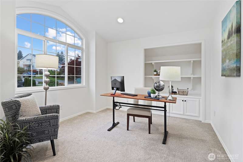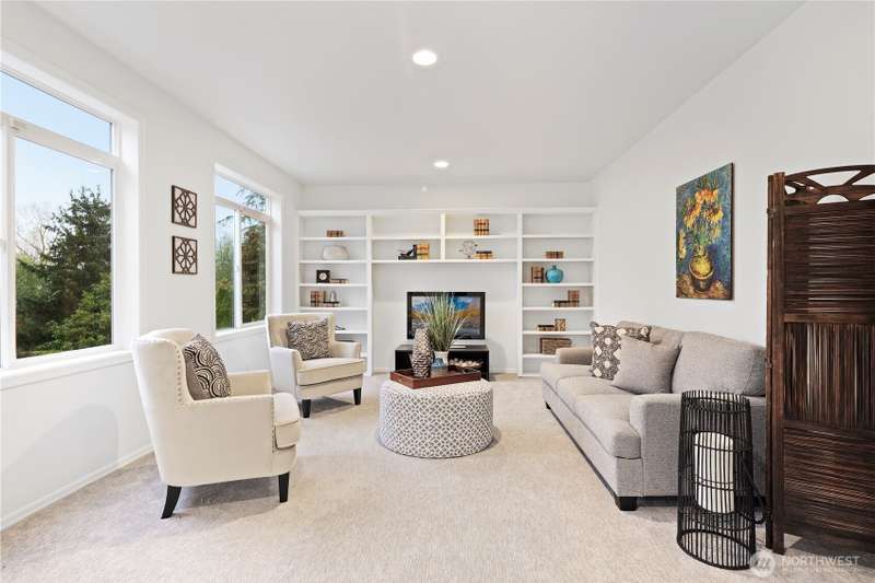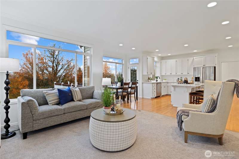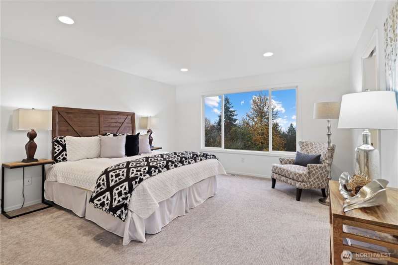 The WOW house you've been looking for! Luxurious living meets year-round natural beauty in this refined, move-in ready Burnstead home backing to protected green space w/ serene Cascade views. Soaring ceilings create a bright, airy feel across 3900+ sq ft, offering flexible spaces for multiple offices, gym, studio, media, or multigenerational living. The chef’s kitchen flows into warm gathering spaces w/ two fireplaces. Upstairs, the primary suite features a walk-in closet & spa-worthy 5-piece bath. A daylight basement adds a guest suite, second family room, & additional office. New roof, A/C, 3-car tandem garage, & 600 sf storage. Minutes to I-405, Totem Lake Village, Woodinville Wine Country, & top Northshore schools. Pre-inspected.