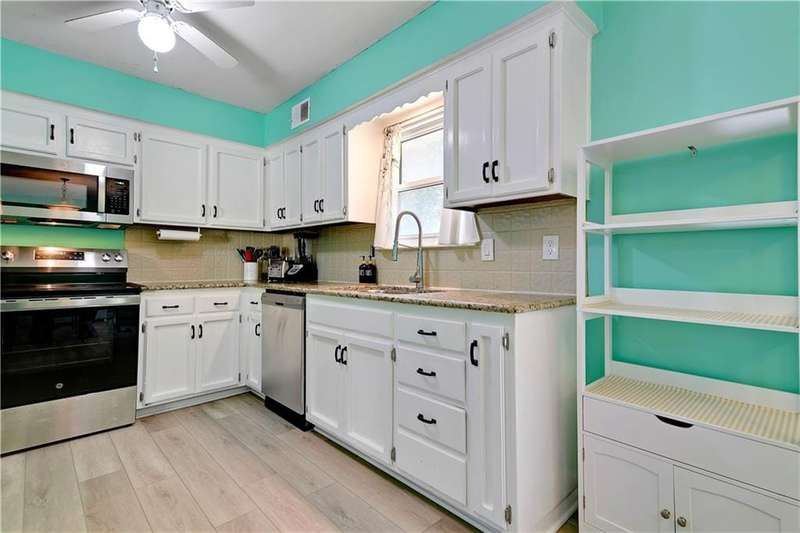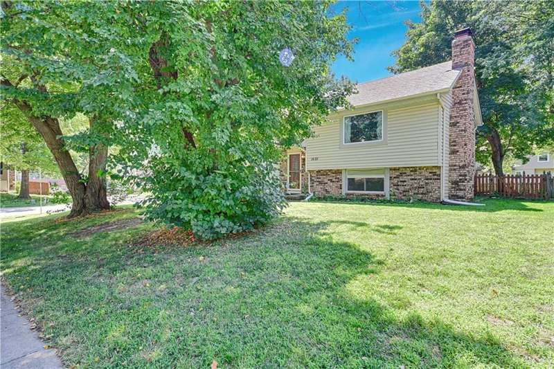 Wonderful Updated Home on Large Treed & Fenced Corner Lot w/ Side Entry 2 Car Garage! All New Luxury Vinyl Plank Flooring Plus All New Carpet! White Kitchen w/ Granite Counter tops & Stainless Steel Appliances. Great Room with Vaulted Ceiling, Huge Picture Window & Cozy White Brick Fireplace Opens to Large Kitchen with Eating Area That Opens Onto Deck (Deck Needs Repair). Master BR with En Suite Bathroom has Been Updated with New Vanity, New Shower Surround & Luxury Vinyl Plank Flooring. (New Shower Needs to Be Trimmed Out & New Plumbing Fixtures Hooked Up). Daylight Finished LL w/ Family Room & Office or Non-Conforming 4th BR Plus Half Bath. Maintenance Free Vinyl Siding & 8 Year Old Roof. Award Winning Olathe Schools. Selling In Its Present Condition.