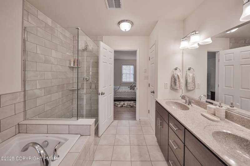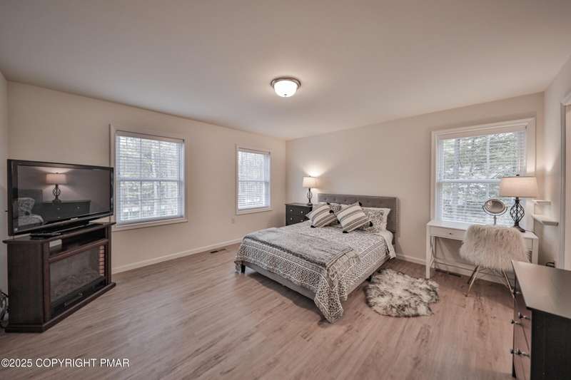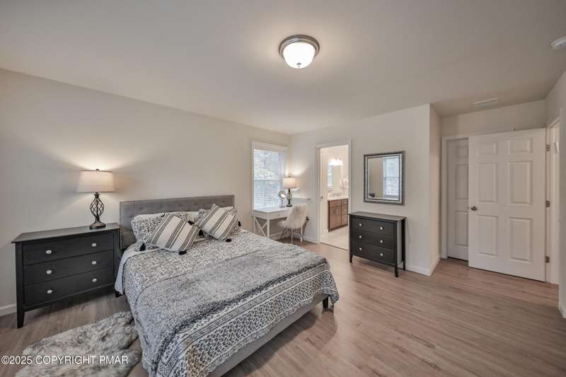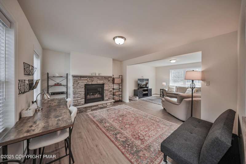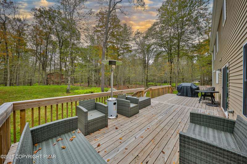 Welcome to your dream escape in the heart of the Poconos! This gorgeous 4 bedroom, 2.5 bathroom home offers the perfect blend of modern luxury, privacy and resort style amenities. Whether you are searching for a personal retreat or a lucrative short term rental, this property is an absolute gem! Step into this newly built Colonial home in Pristine condition. A spacious living room with a stone face fireplace that is perfect for gatherings. Cook like a chef in a beautifully appointed eat-in kitchen with high end finishes, stylish cabinetry, gas stove, plus a wall oven and granite countertop with a breakfast bar area that leads to sliding doors to your private oversized deck. In addition there is a formal DIning room and a half a bath accompanying the First Floor. Upstairs you will find four generously sized bedrooms including a luxurious primary suite with a walk-in closet and spa style bathroom with double sinks. All the closets in the house have been upgraded with California cabinetry. The Fire pit area is perfect for relaxing under the stars. Roast marshmallows by the campfire and enjoy nature and luxury combined.. Perfect spot for weekend getaways or full time living. Close to all the Pocono Attractions, ski resorts, indoor and outdoor waterparks, hiking, shopping and so much more. Come see for yourself why this home is not just a place to live, but a place to fall in love with! In addition the development offers kids activities, skiing,sledding, tubbing, tennis courts, A club house, and a place you want to come to. This home will not disappoint.