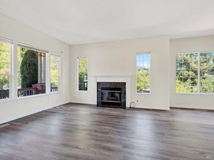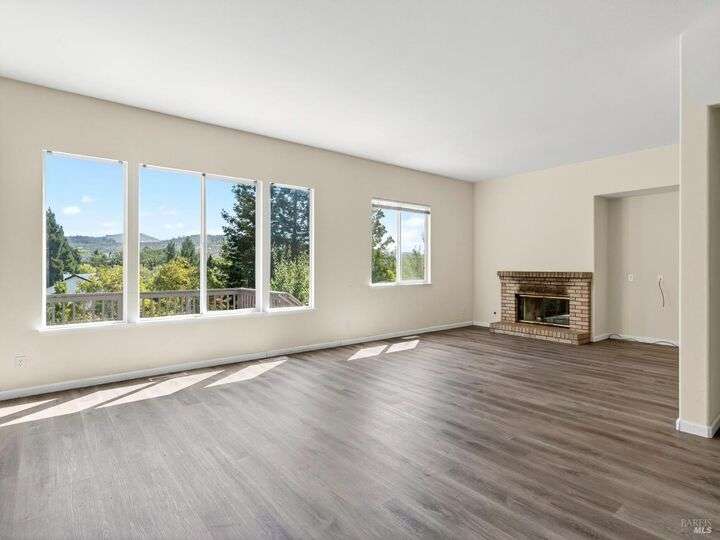 Welcome to this spacious 4-bedroom, 2.5-bath home set on a generous lot in the sought-after Skyhawk community. The welcoming living room features a cozy fireplace. At the same time, the open-concept kitchen flows seamlessly into the family room, complete with its own fireplace and expansive windows showcasing stunning hill views. A conveniently located bathroom and laundry room on the main level add to the home's functionality. Upstairs, you'll find four bedrooms, including an oversized primary suite with a walk-in closet, jetted soaking tub, and large windows framing serene hillside vistas. The upstairs level also offers versatile nook areasideal for a home gym, homework station, or extra seating spaceplus closets and built-in cabinetry that provide excellent storage throughout. Step outside to a spacious deck overlooking the expansive backyard, ideal for entertaining, gardening, or simply taking in the peaceful surroundings. Located close to top-rated schools, parks, walking trails, and shopping, this home offers both comfort and convenience in one of the area's most desirable neighborhoods.