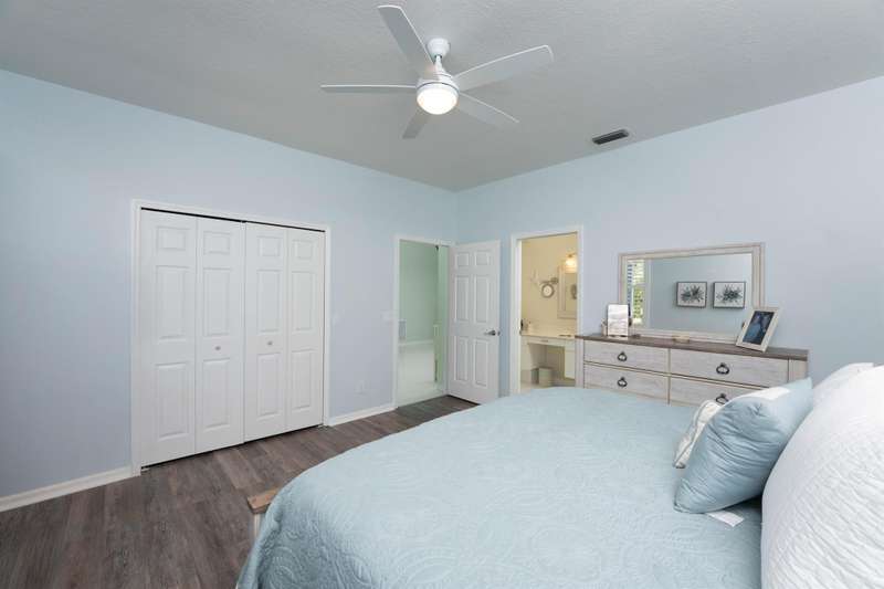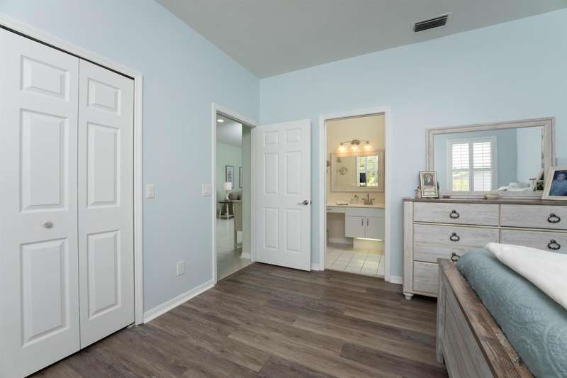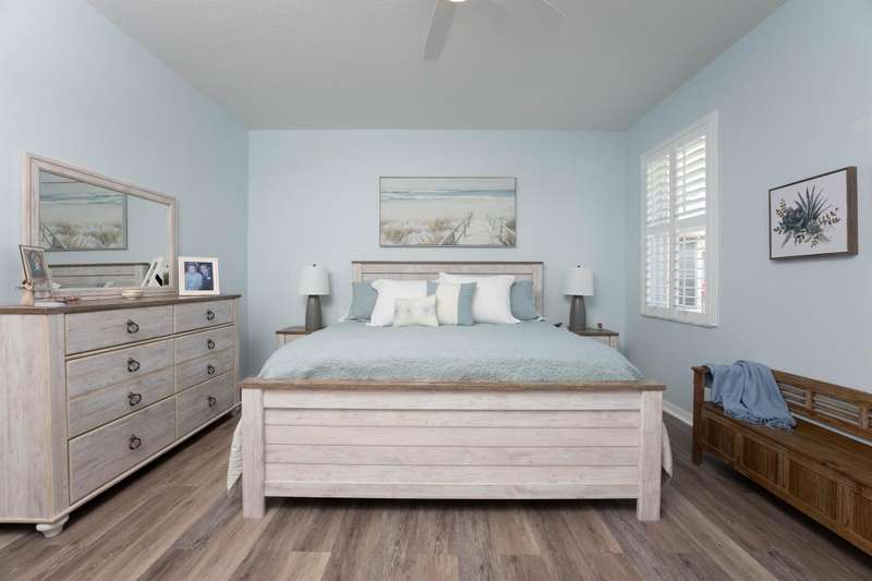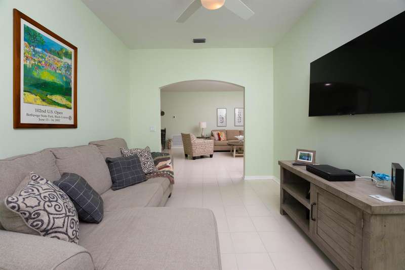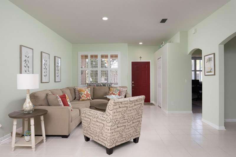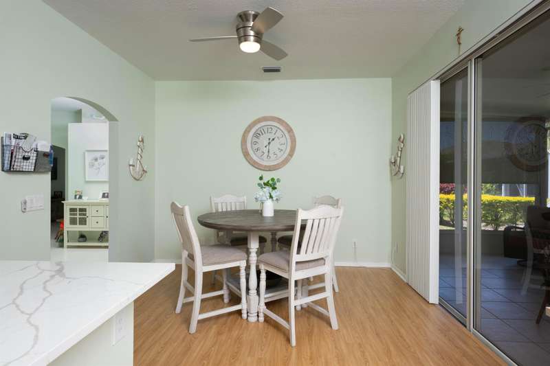 A gorgeous, well-maintained home nestled in the Isle of San Marino, of Kings Isle is ready for you! This 2 bedroom, 2 bathroom home complete with a spacious living area and separate den will make daily living a breeze. A bright, completely renovated kitchen with quartz counters and newer floors updated in 2020, plantation shutters throughout, updated bathroom shower doors and fixtures, newer exterior paint and gutters and a newer 2023 water heater are just a few of the gems in this home. Enjoy the warm Florida evenings in the comfort of the screened front and back patios. Enjoy the community's pool, clubhouse, pickleball and tennis courts, along with quiet streets for biking. Located in St. Lucie West, this active 55+ community is close to lots of shopping, entertainment and I-95.