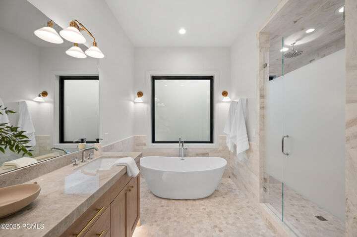 LANDSCAPING & HOME COMPLETED!This thoughtfully crafted new construction offers a harmonious blend of modern design, traditional warmth, and luxurious spaces. Every detail is designed to make you feel at home.Upon entering, you'll be welcomed by a light-filled grand great room featuring soaring 12-foot ceilings, exposed beams, and breathtaking panoramic views. The open-concept floor plan seamlessly connects the living, dining, and gourmet kitchen areas, creating an inviting space to entertain or unwind. Step out onto the spacious front deck, where you can relax and take in the stunning mountain vistas.The lower level, with its impressive 10-foot ceilings, includes a cozy living room complete with a wet bar for entertaining and a dedicated exercise room to support your active lifestyle. Each bedroom boasts built-in closets, combining ample storage with elegant organization. The mudroom is thoughtfully designed for Park City living, providing the perfect spot to store your ski gear or hiking boots after a day of adventure.This home is filled with luxurious touches, from high-end finishes to functional extras like a workshop or additional storage space off the garage. It's also wired for sound and security, offering convenience and peace of mind.Located just minutes from world-class skiing, hiking, and biking trails and a short drive to Salt Lake City International Airport, this home provides unparalleled access to the best Park City lifestyle. Whether you're seeking a year-round residence or a mountain retreat, this property perfectly blends comfort, style, and adventure.