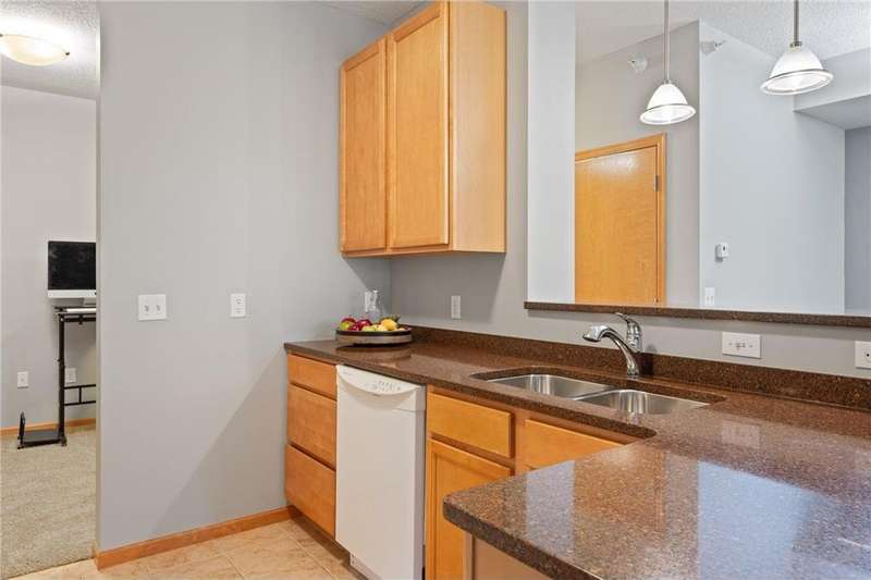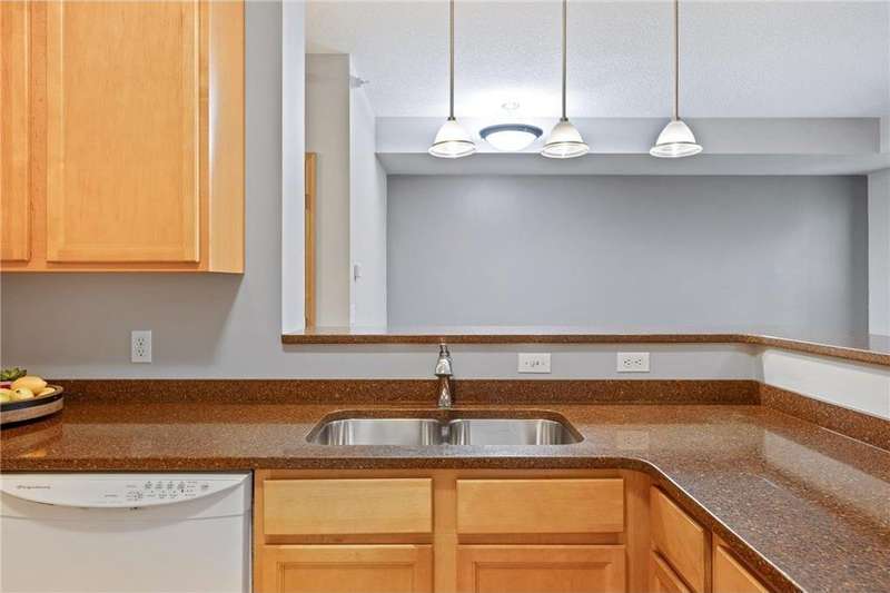 Welcome to Emerald Gardens! This is the first time this unit has been for sale since original construction. Welcoming common spaces will greet you upon entry to the building. A quick elevator ride to the third floor and just around the corner you’ll find your unit. Inside your unit you’ll appreciate the tiled foyer with convenient coat closet and next to that the utilities. A flex space that was used for a den area could be a formal dining or exercise space. There is a half bath in this area too. The kitchen is open to the living and dining areas and you’ll love the amount of windows and the tucked in balcony. The primary bedroom has a generous walk-in/thru closet and flows seamlessly into the full bathroom with recent upgrades to the tub (tile and fixtures). The laundry closet is located here. The building is secure and this unit comes with an assigned parking space in the heated garage, a parking pass for the private side roads and a storage space on the same floor as the unit. Easy walk to the light rail on University and all the wonderful amenities in the area. Pet friendly building.