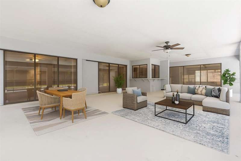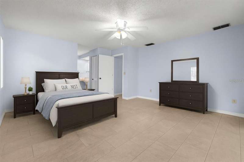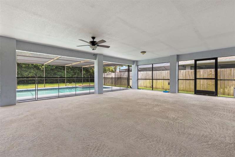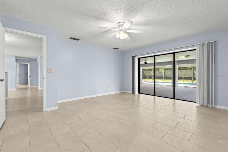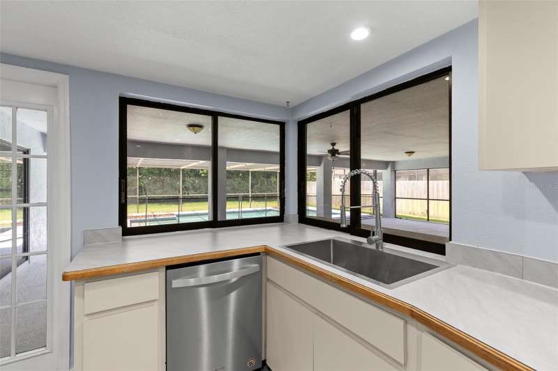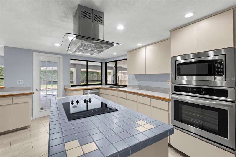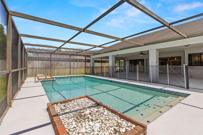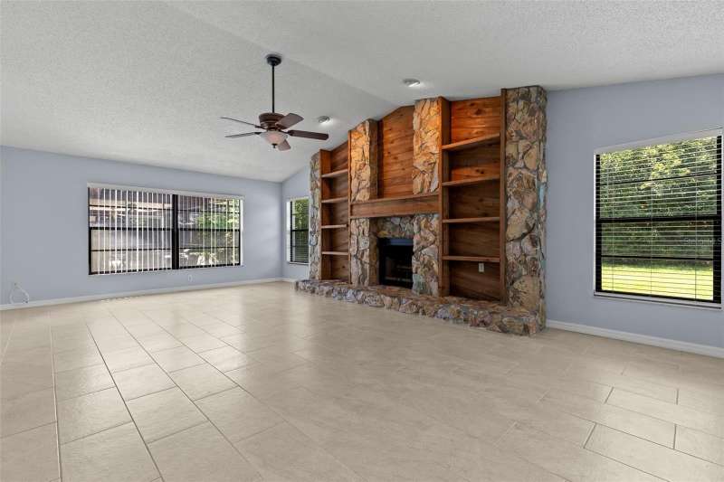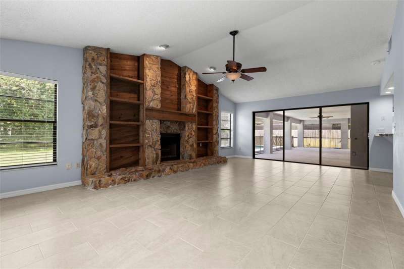 A delightful blend of relaxed elegance coupled with attention to detail makes this a fantastic opportunity in Carrollwood Village. Designed for entertaining, this single-story floor plan offers 2307 square feet and encompasses a split 3 bedrooms, 2 bathrooms floor plan, formal living and dining room, family room, chef’s kitchen on a spacious lot with a salt water pool. Lovely curb appeal leads to a double door entrance and the bright and cheerful foyer invites you into the elegant living room with sliders to the lanai and the spacious dining room to the left with a large picture window. Updated, gourmet kitchen with integrated farm sink, breakfast bar, cozy eat-in nook, a suite of stainless-steel appliances (2019), built in pantry, an abundance of cabinets, and a pass thru window to the patio and pool. Just off the kitchen is a warm and cozy family room with built-in wood burning fireplace surrounded by stone and cedar plus bookshelves, cathedral ceiling and pocket sliders to the lanai. Perfect for everyday living. Luxurious primary suite includes a large walk-in closet, sliders to the lanai, updated bathroom with dual sinks, garden tub, and a separate walk-in shower. Generously sized secondary bedrooms with great closet space. Expansive screened, covered lanai with sitting area under roof overlooking pristine salt water pool with a new pool pump (2025) and well-manicured backyard. This is the perfect place for relaxing and entertaining. The indoor laundry room is complete with a wash sink, built-in cabinets and leads to the oversized 2 car garage. The entire interior flooring has been updated with modern ceramic tile providing easy flow and consistency throughout. Notables include 2014 roof, 2024 A/C, 2020 water heater, 2025 pool pump, and reclaimed water for the sprinkler system. This home is located in the heart of Carrollwood Village and is the perfect place to make your own. Come and enjoy the Carrollwood Village lifestyle and the array of amenities that include the Carrollwood Cultural Center, Carrollwood Village Park, restaurants and shops. One or more photo(s) have been virtually staged.