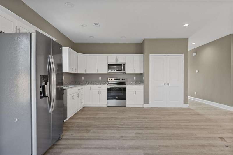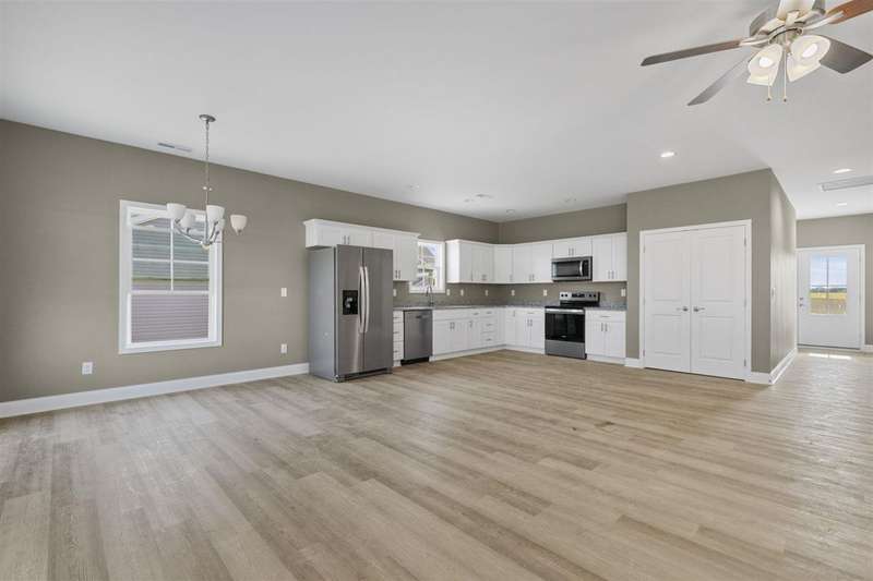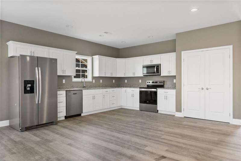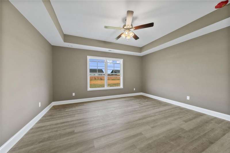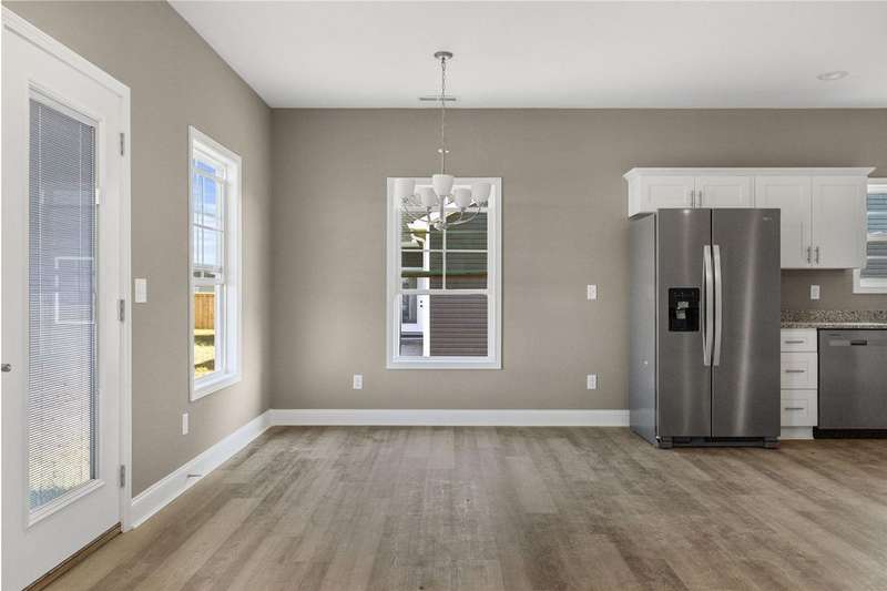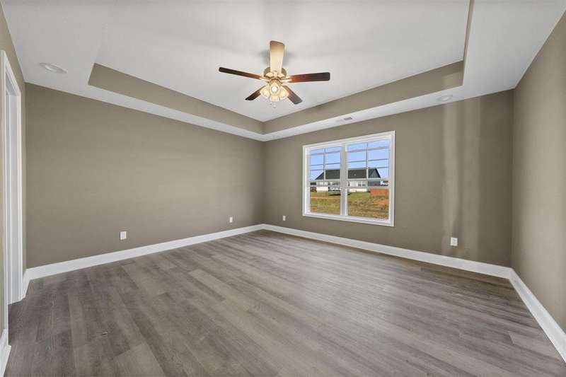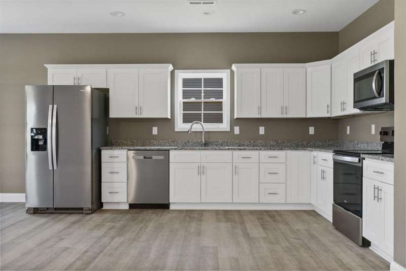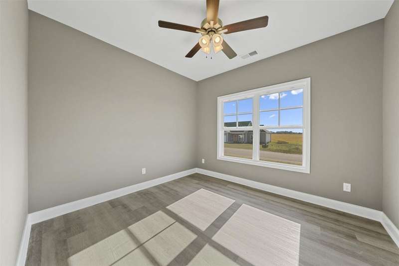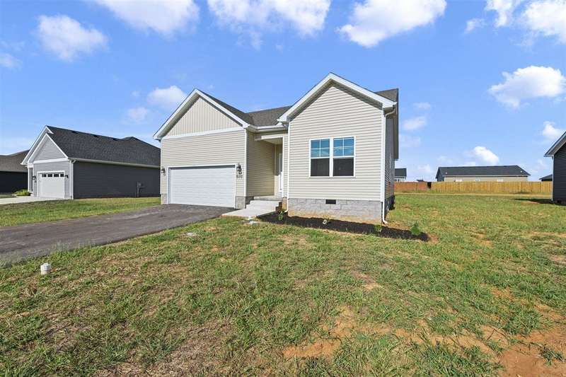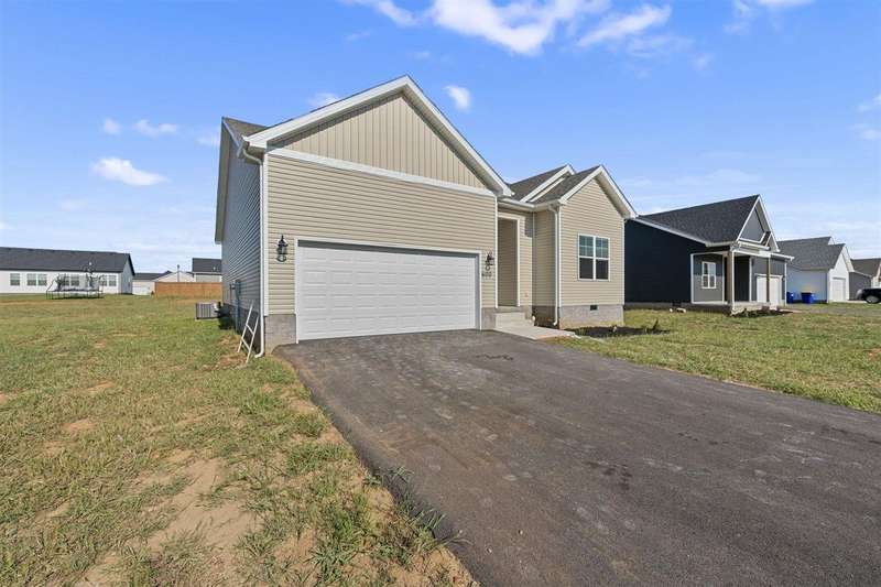 This new construction in Franklin, Kentucky, offers a modern and functional layout with several appealing features. The entire house is equipped with durable LVP flooring, including the bathrooms, ensuring easy maintenance and a cohesive look throughout. It has an electric HVAC system and a traditional tank water heater. The home boasts custom cabinetry and granite countertops, elevating the kitchen and bathrooms with a high-end feel. The master bath includes his-and-her sinks and a spacious walk-in closet, while the kitchen features a convenient double-door pantry. The master bedroom is enhanced with a tray ceiling and can lights, adding sophistication. A concrete back patio completes the outdoor space, offering a perfect spot for relaxation or entertaining.