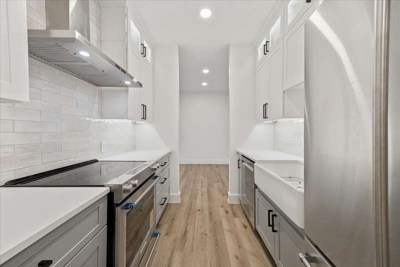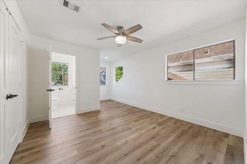 Newly renovated townhouse in the desirable Woodland Heights area, zoned to Travis Elementary, & just steps from Stude Park! About a half a mile from bars & restaurants on White Oak, & only minutes from major freeways, Downtown, shopping & much more! Luxury vinyl plank flooring, updated lighting & ceiling fans throughout. The kitchen features new cabinetry w/soft closing doors, under cabinet lighting, beautiful reeded glass top display cabinets w/lighting, quartz countertops, an apron sink, & KitchenAid appliances. Enjoy gathering time in the dining room or on the new back patio deck. There is also a half bath located conveniently near the garage entrance. Upstairs you will find a large storage closet & both bedrooms. The primary bedroom has a treehouse like feel, two closets, & a ensuite with double vanity & beautifully tiled shower. The secondary bedroom also features a full ensuite, as well as a separate sitting area & updated closet. Never flooded! HOA covers insurance!