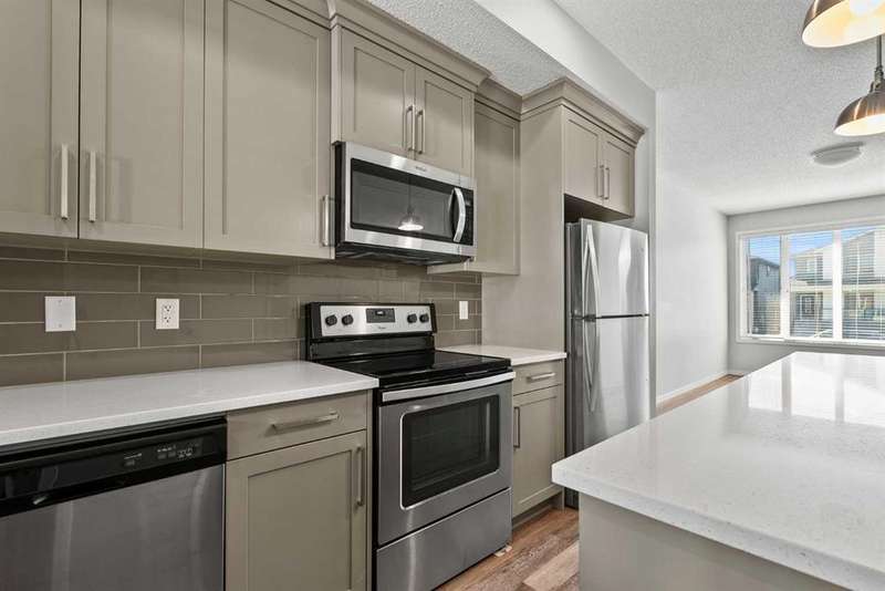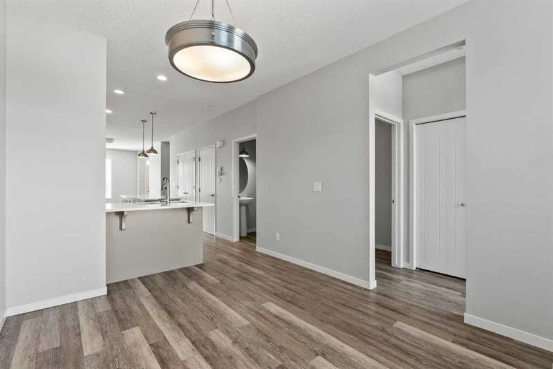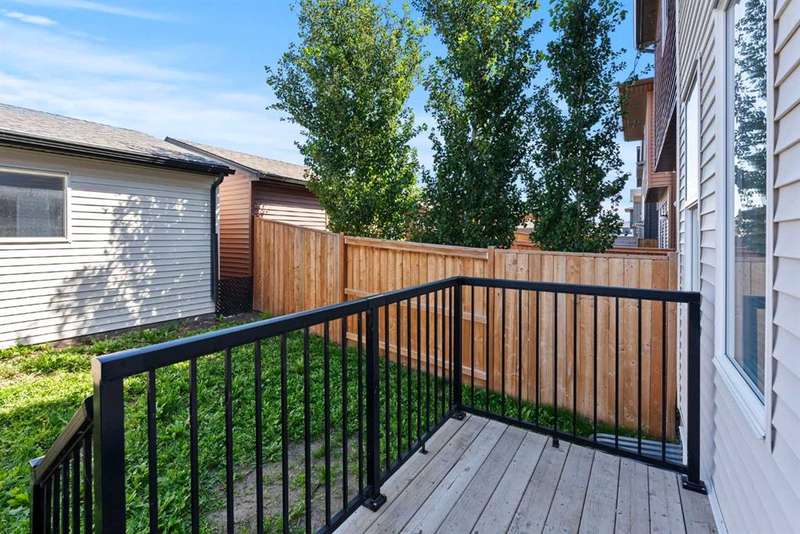 Welcome to this beautifully maintained half-duplex with a legal secondary suite, located in the vibrant community of Cornerstone. Thoughtfully designed for both comfort and functionality, the home offers a bright, open main floor with a spacious living area, dining space, and a large kitchen complete with a central island, quartz countertops, and stainless steel appliances—perfect for both entertaining and everyday living. A convenient main floor laundry area adds to the practicality of the layout, while access from the dining area leads to a back deck and private yard, creating a seamless indoor-outdoor flow. Upstairs, you’ll find three generously sized bedrooms, including a primary retreat with a walk-in closet and 4-piece ensuite, as well as a second 4-piece bathroom for the family. The legal basement suite is equally impressive, featuring a modern U-shaped kitchen, a comfortable living room, large bedroom, full bathroom, and separate laundry—making it a fantastic option for rental income or extended family living. A double detached garage provides ample parking and storage, while recent updates including new siding, eavestroughs, and a brand-new roof (all completed earlier this year) ensure peace of mind for the next owners. Situated in Cornerstone, you’ll enjoy quick and easy access to Stoney, Metis Trail and Deerfoot Trail, plus nearby schools, playgrounds, shopping, and a full range of amenities. This clean and move-in ready property is an excellent opportunity for homeowners and investors alike.