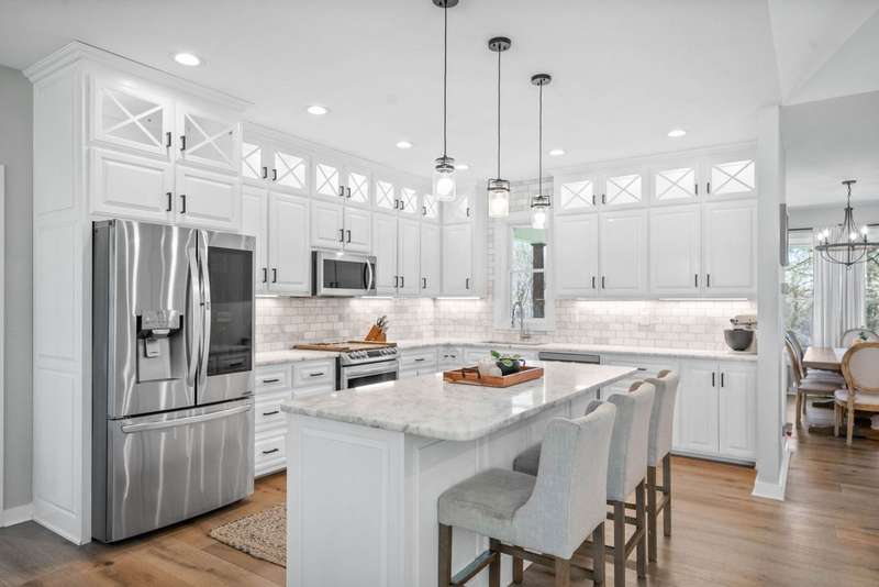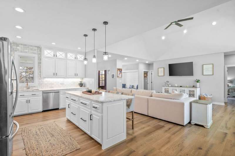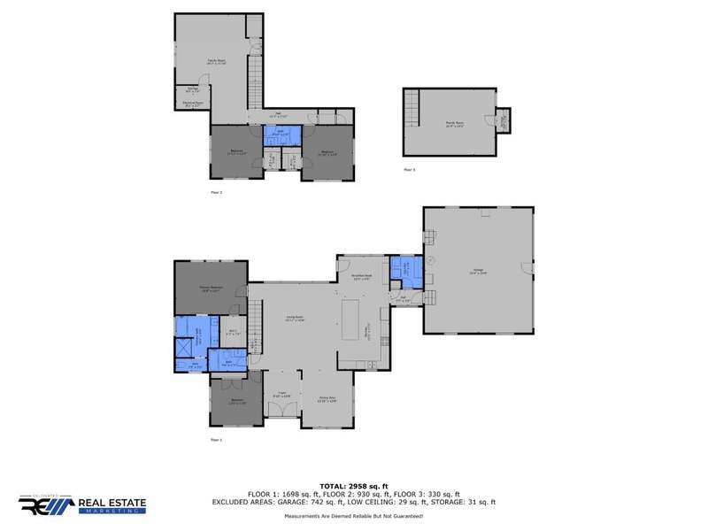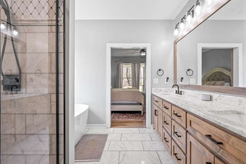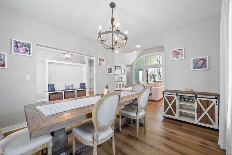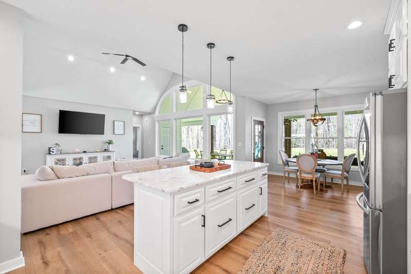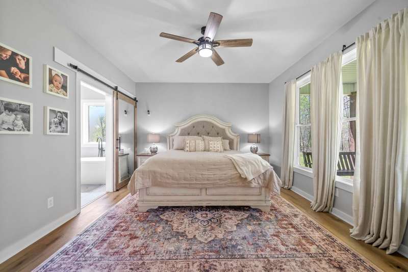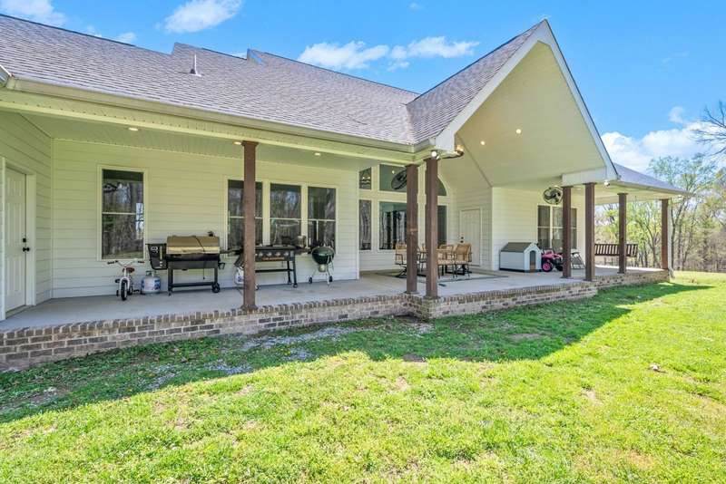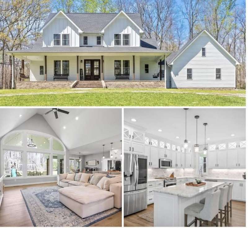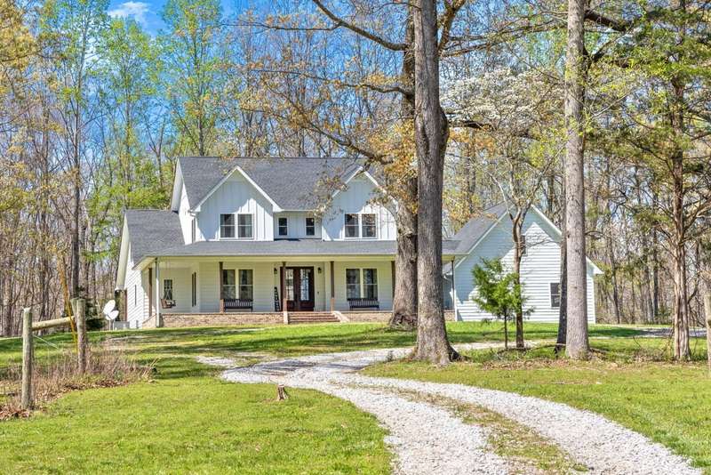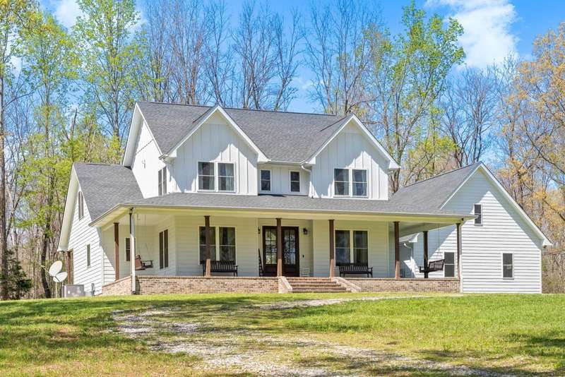 Welcome to your dream modern farmhouse, an exquisite three-story retreat nestled on a sprawling five-acre estate. This stunning home features cathedral ceilings and wide plank wood flooring throughout, creating a warm and inviting ambiance. The heart of the home is the expansive kitchen, boasting luxurious marble countertops and a cozy breakfast nook, perfect for morning gatherings. Adjacent is a formal dining room, ideal for entertaining guests. With four spacious bedrooms, including a master suite with elegant finishes, and three and a half beautifully designed baths, comfort is paramount.This home also includes two versatile bonus rooms, perfect for a home office or play area. Step outside to your large covered back porch, featuring impressive cathedral ceilings, an outdoor half bath, all perfect for relaxing or entertaining while enjoying the picturesque surroundings. An attached heated & cooled two-car garage adds convenience to this exceptional property. Immerse yourself in modern luxury and country charm in this remarkable farmhouse!
