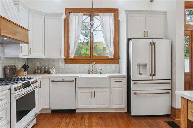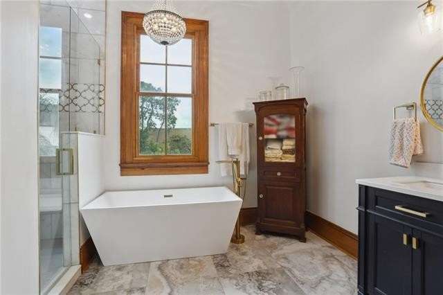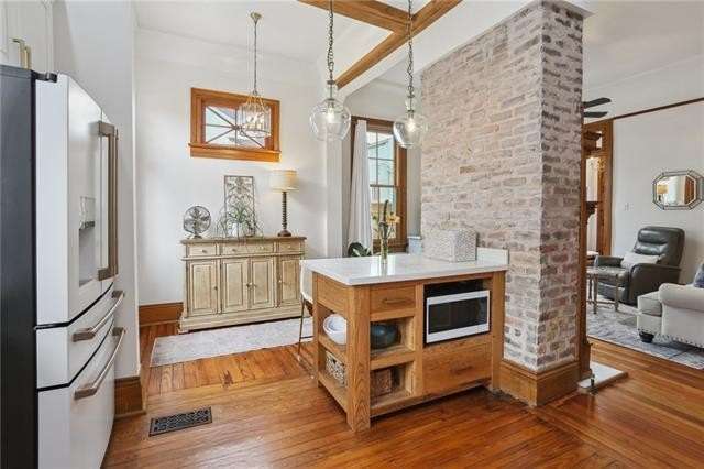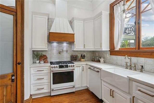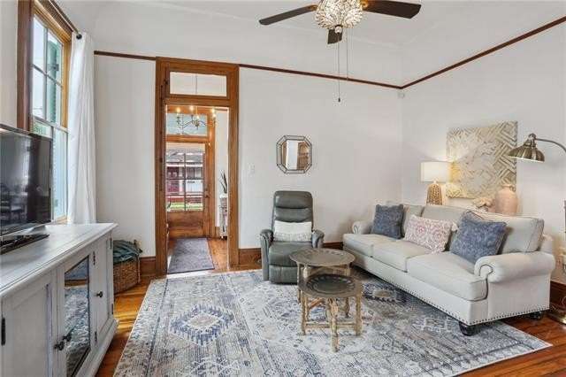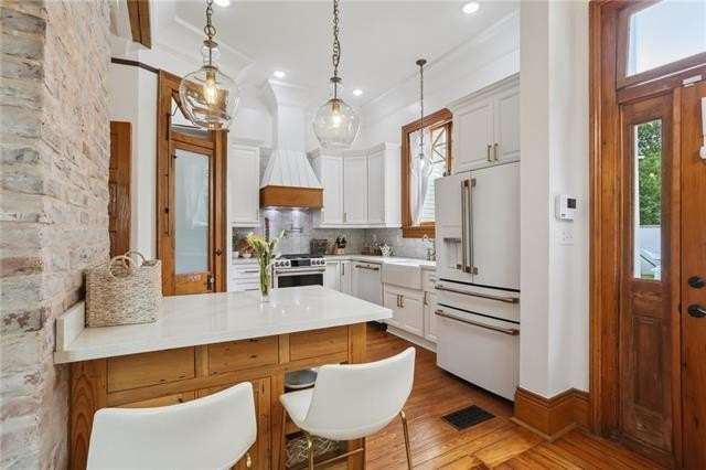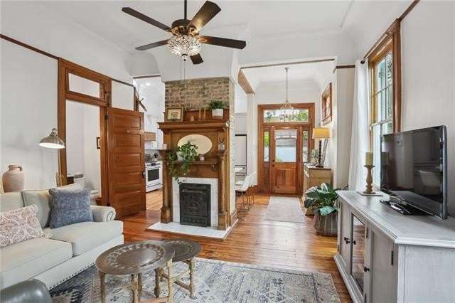 Beautifully Restored Home Steps from Esplanade Avenue Impeccably renovated New Orleans gem that seamlessly blends historic charm with modern comfort. Featuring GATED OFF-STREET PARKING, 2 bedrooms, 2.5 baths, vintage hardwood floors, Cypress millwork & custom doors, picture railings & operable transom windows. Every architectural detail has been thoughtfully and deliberately curated. The stunning kitchen includes a picture window overlooking a spacious backyard, farmhouse sink, Bespoke appliances with custom made vent hood & island seating. Upstairs, the serene primary suite is complemented by a rear sun porch & terrace for picturesque outdoor relaxation. Additional highlights include original fireplace mantels, tankless on demand HW heater, plaster cover crown moulding, alarm system, a FORTIFIED Spanish tile roof, insulated windows & extraordinary outdoor entertainment spaces. Just steps from iconic Esplanade Avenue—TURN-KEY!