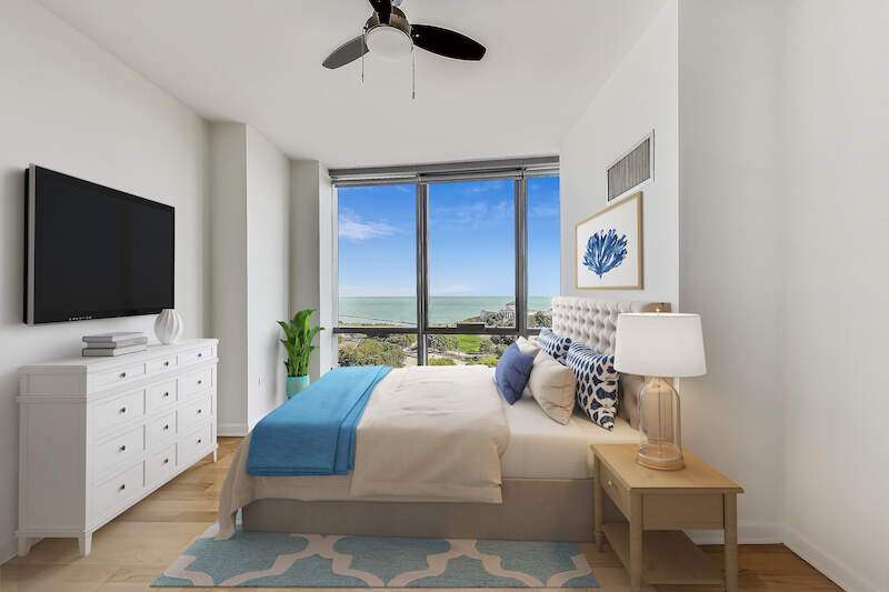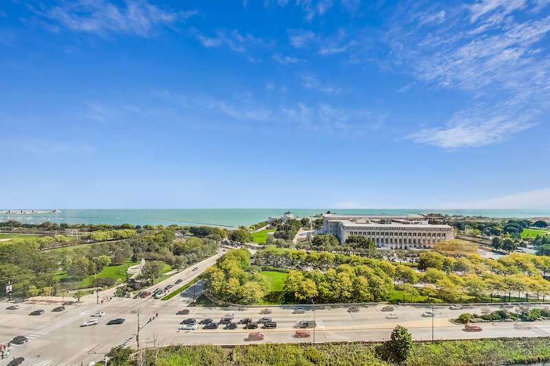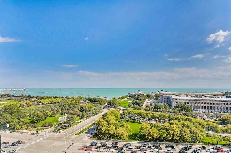 Spectacular views of Lake Michigan, Field Museum, and Soldier Field! This light filled, newly painted home has high ceilings with floor to ceiling windows, offering East, South and West exposures. Generous floor plan with 3 bedrooms, 3 baths, den, and balcony. Gourmet open kitchen with custom cabinets, spacious granite countertops, and stainless steel appliances including brand new refrigerator, dish washer, and microwave. In unit washer dryer is new as well. Primary bedroom has direct views of the museums & lake. Primary bath has double vanity, separate shower and tub. Second ensuite bedroom with a walk in closet provides ample space and privacy for family or guests. Storage locker on same floor. Tandem parking space #216 is included with list price! One Museum Park East is a full amenities building with indoor/out door pool, party rooms, outdoor grill deck, fitness center, dog run, car wash, dry cleaners, on site management, and 24 hour door staff. Walking distance to shops, grocery, parks, museums and lakefront!