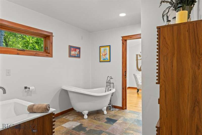 Exquisite Bozeman Haven - 9200/9202 River Rd, Montana! Step into luxury at 9200/9202 River Rd, Bozeman, with this fully renovated three-bedroom, 2.5 bathrooms, 2,369 square-foot home (with a 2011 addition that is separately metered, a separate entrance, ADA accessible and location of water pipes make it so a second kitchen could be added) on a sprawling three-quarter-acre lot. Just steps away from the tranquil Gallatin River and a premiere golf course with options for every type of golfer - beginner to pro. This serene home defines Montana living. Inside, a spa-like steam shower and soaking tub, a chef’s kitchen with quartz countertops and Thermador stainless steel appliances, and an open layout with heated floors. All thoughtfully designed for entertaining or cozy nights. The expansive outdoor space beckons for gatherings or quiet moments under Montana’s big sky. A two-car heated garage ensures year-round comfort. Ideal for families, retirees, or vacation home buyers. Worth taking a look! This residence has a portion of the home specifically designed (and separately metered) for use as a home office, or individual(s) with in-home health care needs. (Includes ADA accessibility with a ramp to the entry door and wide halls & doors.) The main home was constructed in 1981 with the additional office/health care area constructed in 2011, including remodeling to existing home. The 2011 addition was completed by the prior owner who was permitted a variance to build an in-home medical office with ADA accessibility. This portion of the home has a separate address.