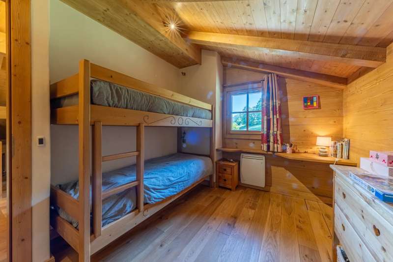 Located in the sought-after Rochebrune area, at the end of a quiet cul-de-sac and just a few minutes from the centre of Megève and the ski slopes, this chalet, nestled in a peaceful environment, offers privacy, comfort and proximity to all amenities. Spread over three levels, it offers a functional layout and generous living spaces. On the ground floor, you will find a spacious garage, a storage room, a laundry room, and a second storage area. This level also includes a first double bedroom with a shower room and built-in storage. The first floor opens onto a large, bright living area, featuring a fully equipped kitchen with a bar area, a dining space, and a cosy living room with high ceilings and a fireplace. This space opens directly onto an L-shaped balcony, a terrace, and a south- and west-facing garden sheltered from view. This level also includes a second double bedroom with access to the balcony, as well as a shower room. On the top floor, two additional bedrooms complete the night area: a double bedroom with balcony and storage, and a children's bedroom also equipped with storage. A bathroom and a TV corner complete the layout on this level. For further information or to arrange a viewing, please don’t hesitate to contact us.
