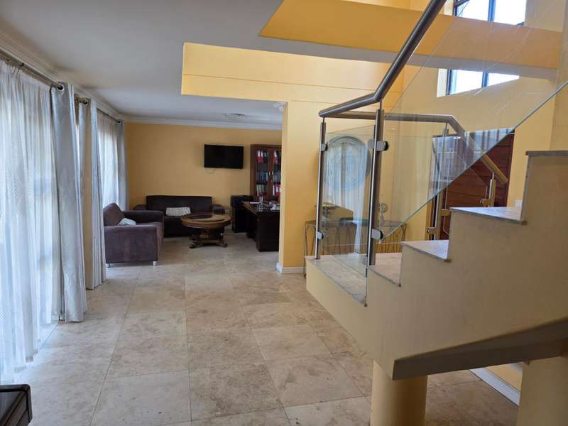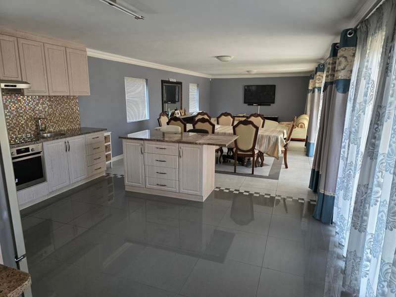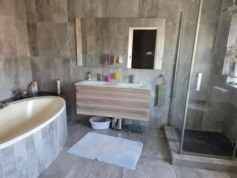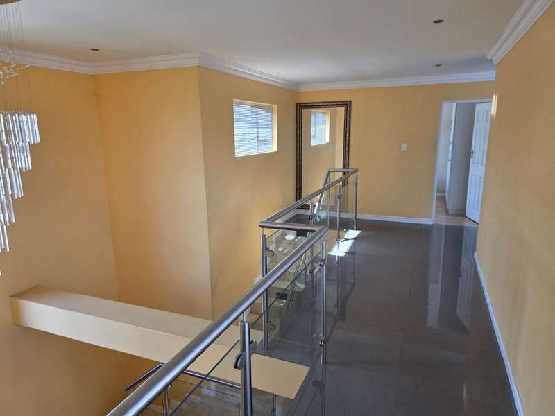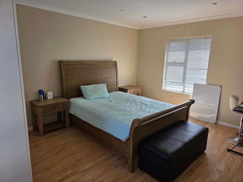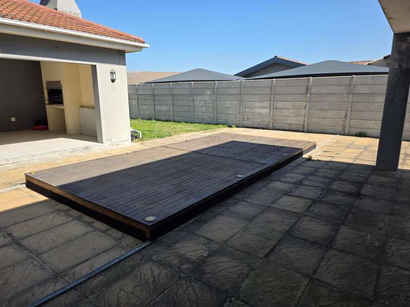 Step into this beautiful 4-bedroom double storey home that offers space, style, and superb family living. Downstairs, you’re welcomed by an open-plan lounge that flows effortlessly into a modern, fully fitted kitchen – complete with an oven, hob, and extractor fan. Perfect for entertaining, sliding doors open from the living area to a sparkling swimming pool, creating a seamless indoor-outdoor lifestyle. A separate scullery is tucked away with plumbing for both a front-loader washing machine and a dishwasher, keeping the main kitchen neat and functional. There’s also a dedicated study – ideal for working from home or as a quiet reading nook. The double automated garage provides direct access into the home and includes built-in cupboards for extra storage – a practical touch for any family. Upstairs, you’ll find four well-appointed bedrooms. The main bedroom is generously sized, featuring built-in cupboards and a modern en-suite bathroom. A full family bathroom serves the remaining bedrooms, offering both a bath and shower for convenience. Outside, the undercover braai area overlooks the swimming pool – the perfect space for weekend get-togethers or evening relaxation. This home ticks all the boxes for comfort, functionality, and entertainment. Don’t miss your chance to own this gem – contact us today to arrange a viewing!