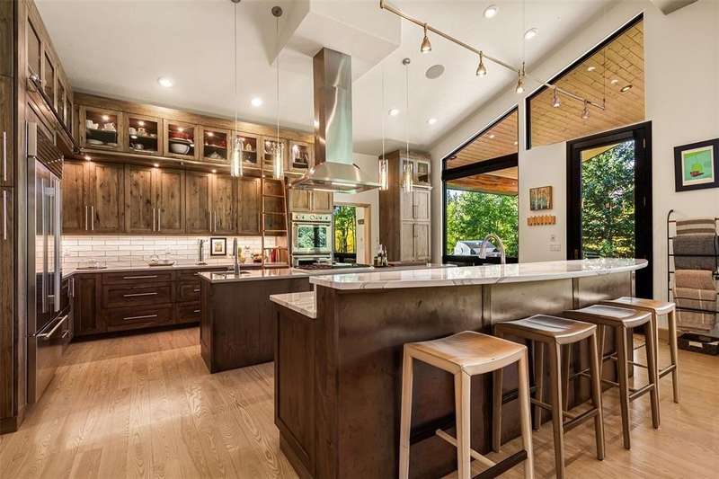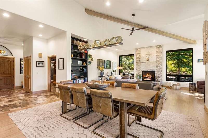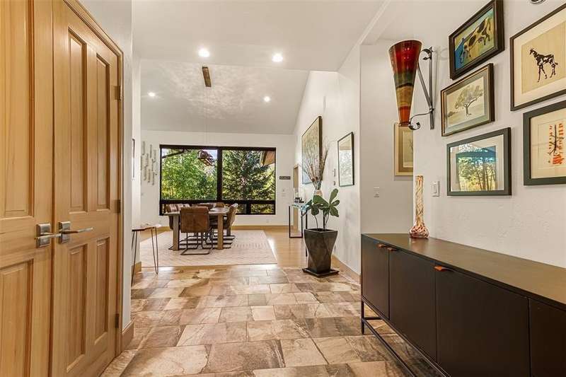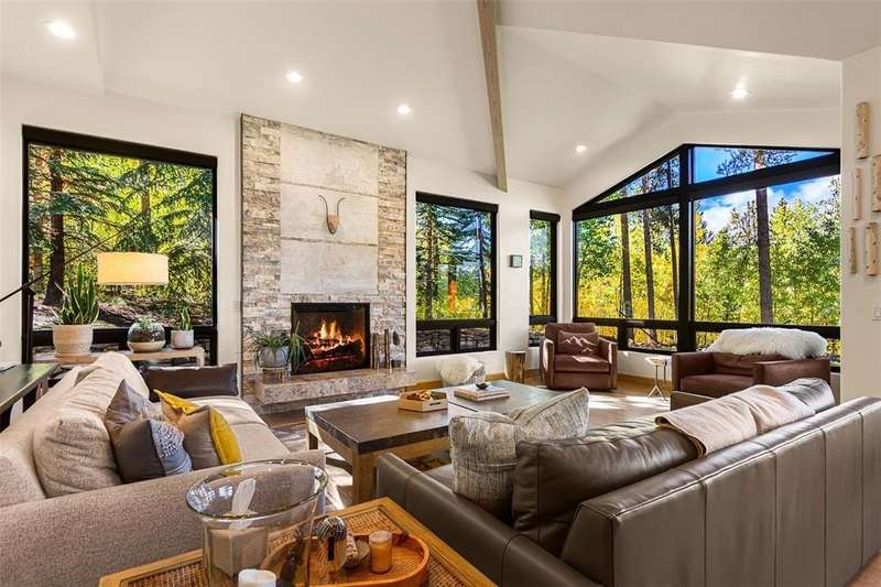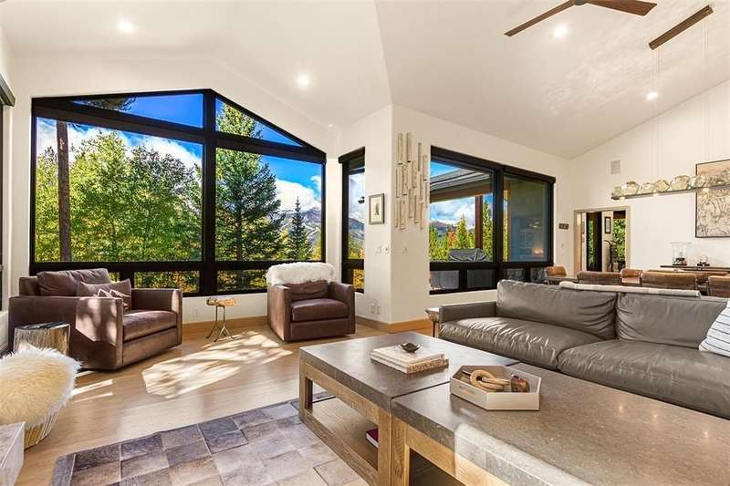 If majestic views, privacy and walking distance to town is what you are looking for then this is the home for you! This beautifully remodeled 4 bedroom, 5 bath, 4278 sqft home with a ranch style floor plan and sweeping views of the ski area on a private 2 plus acre lot is a one of a kind in Breckenridge. The large west facing covered deck with heated bench seating, a glorious firepit and an outdoor kitchen, invites you to sit and enjoy the sunsets over the Ten Mile range. A full wall of west facing windows warms the entire home. You enter the house to the marvelous living/dining room that is large enough to hold the entire family for all the holidays. The remodeled kitchen with Thermador and Sub-Zero appliances, Homestead cabinets, a coffee bar and a cozy family room make for an excellent gathering space. The fantastic primary bedroom on the main level has sweeping views of the mountains and a wonderful on suite bathroom. The three quest bedrooms are large and welcoming. The lower TV room is perfect for fall football and all-night movies. It walks out to a private hot tub in the beautifully appointed grass yard with flower beds and an easement to the lower road for walking to town. The list of upgrades is extensive, including all new windows, epoxy floor in the garage with two ev chargers, roof, gutters, three gas fireplaces, flooring, lighting and blinds.