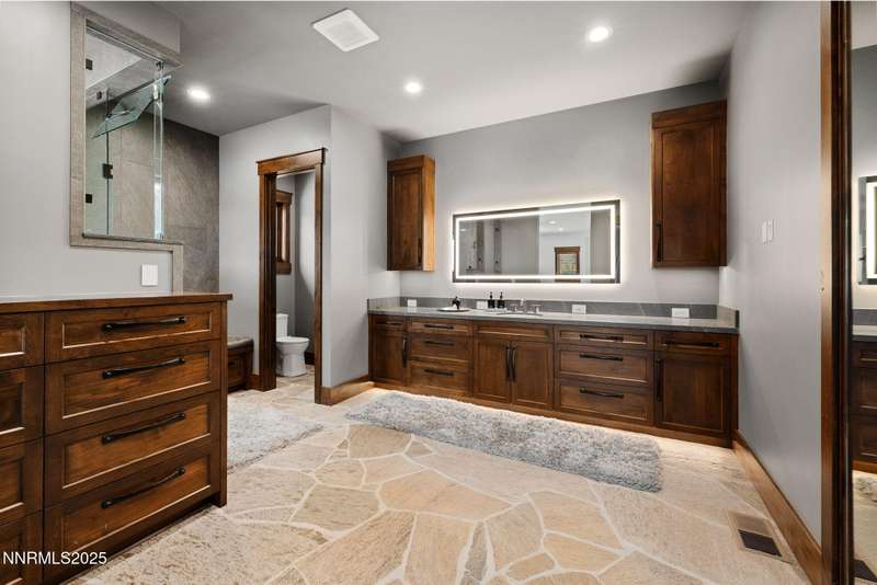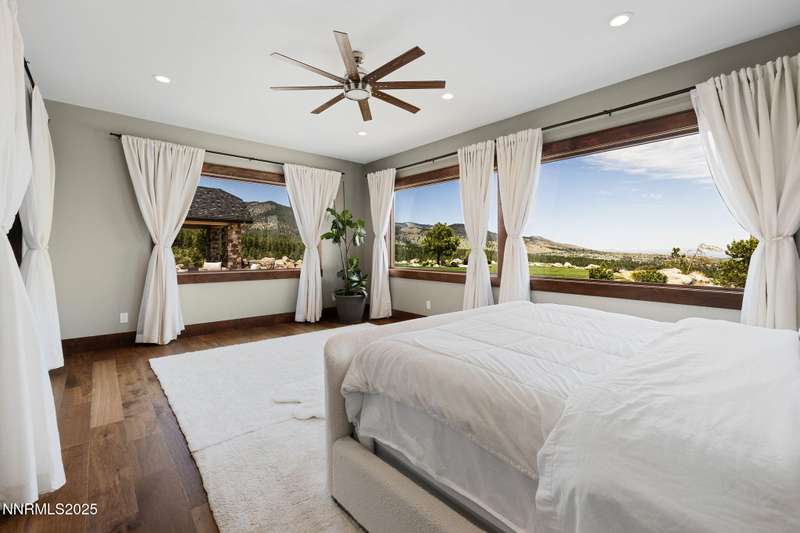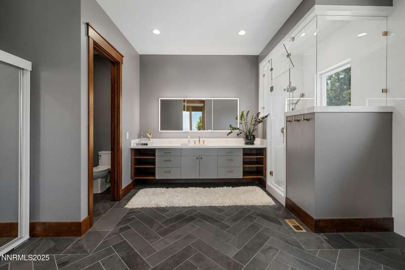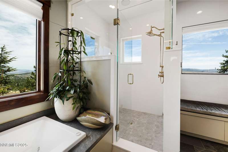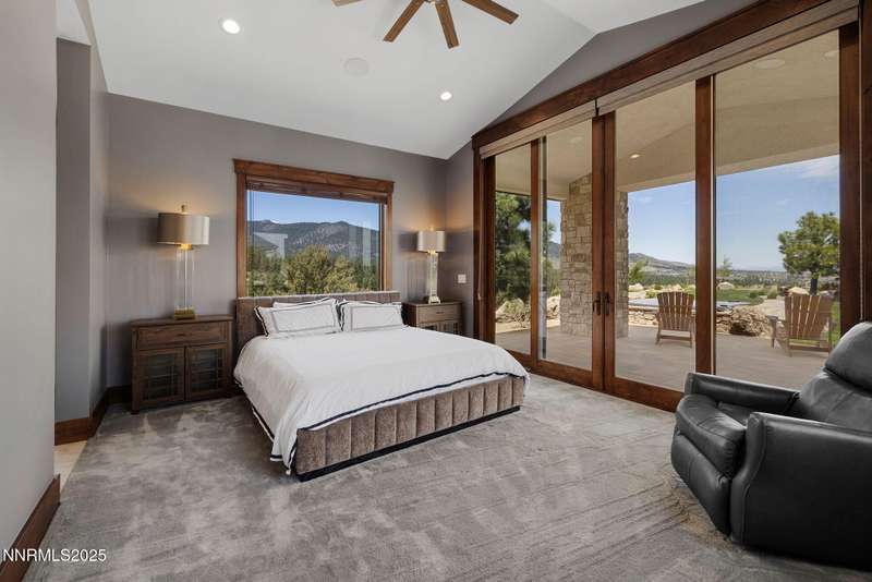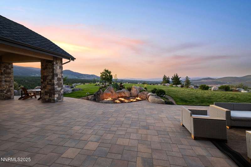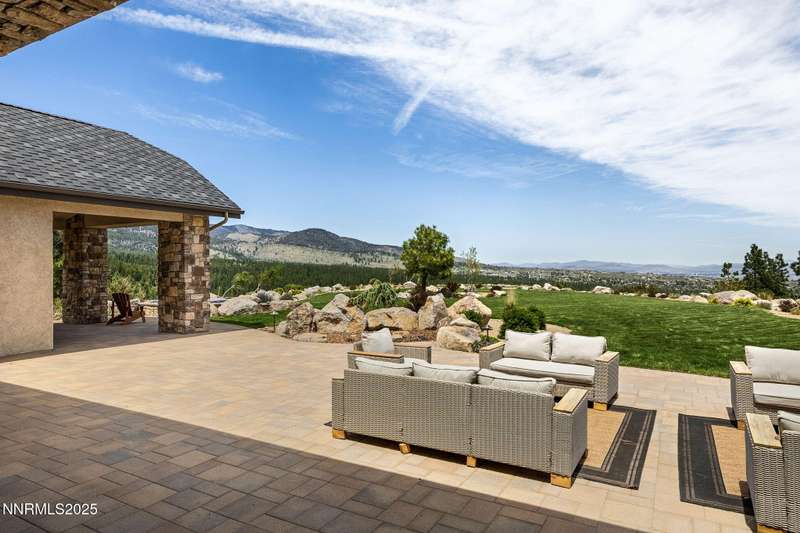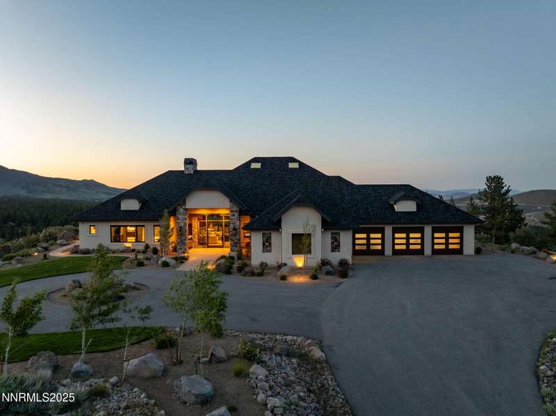 This is what it looks like at the top. Own the CROWN of Reno at 29 Bennington Court—a powerful property, built for bold living on one of the region's largest mountain top lots featuring 360-degree views of Mt. Rose, the city, and the forest. This custom, 4,831 sq ft single-level estate combines privacy, exclusivity, and luxury with three spacious suites, heated quartzite counters on the Kitchen Island, High end Thermador appliances, and Waterstone fixtures. Outside, the terrace features a massive yard, spa, gas firepit, and wood-burning hearth. Rising from St. James's Village, 29 Bennington Court commands the most powerful vantage in Reno. Spanning 6.33 acres across two contiguous parcels, this estate offers uninterrupted 360-degree views of Mt. Rose, downtown Reno, and the Sierra forest canopy. This single-level estate defines the top, geographically, architecturally, and experientially. This is not simply a home with views. It is the highest-positioned property in one of the region's most exclusive gated community—a singular alignment of land, layout, and presence. No other estate combines this scale, privacy, and presence. It does not compete. It leads. The structure is grounded in proportion and permanence. Wide hallways, soaring soffit ceilings, and generous transitions create a deliberate rhythm throughout the home. Material selections emphasize integrity over ornamentation: hardwood in primary living areas, plush carpet in private quarters, and marble thresholds where spaces shift. Skylights are positioned to trace the sun's arc, filling the interiors with natural light throughout the day. Each of the three en-suite bedrooms serves as a fully self-contained retreat—private, quiet, and complete. The primary suite features a steam shower, a deep soaking tub, radiant in-floor heating, and a meticulously outfitted dressing room with mirrored cabinetry, tailored lighting, and integrated storage. A discreet pass-through leads to the oversized laundry room, outfitted with dual washers and dryers, concealed hampers, and extensive cabinetry—designed for lasting function. Designed to balance performance and intention, the kitchen centers the home as a working space and a gathering area. A complete Thermador suite includes a six-burner range with griddle, dual convection ovens, commercial-grade ventilation, and integrated refrigeration. Heated quartzite countertops provide tactile comfort and thermal consistency. Cabinetry is full-depth and soft-close, with Waterstone fixtures chosen for their weight, reliability, and enduring finish. The walk-in pantry includes open shelving, a pebble ice maker, and grocery access to a three-car garage. Exterior living areas are designed for use and longevity. The terrace unfolds to a large patio with outdoor electric heating and a wood burning hearth, a recessed Bullfrog spa, a gas fire pit, and a massive yard. Hardscaping materials, including poured concrete and boulders sourced directly from the site, frame the home within its landscape rather than separate it. The office is not a token room; it is a space for strategy, output, and reflection. Equipped with built-in storage, a seamless flow into the great room, and forest-facing windows, it is designed to support sustained thought and forward movement. Whether the work is creative, operational, or directive, this is a room that holds its purpose. 33 Bennington Court, an adjacent undeveloped parcel, is included in the sale. Build a second structure, hold the land in reserve, or preserve the buffer indefinitely. This second lot represents opportunity and leverage in a gated setting where acquiring additional acreage is nearly impossible. Opportunities like this are never replicated. They're seized. No other property in Reno offers this elevation, this acreage, or this architectural clarity. 29 Bennington Court holds its position without effort—dominant in placement, precise in design, and unmatched in scope. It does not compete. It stands alone.