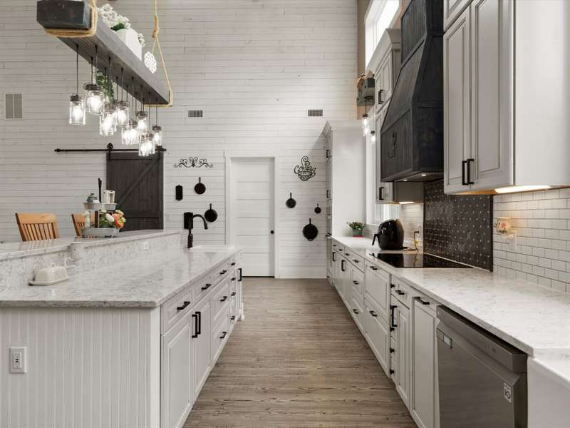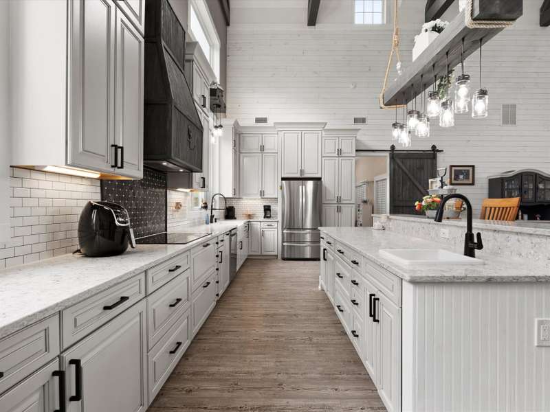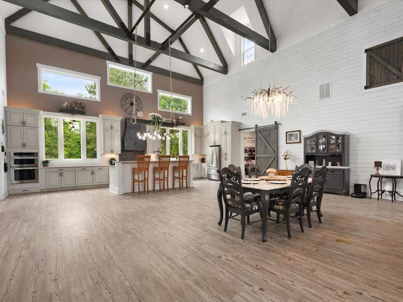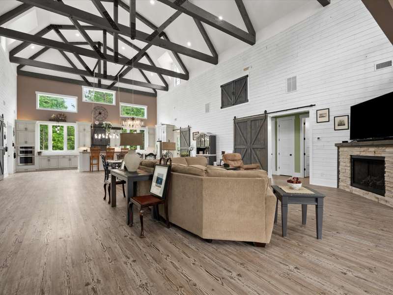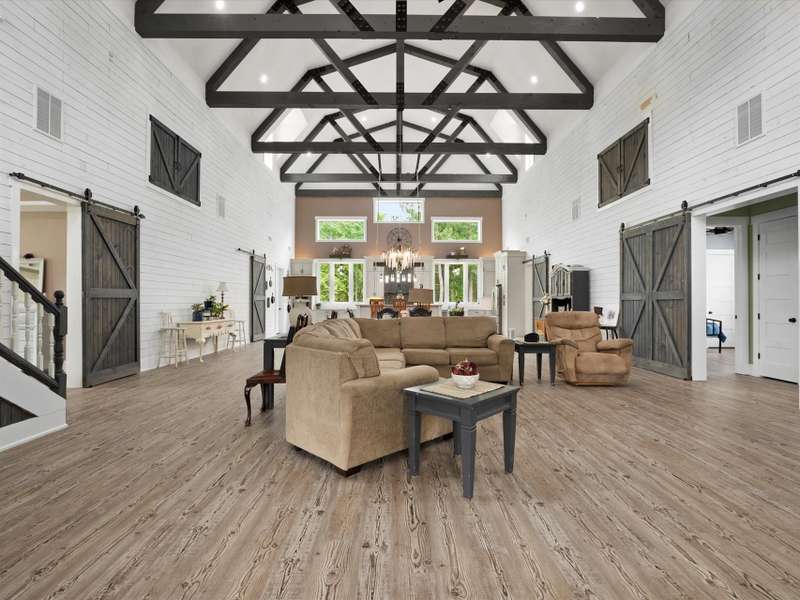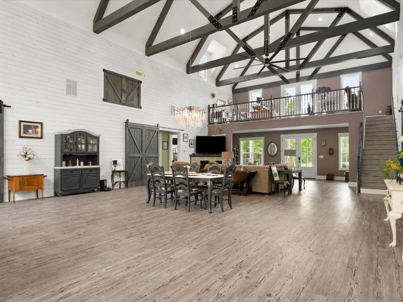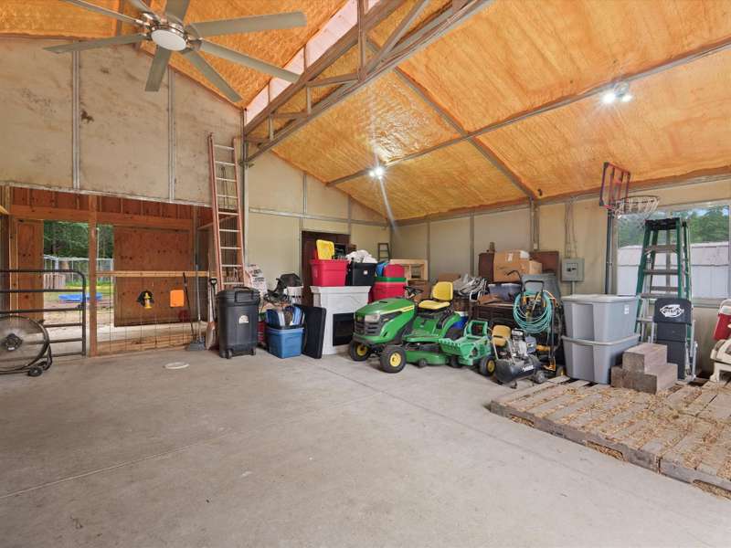 Charming Farmhouse with Modern Amenities and Equine Facilities. Discover the perfect blend of rustic charm and modern convenience in this spacious 4-bedroom, 2-bath farmhouse. Built with quality in mind, this home features 2x6 construction throughout and full interior insulation for year-round comfort and energy efficiency. Soaring ceilings from 10 to 28 feet create an open and airy atmosphere ideal for comfortable living. The kitchen is a culinary dream with a central island, farm sink, and under-cabinet lighting, providing style and functionality. A dedicated laundry room includes a built-in sink for added convenience.Outdoor amenities include two fenced pastures and a well-appointed barn with stables, a tack room, and ceiling fans?perfect for equestrian use. Enjoy outdoor living on the upper-level balcony finished with durable Trex decking.This thoughtfully designed property offers space, functionality, and high-end features in a peaceful rural setting.