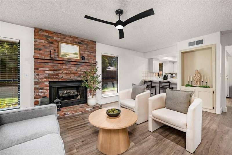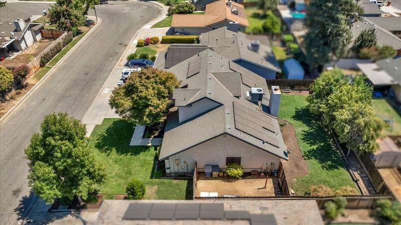 Charming 3-Bedroom Home with Solar in Clovis Unified School District!Welcome to this well-maintained 3-bedroom, 2-bath home nestled in an established, tree-lined neighborhood within the highly sought-after Clovis Unified School District. Upon entering, you will notice the newly installed wood plank porcelain tile that guides you through the entry, formal living space, dining/kitchen area and den. A well thought-out design perfect for everyday living or for those who enjoy entertaining! This inviting property features a private upstairs main suite, offering a peaceful retreat separate from the main living areas. Solar helps keep energy costs down, while the mature landscaping and fenced backyard add to the home's charm and usability. A perfect blend of comfort, convenience, and location - don't miss this opportunity!