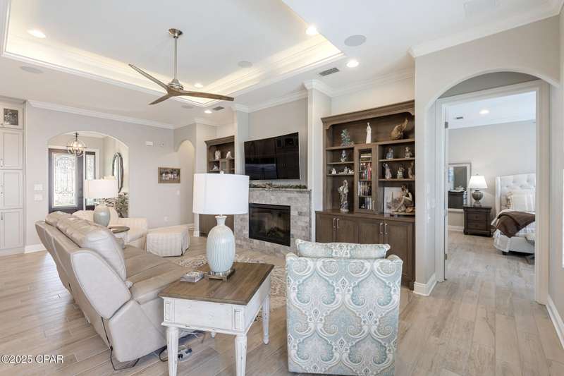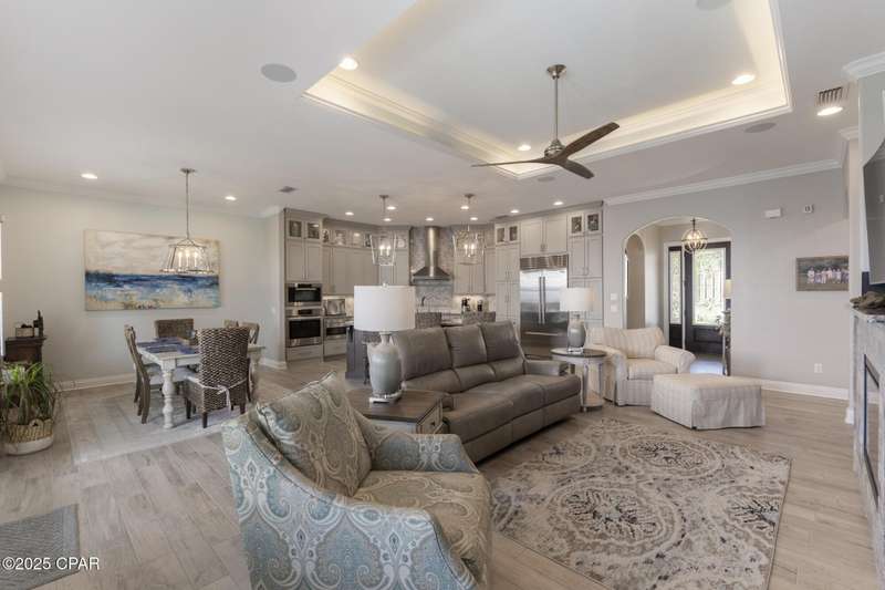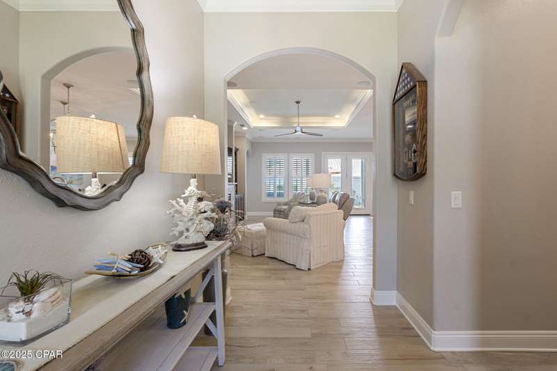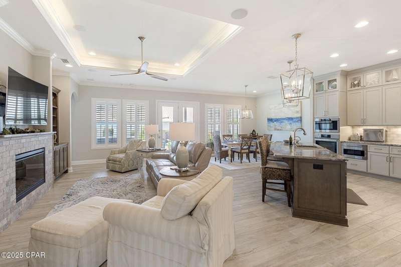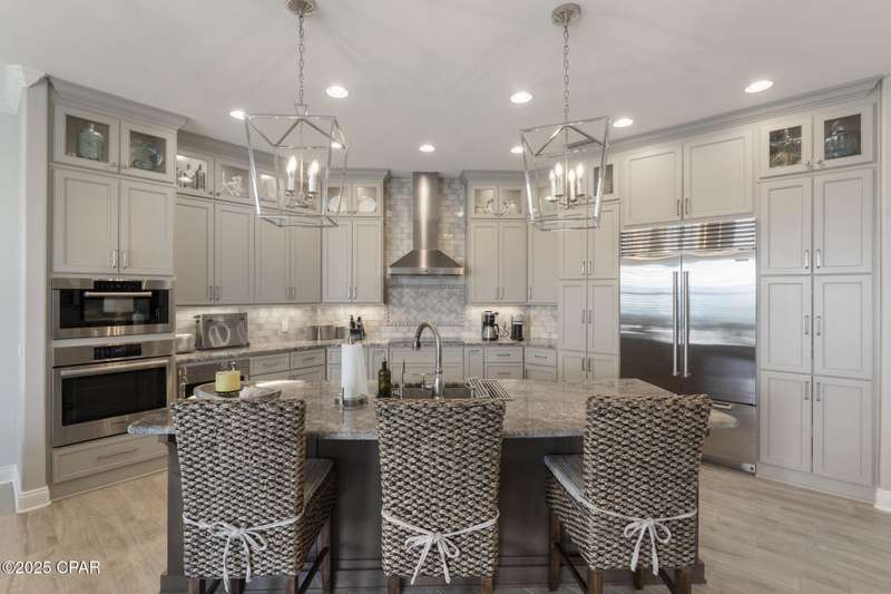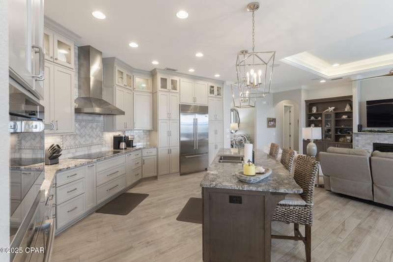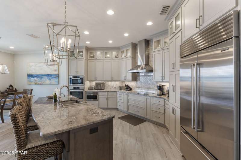 ~OPEN HOUSE FRIDAY(8/29/25) from 11:00am - 3:00pm and MONDAY(9/1/25) 9:00am- 12:00pm. Exquisite Custom Home in Laguna Beach - West End of Panama City BeachBuilt in 2017, this stunning one-story custom-built home in the highly desirable Laguna Beach community has been a carefully maintained primary residence. With 3 bedrooms, 2.5 bathrooms, and 2,247 sq. ft. of thoughtfully designed living space, this property offers the perfect blend of luxury, craftsmanship, and coastal living. Enjoy the freedom of no HOA restrictions and the flexibility that short-term rentals are allowed.Step through the front door to an open-concept floor plan designed to impress. The gourmet kitchen is a chef's dream, featuring a GE induction cooktop, built-in Sub-Zero refrigerator, microwave drawer, Bosch dishwasher and wall oven, and Wolf steamer oven. Floor-to-ceiling cabinetry, granite countertops, and an elegant backsplash create a seamless combination of function and sophistication.The living room is warm and inviting, highlighted by a tray ceiling, built-in cabinetry, and an electric fireplace--perfect for gatherings or quiet evenings. Down the hall, two generously sized guest bedrooms share a beautifully appointed bathroom with a double quartz vanity and shower. Every closet in the home features floor-to-ceiling built-in shelving for ultimate organization.The master suite is a true sanctuary, overlooking the private backyard, pool, and spa. The master bathroom includes his-and-hers vanity, tiled walk in shower with rain shower head , MTI whirlpool steam airbath tub and two expansive walk-in closets.Step outside to your private resort-style backyard with a Gunite saltwater swimming pool, hot tub, sealed paver pool deck, covered back porch, and professionally landscaped double lot. The sealed paver driveway and walkways add elegance and curb appeal.Every detail of this home reflects quality and luxury: 10-foot ceilings, wood-look plank tile floors throughout, 2x6 construction, roof tie-down, impact windows and doors, a security system controllable via Wi-Fi, foam spray insulation in walls and roof, crown molding, and 8-foot solid doors are some of the features, with many more qualities throughout this exceptional property. The 3-car garage with polyurethane floors completes this exceptional property. Public Beach Access #84 is less than a half-mile away--just a quick golf cart ride or an eight-minute stroll to the sparkling Gulf waters.This Laguna Beach treasure offers coastal elegance, modern luxury, and meticulous craftsmanship in every corner. Your dream home in Panama City Beach awaits.