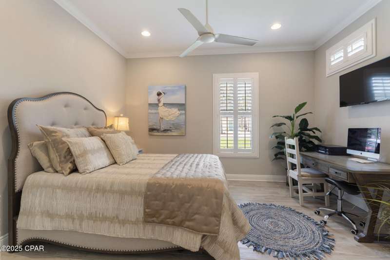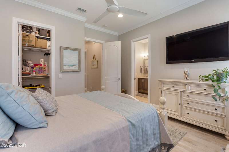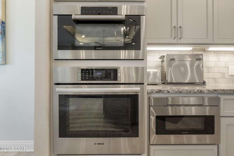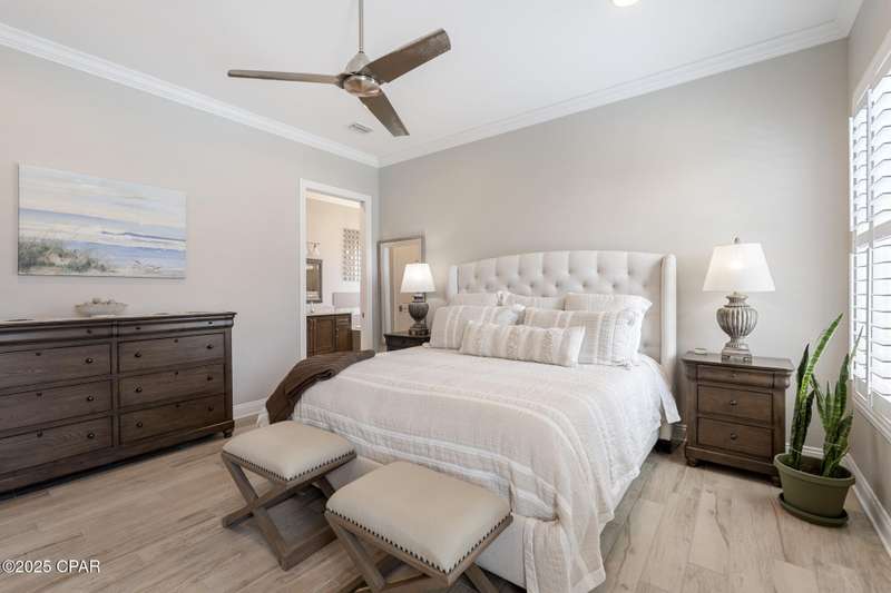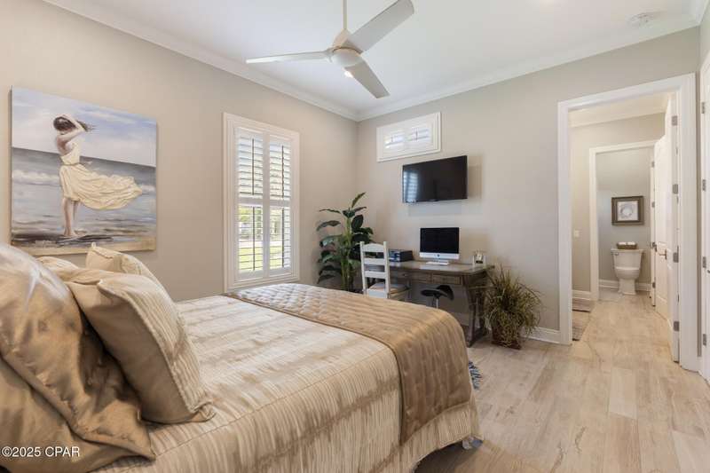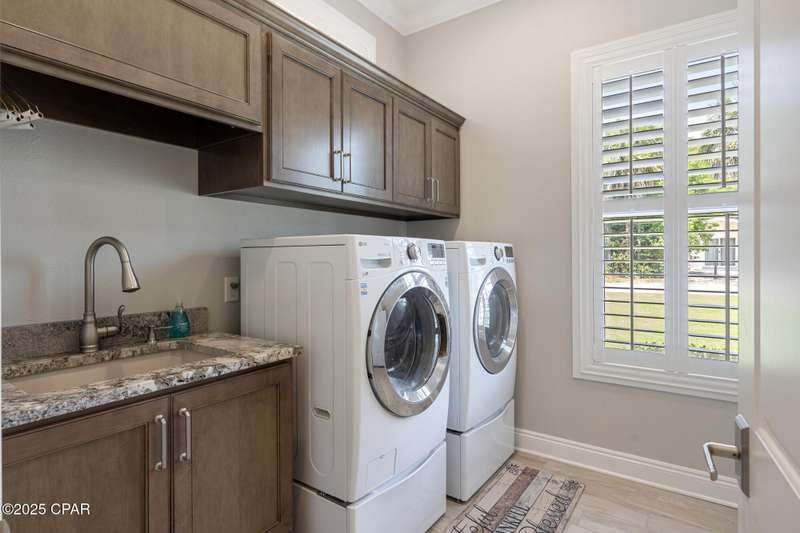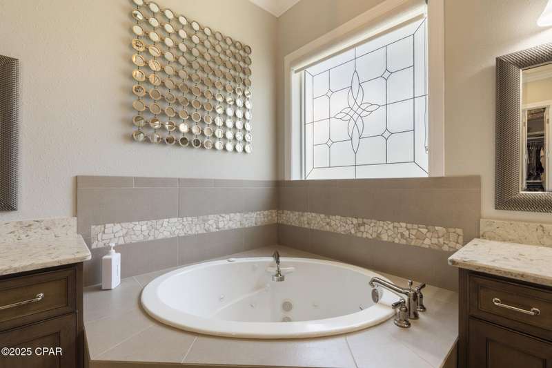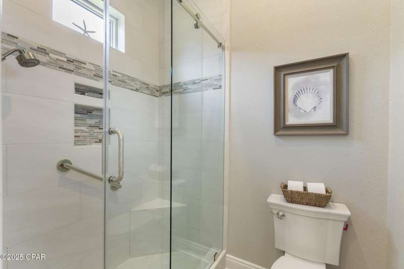 ~OPEN HOUSE FRIDAY(8/29/25) from 11:00am - 3:00pm and MONDAY(9/1/25) 9:00am- 12:00pm. Exquisite Custom Home in Laguna Beach - West End of Panama City BeachBuilt in 2017, this stunning one-story custom-built home in the highly desirable Laguna Beach community has been a carefully maintained primary residence. With 3 bedrooms, 2.5 bathrooms, and 2,247 sq. ft. of thoughtfully designed living space, this property offers the perfect blend of luxury, craftsmanship, and coastal living. Enjoy the freedom of no HOA restrictions and the flexibility that short-term rentals are allowed.Step through the front door to an open-concept floor plan designed to impress. The gourmet kitchen is a chef's dream, featuring a GE induction cooktop, built-in Sub-Zero refrigerator, microwave drawer, Bosch dishwasher and wall oven, and Wolf steamer oven. Floor-to-ceiling cabinetry, granite countertops, and an elegant backsplash create a seamless combination of function and sophistication.The living room is warm and inviting, highlighted by a tray ceiling, built-in cabinetry, and an electric fireplace--perfect for gatherings or quiet evenings. Down the hall, two generously sized guest bedrooms share a beautifully appointed bathroom with a double quartz vanity and shower. Every closet in the home features floor-to-ceiling built-in shelving for ultimate organization.The master suite is a true sanctuary, overlooking the private backyard, pool, and spa. The master bathroom includes his-and-hers vanity, tiled walk in shower with rain shower head , MTI whirlpool steam airbath tub and two expansive walk-in closets.Step outside to your private resort-style backyard with a Gunite saltwater swimming pool, hot tub, sealed paver pool deck, covered back porch, and professionally landscaped double lot. The sealed paver driveway and walkways add elegance and curb appeal.Every detail of this home reflects quality and luxury: 10-foot ceilings, wood-look plank tile floors throughout, 2x6 construction, roof tie-down, impact windows and doors, a security system controllable via Wi-Fi, foam spray insulation in walls and roof, crown molding, and 8-foot solid doors are some of the features, with many more qualities throughout this exceptional property. The 3-car garage with polyurethane floors completes this exceptional property. Public Beach Access #84 is less than a half-mile away--just a quick golf cart ride or an eight-minute stroll to the sparkling Gulf waters.This Laguna Beach treasure offers coastal elegance, modern luxury, and meticulous craftsmanship in every corner. Your dream home in Panama City Beach awaits.