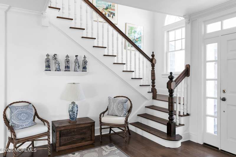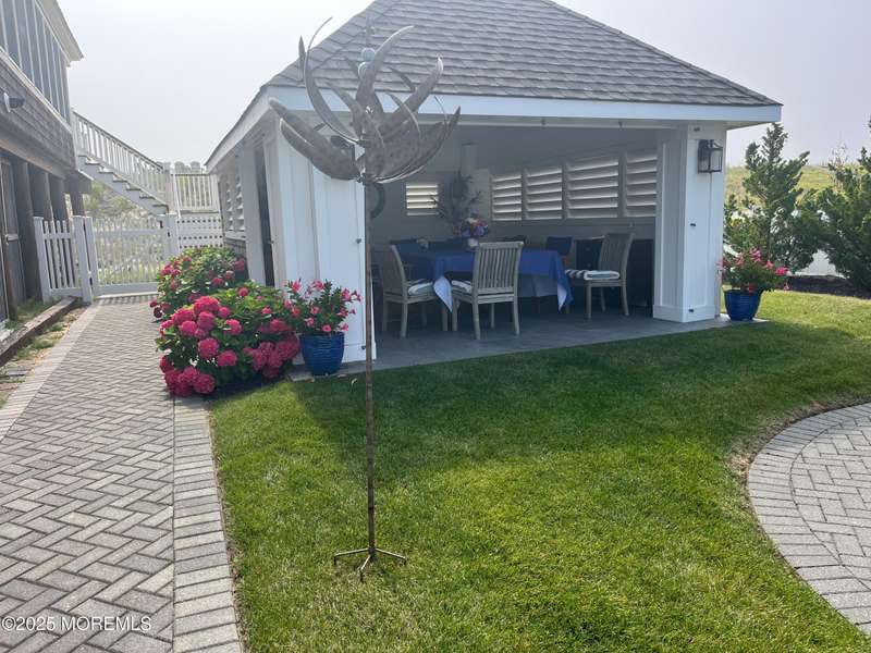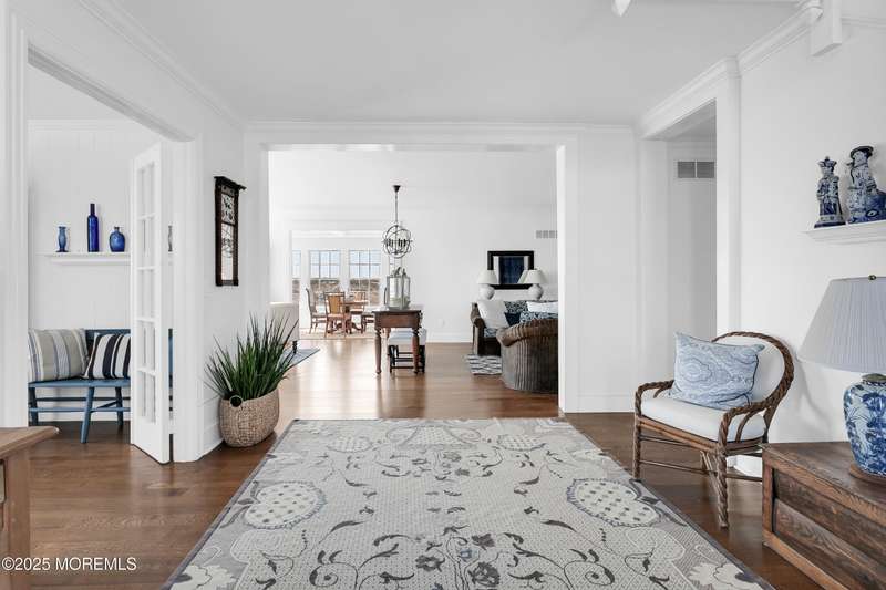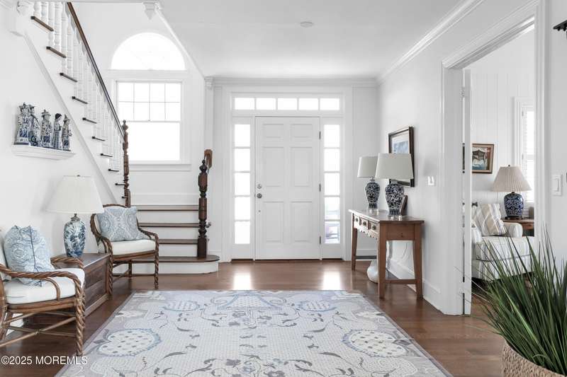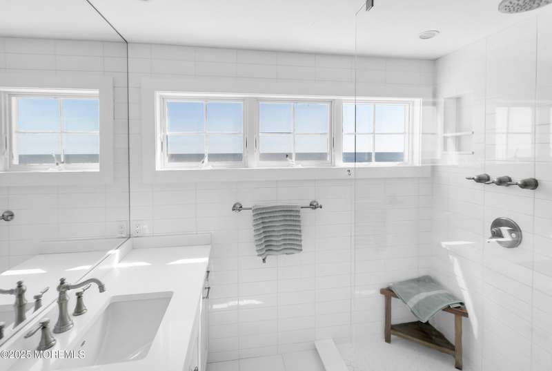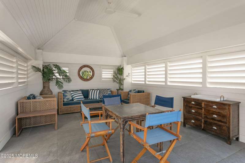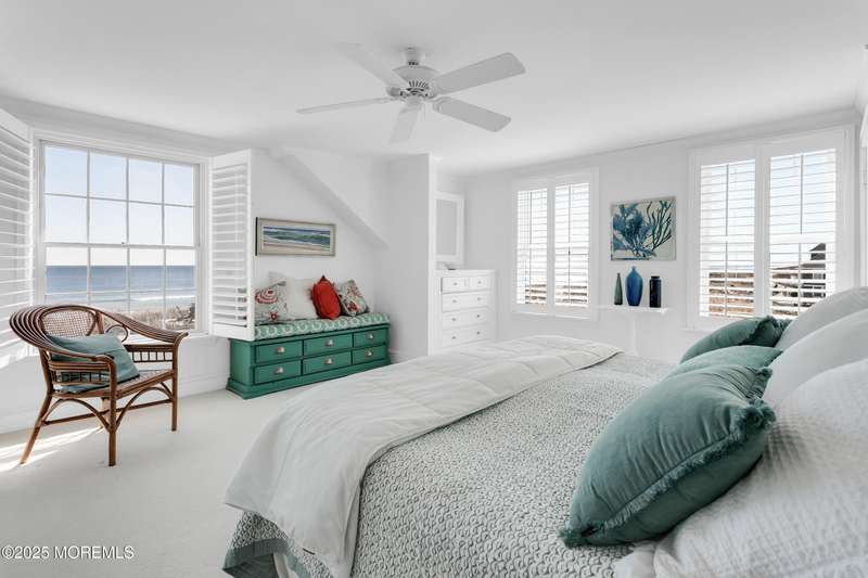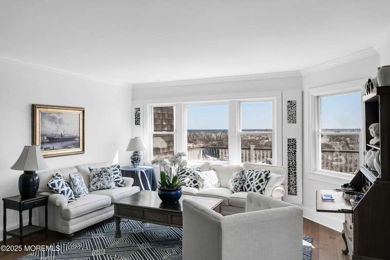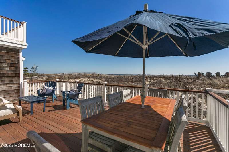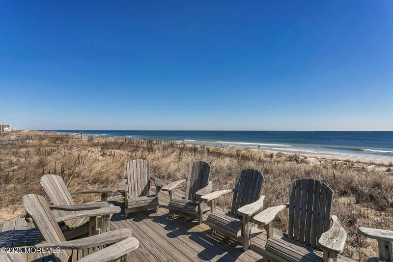 Oceanfront: Nestled in the heart of Mantoloking, this classic oceanfront home offers both privacy and convenience, a short walk from the center of town. There are spectacular panoramic ocean views from multiple levels, including the oceanfront decks, as well as the seclusion and comfort of the rear deck, patio, pool and cabana. Inside, the spacious living room offers remarkable ocean views, and the enclosed side porch opens onto a sheltered deck, with the dune deck overlooking the ocean. On the second and third floors, many bedrooms, including the primary suite, offer sweeping ocean views as well.