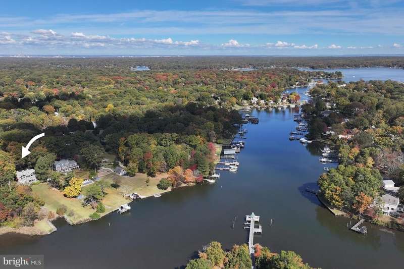 Discover one of Severna Park's most private waterfront settings. Set on a .69 acre lot at the end of a quiet cul-de-sac in the Longmeadow community, this Tudor-style home offers exceptional indoor-outdoor living, peaceful water views, and privacy on Cypress Creek. The Tudor home's two-story foyer is distinctive, with beautiful wood detailing and terrazzo flooring. On the waterside beyond the entry, the spacious kitchen opens directly to the family room. The space is anchored by a two-story wall of windows overlooking the water, creating the central gathering space of the home. Step out onto a large deck from the family room for seamless indoor-outdoor entertaining and enjoy an easy stroll down to the water. A formal dining room with hardwood floors leads to the adjoining living room with a wood-burning fireplace. The rooms are graciously proportioned. A den at the front of the home provides a quiet workspace with peaceful views of the front yard. The bedroom layout offers valuable versatility. The primary suite, with ensuite bathroom and balcony overlook, and two additional bedrooms are located together on the upper level above the foyer. An additional bedroom is accessed by its own staircase off the living room, making it ideal for guests, in-laws, or an au pair. The fully finished walkout lower level includes a full bathroom, large recreation room, and a potential additional bedroom. It extends the living space even further and connects directly to the waterside patio. Mature trees, thoughtful landscaping, and Cypress Creek waterfrontage create a true waterfront retreat. The gentle slope to the water puts the home at an ideal elevation without making water accessibility a challenge. The private boat ramp is a unique feature and allows the owner to take advantage of launching a boat at their convenience. Even with its extraordinary privacy, the location remains exceptionally convenient. Severna Park schools, Kinder Farm Park, the B&A Trail, and shops and dining are minutes away. Commuters benefit from easy access to Annapolis, Baltimore, and Fort Meade, while boaters will enjoy the quick, scenic run from Cypress Creek to the Magothy River and out to the Chesapeake Bay. This is a rare opportunity to own a classic home in a private setting, with peaceful water views and deep-water access in the heart of Severna Park.