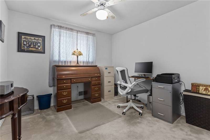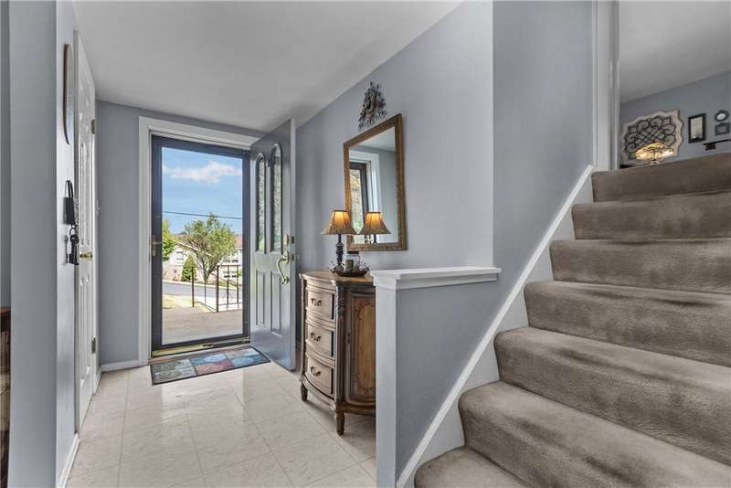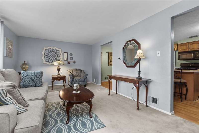Discover this lovingly maintained home inside & out, offering a 1-year Home Warranty for peace of mind. The entry invites you to relax in the cozy gameroom or head up a few stairs to a bright, sun-filled living room. Original oak hardwood floors lie beneath the carpet here, extending under the dining room & all three bedrooms?ready to be uncovered & restored for classic charm. The kitchen features maple cabinetry, black Whirlpool appliances, & an island for casual seating, flowing into a dining room with access to a private 18x15 covered patio w/storage above, perfect for morning coffee or evening sunsets. Upstairs, 3 bedrooms share a full bath, & don't forget those oak hardwoods under carpets. Entry-level includes a half bath & a 15x11 storage room. A 2-car heated garage with a 13x6 storage room, laundry area, plus an expansive concrete driveway, make everyday living effortless. Prime location near I-79, Rt. 19, Southpointe, shopping, dining, parks, & more! This home is ready for you!