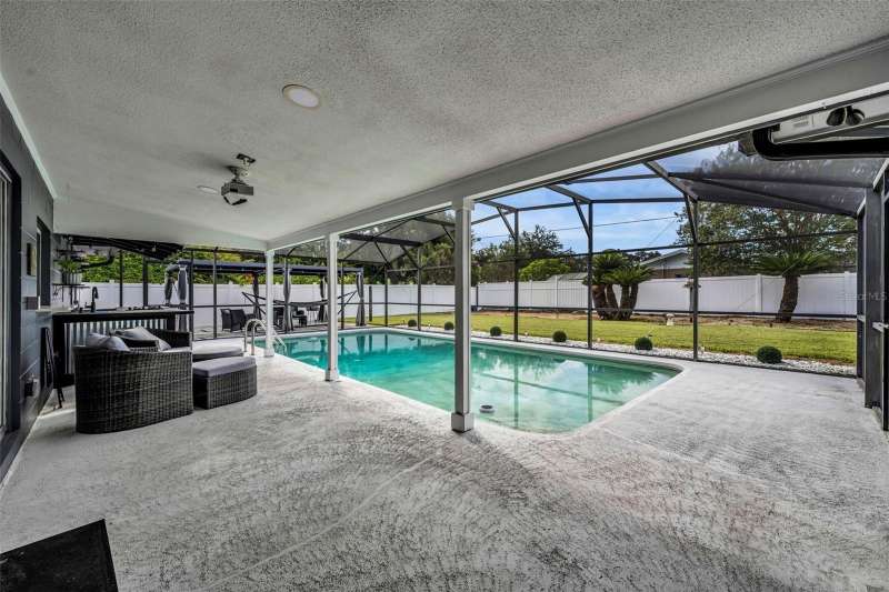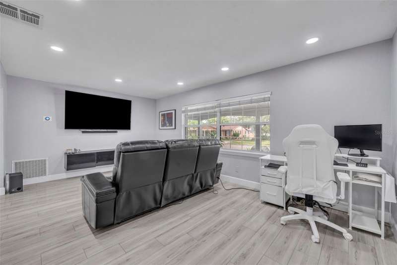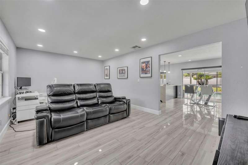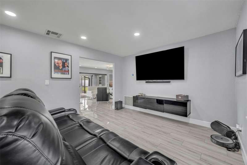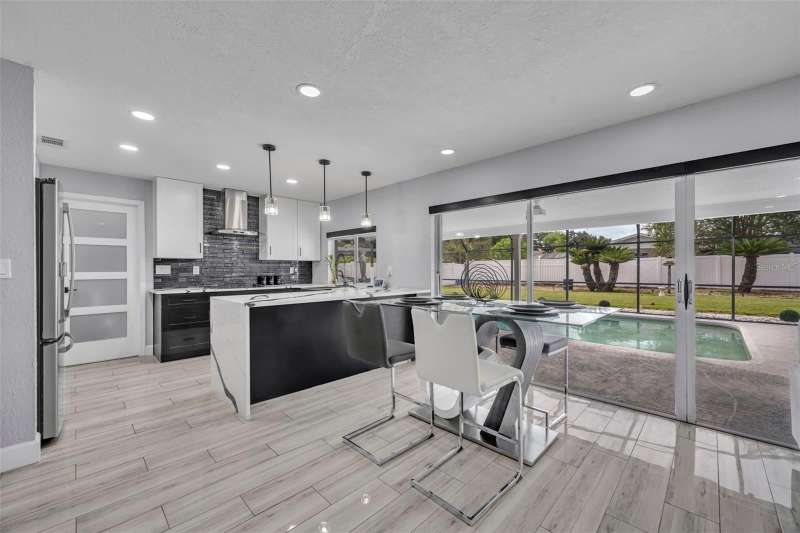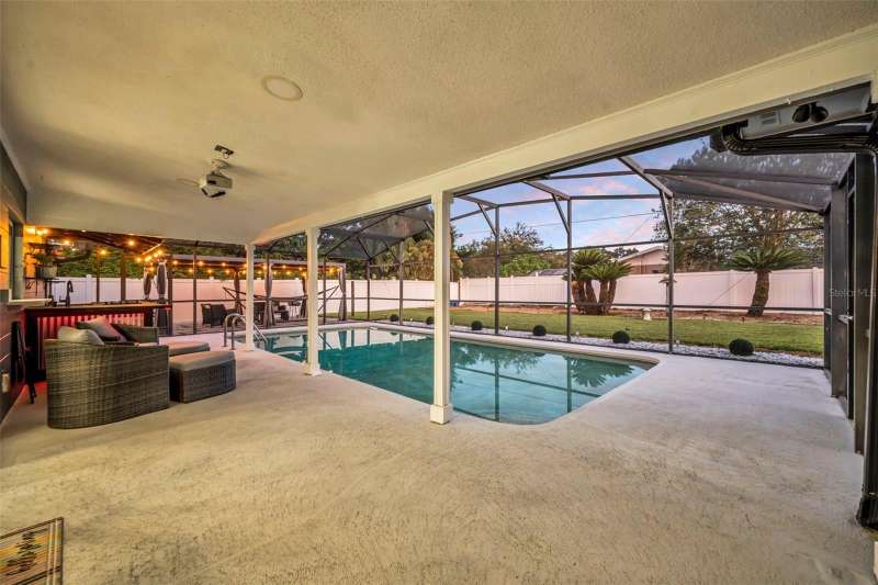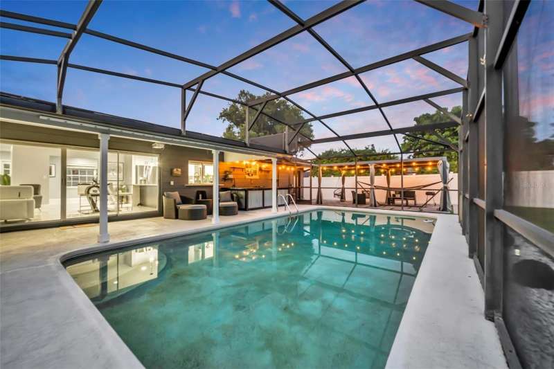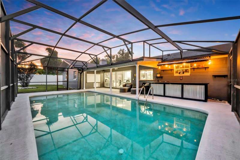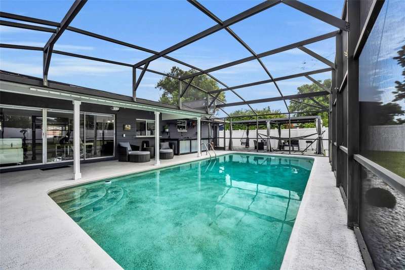 Welcome to Glen Arden Heights! Discover this beautifully renovated 3-bedroom, 2-bath pool home just north of Maitland, where comfort, style, and entertainment come together seamlessly. Step inside to find an open-concept living, kitchen, and dining area filled with natural light—creating a bright, airy atmosphere that’s perfect for both everyday living and gatherings. A separate family room offers a cozy retreat, ideal for movie nights or relaxing with friends. The primary suite opens directly to the sparkling pool, giving you a private oasis just steps from your bedroom. Outdoors, the backyard is built for entertaining with a custom outdoor kitchen featuring dual gas burners—perfect for poolside cooking and hosting. Enjoy movie nights under the stars with a built-in projection screen and a dedicated alfresco dining area. Beautiful landscaping and accent lighting enhance the home’s curb appeal and charm, creating a warm, inviting ambiance day and night. This move-in ready home is the perfect blend of modern living and Florida lifestyle—ready to impress your most discerning buyers.