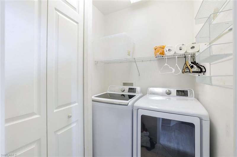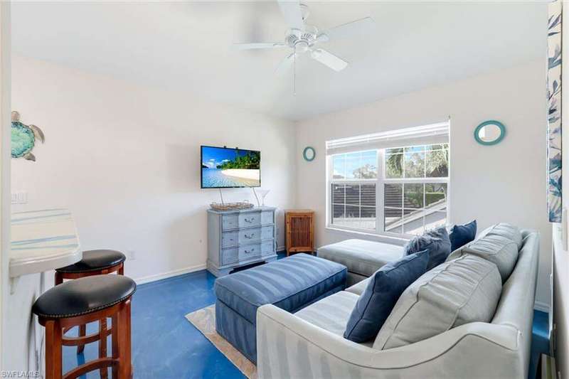 Welcome to effortless luxury and the most spectacular wrap-around views of the lake and golf course! This turnkey 2nd-floor end-unit in the highly sought-after Wedgewood at The Strand combines privacy, elegance, and convenience. Positioned as an upper-end unit with maximum space between buildings, it offers an unmatched sense of openness and tranquility. Step inside to discover soaring ceilings, new flooring throughout, and freshly painted interiors, creating a bright and inviting ambiance. The open-concept layout seamlessly connects the living and dining areas to a beautifully updated kitchen featuring modern countertops and stainless-steel appliances. A versatile den provides the ideal space for a TV lounge, home office, or guest retreat. Both full bathrooms are tastefully appointed, including the spacious primary suite that opens to the lanai-where breathtaking views await. From your expansive screened lanai, take in panoramic lake and golf course views, or simply lower the electric shutters for convenience when traveling or during storms. Additional features include new hurricane-impact windows and sliders, a newer roof, updated gutters and landscaping, and a detached 1-car garage. Located within the prestigious Strand community, residents enjoy an optional 27-hole championship golf course membership and access to world-class amenities-a fitness center, spa, junior Olympic-sized pool, multiple dining venues, and social activities such as croquet, bocce, pickleball, basketball, and tennis. Turnkey and move-in ready, this exceptional home offers low-maintenance luxury living with some of the finest views in Naples. Schedule your private showing today and start living The Strand lifestyle!