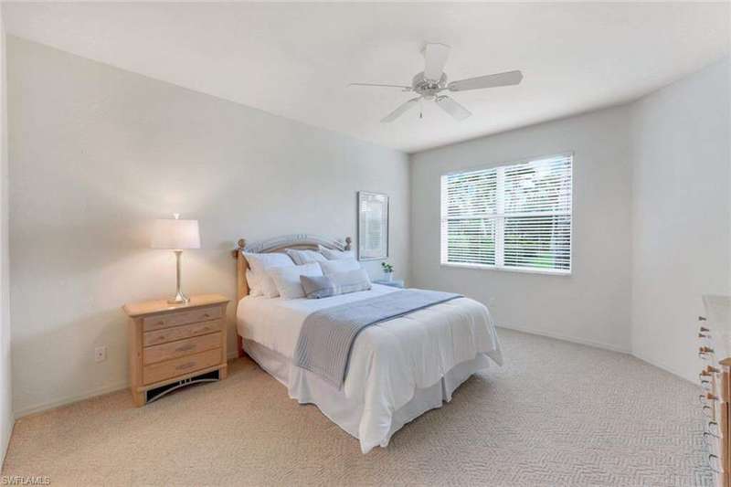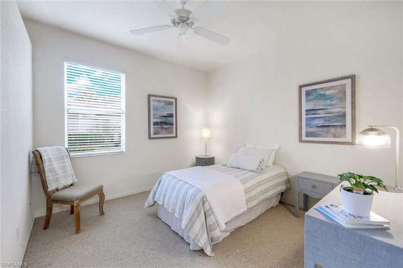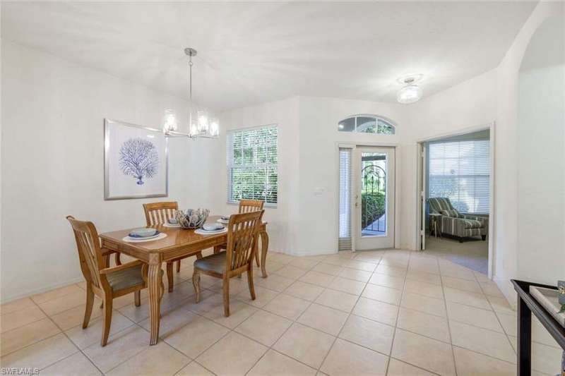 Welcome to the neighborhood! Don't miss your opportunity to see this light & bright single family home situated on a pie shaped lot with attractive landscaped views in the gated community of Carlton Lakes. This adorable 3 bedroom plus den home has an open concept floor plan that is great for entertaining family and friends. You'll enjoy volume ceilings, decorative archways, upgraded carpet in bedrooms, tile laid on the diagonal and updated lighting in the kitchen, dining & entryway. The kitchen features wood cabinetry, Corian countertops, an eat in kitchen area & breakfast bar. Two spacious guest bedrooms share a full bath with shower/tub combo. Carlton Lakes amenities include tennis courts, bocce courts, fishing pier, a club house with a fitness room, 60 ft lap pool and hot tub. You'll enjoy being close to shopping, dining and 6 miles from Naples white sand beaches. This home is sold with a 1 year home warranty for the new buyer at closing.