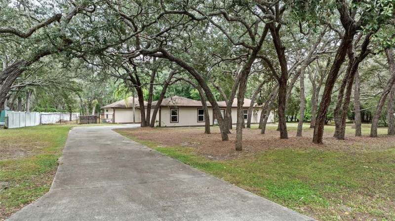 Welcome to your future home at 15005 Noon Court, Spring Hill, FL 34610 a spacious 3 bed 2 bath private retreat nestled in the tranquil Shady Hills area. This unique home sits on around 1.24 acres, offering generous yard space and privacy with beautiful pond in the views. Vaulted ceilings with exposed beams in the main living area and master create a rustic feel. Kitchen with modern finishes, stainless appliances, and ample cabinetry. Master suite with garden tub, dual vanities, and separate tiled shower. The spacious secondary bedrooms are across the house and have a shared bonus area that would be used as a play area, sitting room or office. There is a large laundry room with washer and dryer hookups, a detached 2 car garage and long driveway offering plenty of parking. Quiet, shaded neighborhood in Shady Hills, just off County Line Road, offering a peaceful, semi-rural feel while still accessible to major roads. Close to local shopping centers, dining, and services. Nature and recreation nearby: beaches, parks, and the famous Weeki Wachee Springs are all within easy reach. $75 App fee/adult, security deposit equal to one month's rent, $300 Non Refundable Pet Fee Each Pet, $75 tenant annual processing fee each household after acceptance, renter's insurance required.