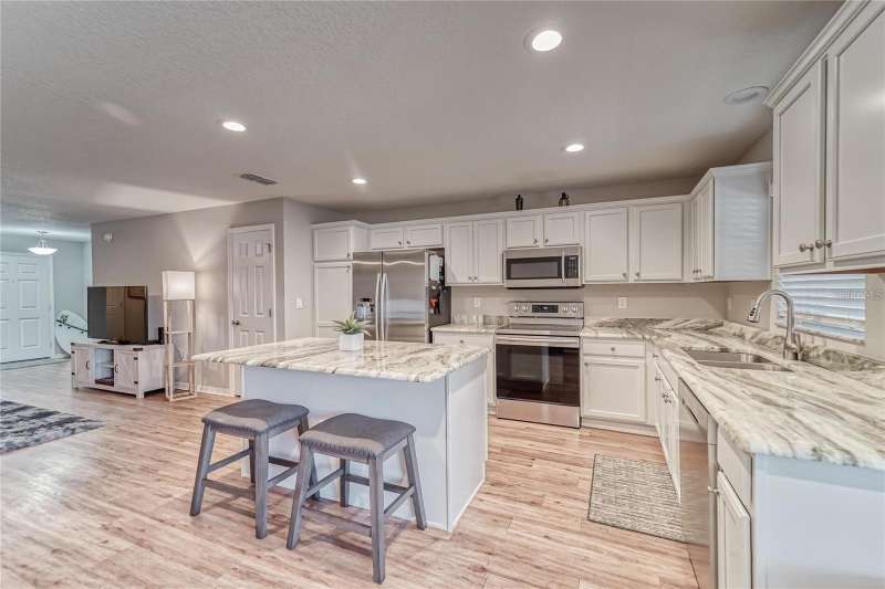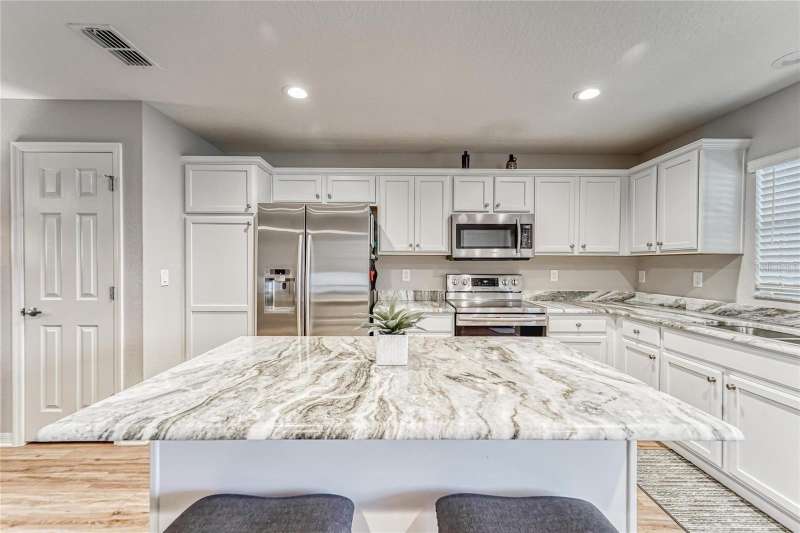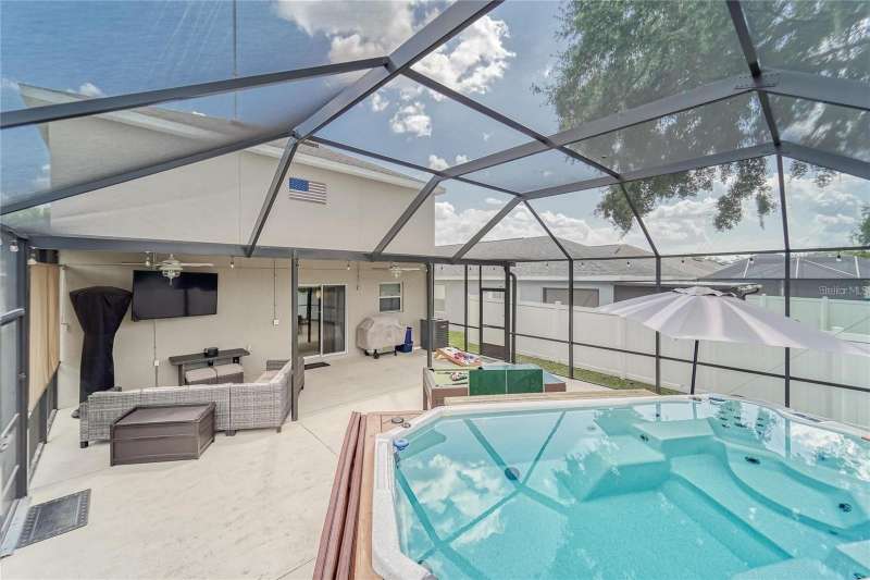 ALL schools are in Fishhawk zone, NO CDD, LOW HOA and Master/Primary bedroom is on the 1st floor. Come view this 4 bedroom, 3 bath, 2 car garage 2 story home with a stand alone spa with bar & bar chairs. Downstairs, enjoy an open living area with the convenience of a drop zone, powder bath & storage closet. The downstairs owner's suite includes dual vanities, a tiled shower with a glass enclosure, a walk-in wardrobe and a linen closet. Upstairs, you'll find four secondary bedrooms and two full baths (one with Jack-and-Jill entries). This home includes many luxurious finishes and low-maintenance features like a gourmet kitchen with granite countertops, kitchen island, soft-close cabinets with decorative knobs/pulls, under-mount sink, pull-down faucet, Samsung stainless steel appliances as well as Refrigerator, energy-efficient LED recessed lighting & sunny dining café. You’ll love the stylish, low maintenance wood vinyl plank flooring throughout the downstairs living area, foyer, and powder room plus low-maintenance vinyl flooring in the laundry room, owner's bath, and upstairs bathrooms. It also includes Mohawk stain-resistant carpet in the bedrooms and stairway plus ceiling fan and cable pre-wires in the gathering room and bedrooms, architectural shingles with a limited lifetime warranty, Florida friendly landscaping with irrigation system and much more! Save on utilities with energy-efficient R-30 ceiling insulation, foam-injected block insulation, double-pane Low-E windows, and a programmable thermostat. This home is nearly NEW. Don’t miss your chance to make this beautiful home yours today!