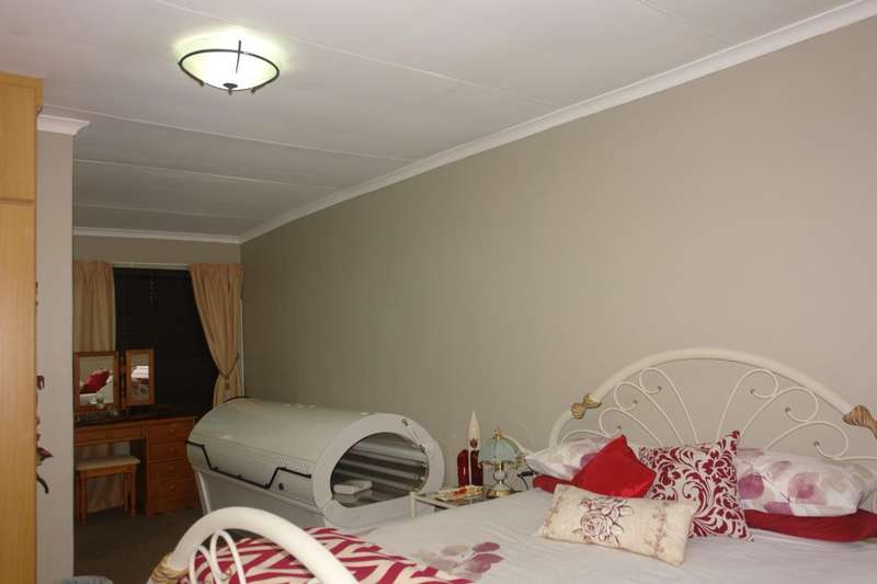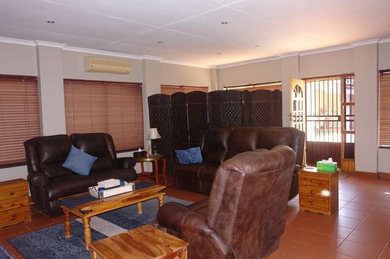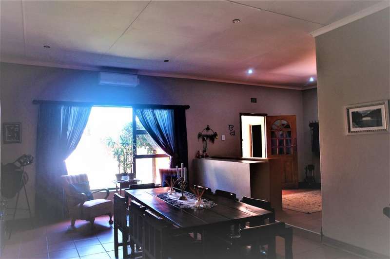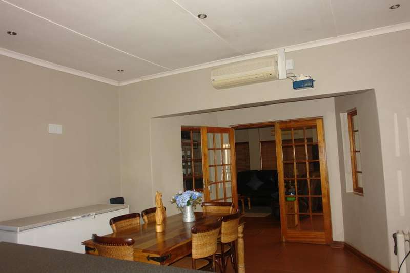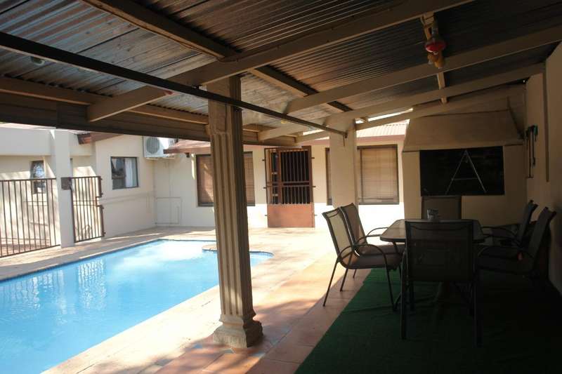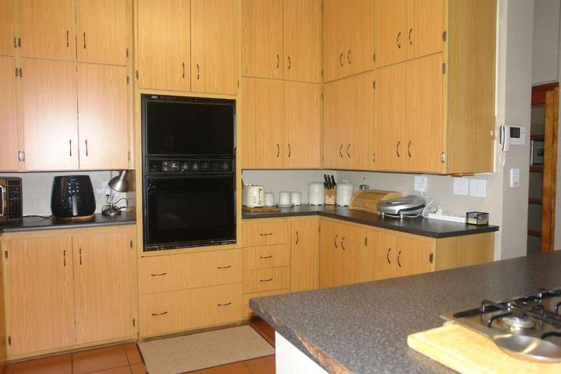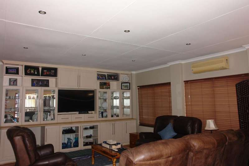 The Property offers 4 bedrooms with air con, 3 bathrooms. Family room, lounge, open plan dining room. Kitchen with built in cupboards, double eye level oven and gas hob, laundry and scullery. The TV room has a beautiful wall to wall built in cupboard and fire place. It leads onto the outside entertainment area with built-in braai and sparkling pool and lush garden. 3 Remote garages.