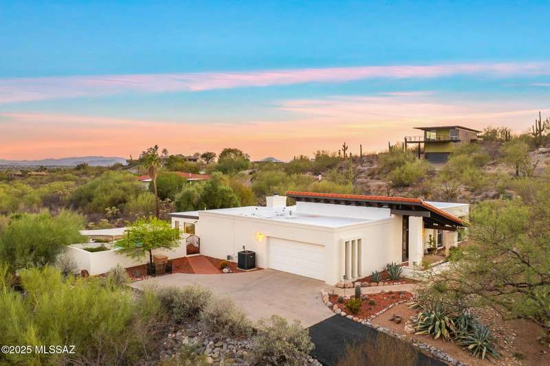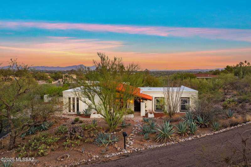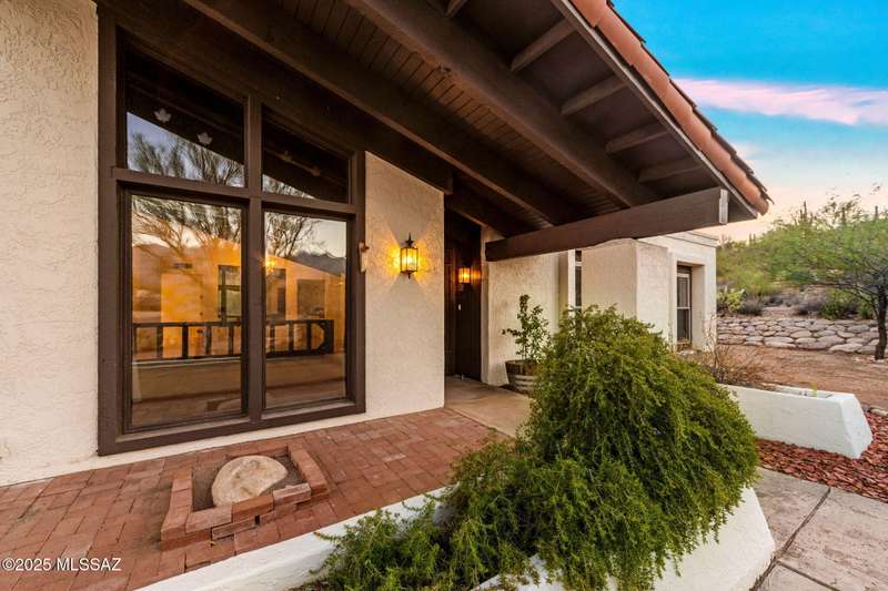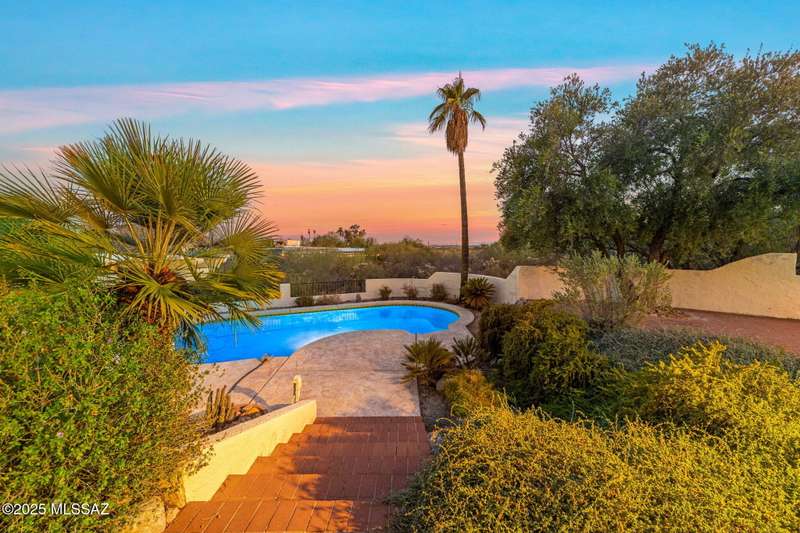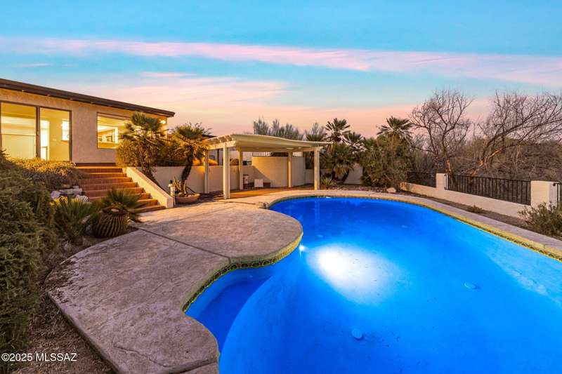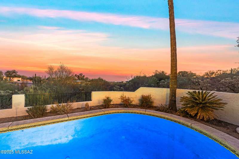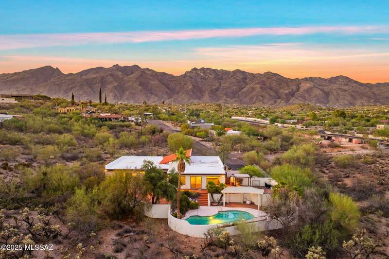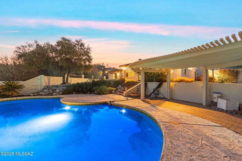 Custom-built 4-bedroom, 2-bath home situated on just over one acre in the Foothills community of Heatherwood Hills. Soaring ceilings, exposed wood beams, and an open floor plan. Enjoy breathtaking mountain views from the front and city lights from the back, which feature a pool and spa area with low-care brick pavers, and a pergola to sit and enjoy the desert landscape. The living room boasts dramatic mountain views, while the family room with a cozy fireplace opens to a spacious kitchen-perfect for entertaining. Formal living and dining areas are highlighted by clerestory windows that fill the space with natural light. A bonus room adds flexible space for work or playroom. Designed to capture the beauty of Tucson living. This home features triple pane windows & a 1 yr old HVAC System.