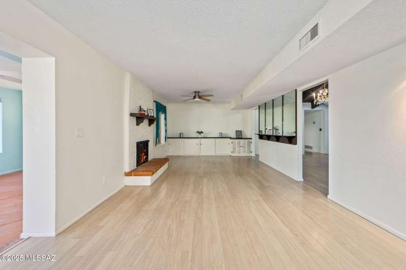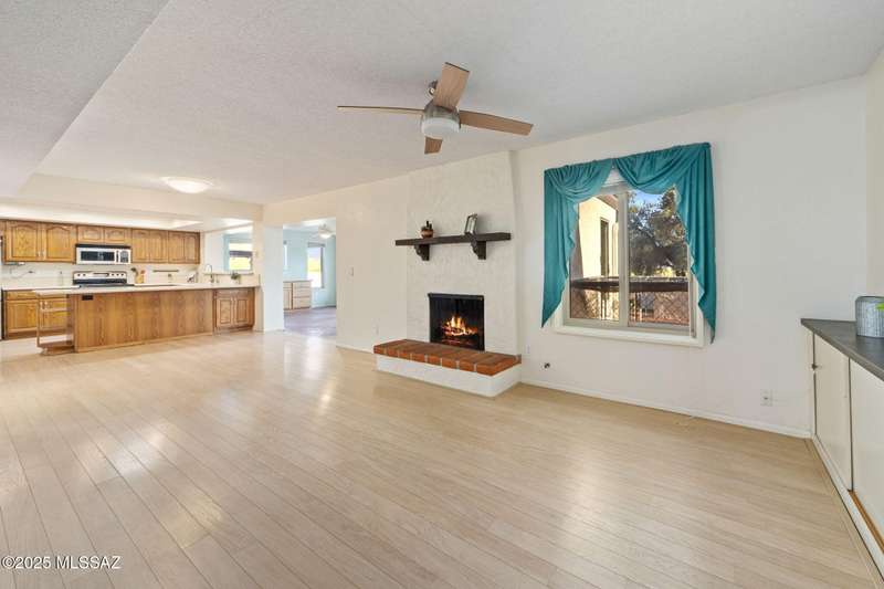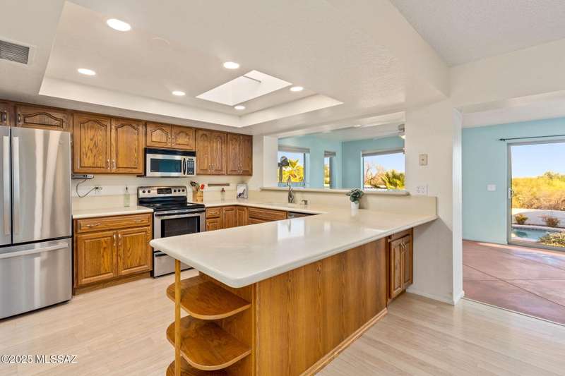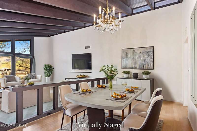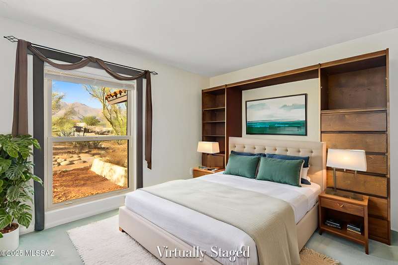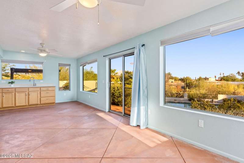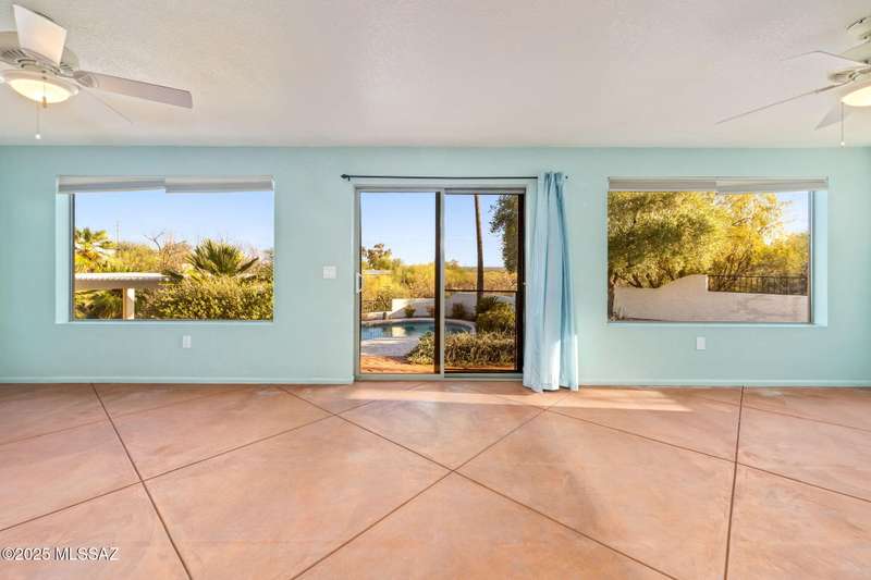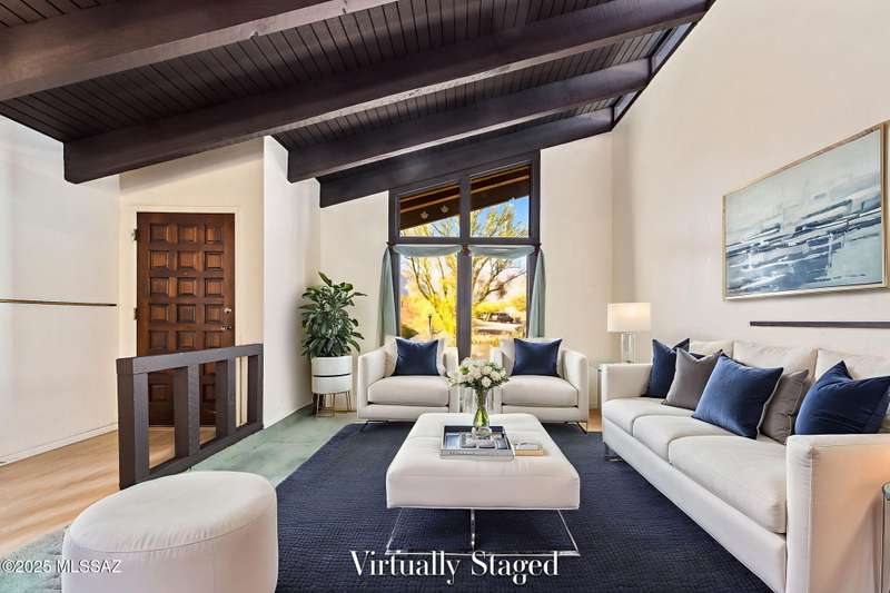 Custom-built 4-bedroom, 2-bath home situated on just over one acre in the Foothills community of Heatherwood Hills. Soaring ceilings, exposed wood beams, and an open floor plan. Enjoy breathtaking mountain views from the front and city lights from the back, which feature a pool and spa area with low-care brick pavers, and a pergola to sit and enjoy the desert landscape. The living room boasts dramatic mountain views, while the family room with a cozy fireplace opens to a spacious kitchen-perfect for entertaining. Formal living and dining areas are highlighted by clerestory windows that fill the space with natural light. A bonus room adds flexible space for work or playroom. Designed to capture the beauty of Tucson living. This home features triple pane windows & a 1 yr old HVAC System.