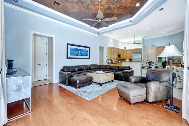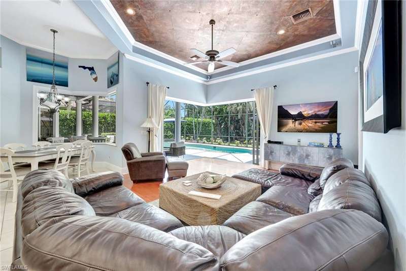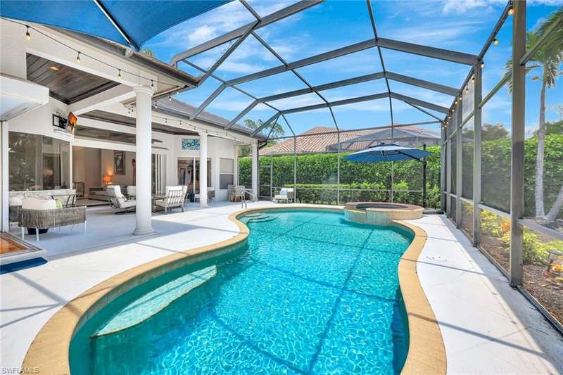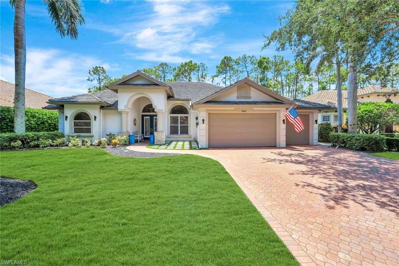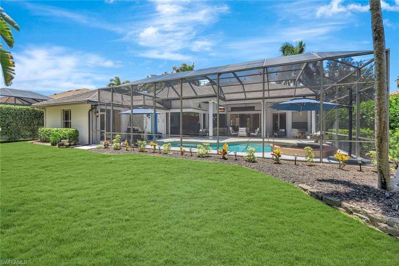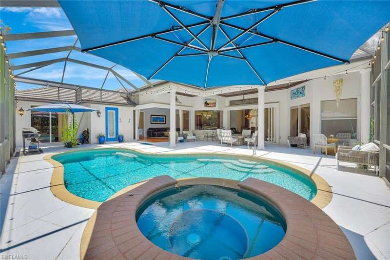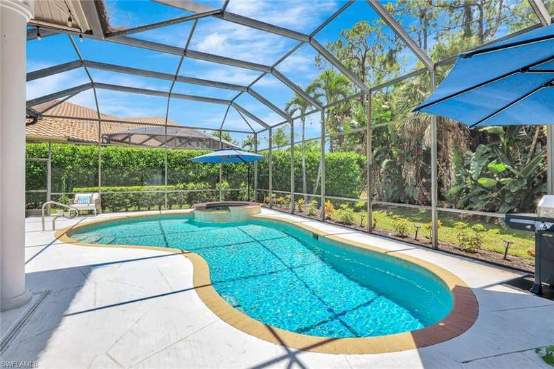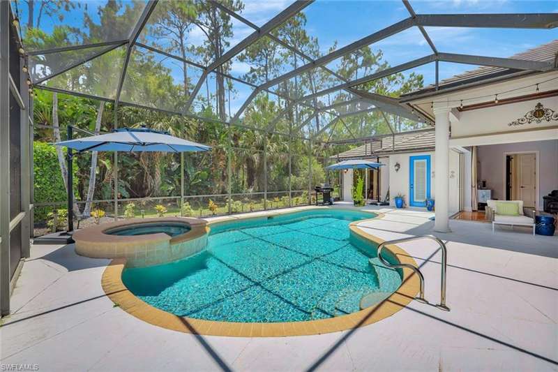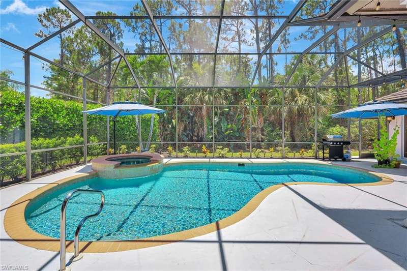 Spacious Elegance in Sought-After Wilshire Lakes Welcome to this beautifully appointed residence nestled in the desirable, gated community of Wilshire Lakes just minutes from Naples world-renowned beaches, upscale shopping, and premier dining. Boasting nearly 3,000 square feet of living space, this 5-bedroom, 3-bath home offers an open-concept floor plan that seamlessly blends comfort and functionality. Soaring ceilings and expansive sliding glass doors flood the interior with natural light and invite you to the covered lanai complete with a sparkling pool and spa perfect for relaxing or entertaining. The thoughtfully designed layout includes a convenient pool bath, ideal for effortless indoor-outdoor living. Set on a lush, private lot with a tranquil backyard, this home features a spacious 3-car garage and a versatile split-bedroom design to suit any lifestyle. Enjoy the serenity of a quiet, tree-lined street while still being connected to everything that makes North Naples so spe