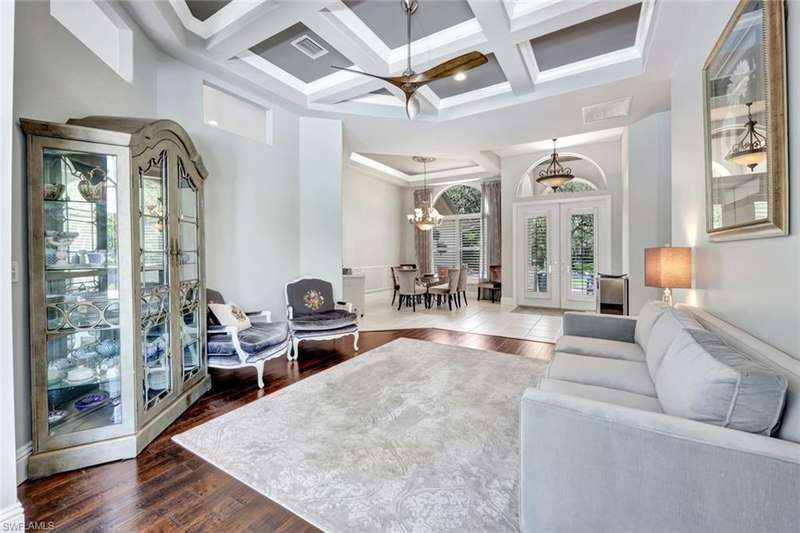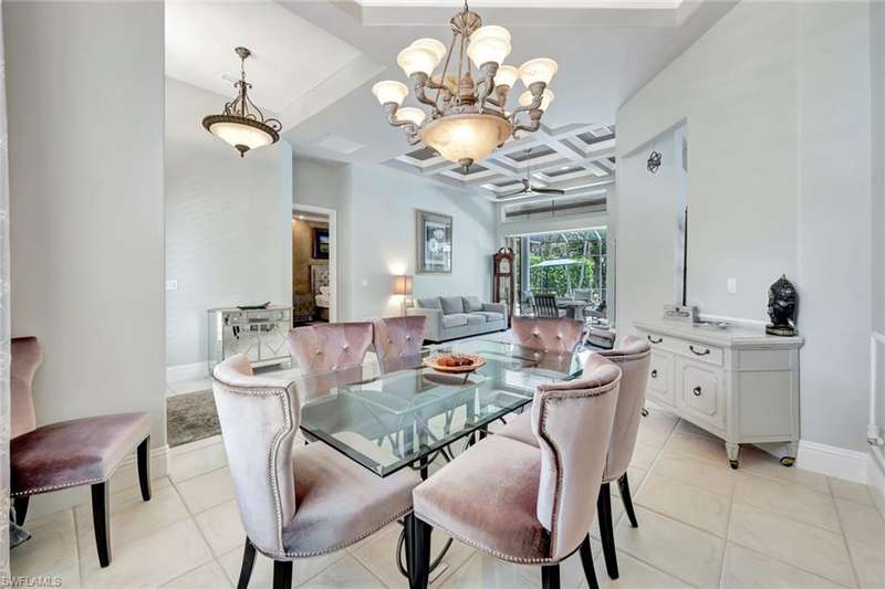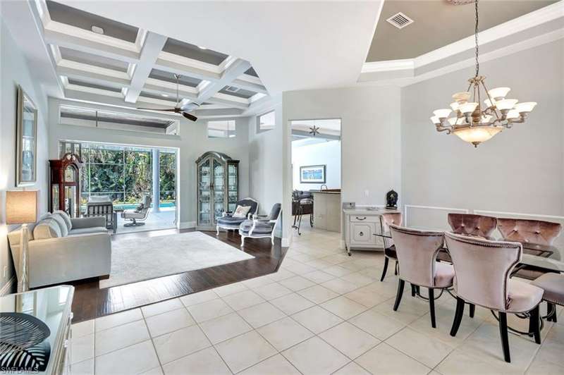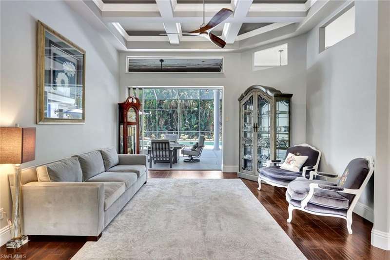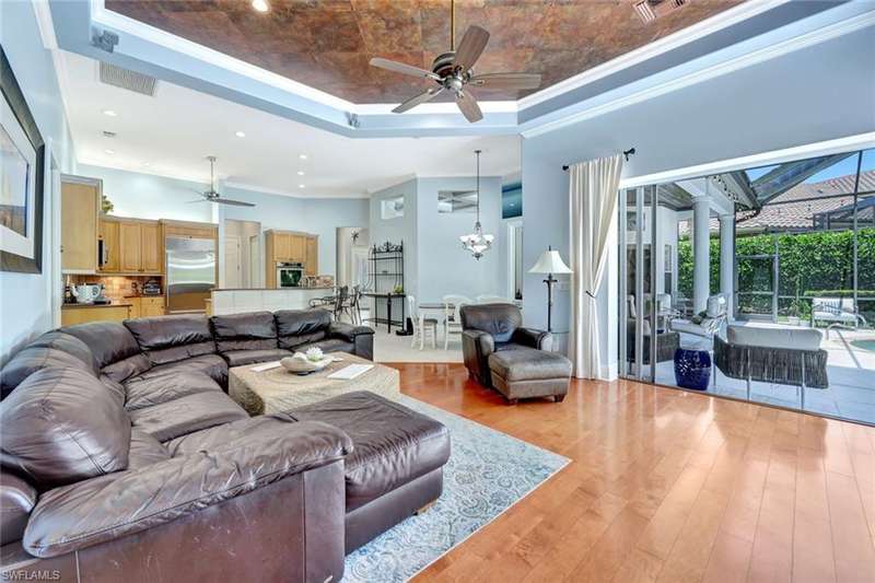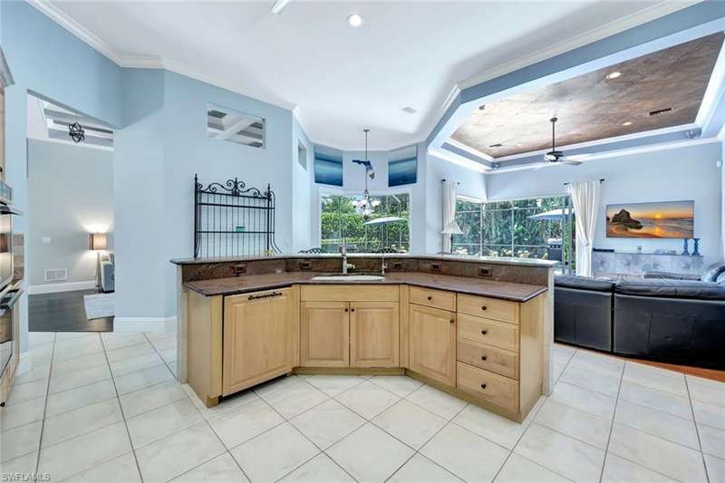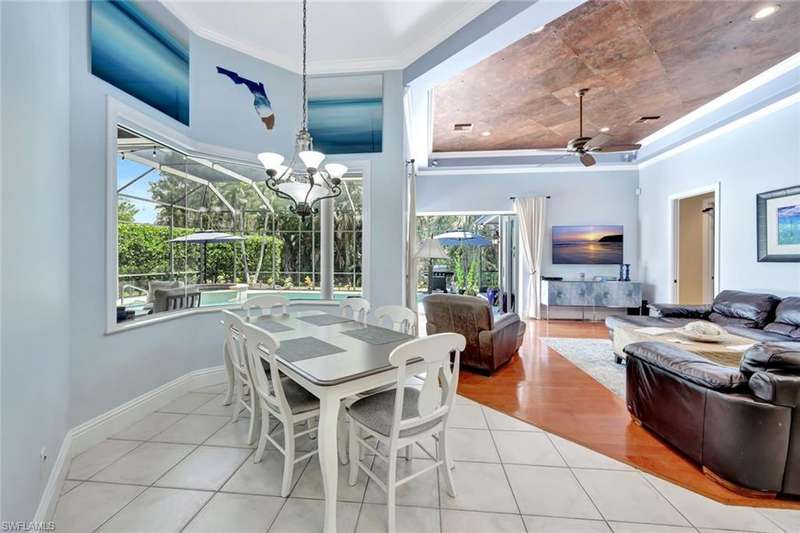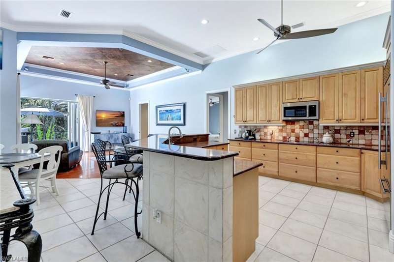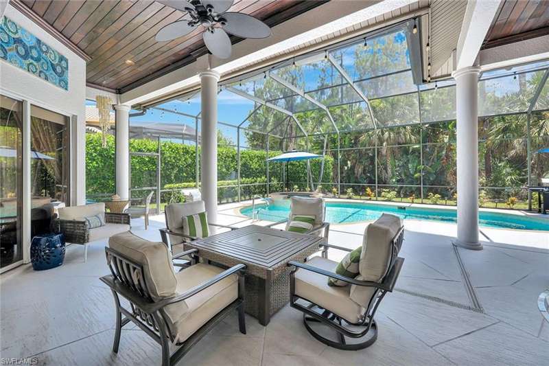 Spacious Elegance in Sought-After Wilshire Lakes Welcome to this beautifully appointed residence nestled in the desirable, gated community of Wilshire Lakes just minutes from Naples world-renowned beaches, upscale shopping, and premier dining. Boasting nearly 3,000 square feet of living space, this 5-bedroom, 3-bath home offers an open-concept floor plan that seamlessly blends comfort and functionality. Soaring ceilings and expansive sliding glass doors flood the interior with natural light and invite you to the covered lanai complete with a sparkling pool and spa perfect for relaxing or entertaining. The thoughtfully designed layout includes a convenient pool bath, ideal for effortless indoor-outdoor living. Set on a lush, private lot with a tranquil backyard, this home features a spacious 3-car garage and a versatile split-bedroom design to suit any lifestyle. Enjoy the serenity of a quiet, tree-lined street while still being connected to everything that makes North Naples so spe