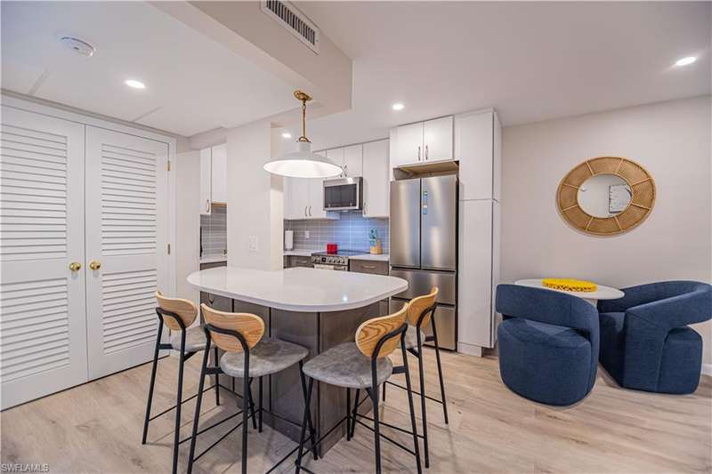 Naples Mariner Condominiums is one of the best kept secrets in Old Naples and one of the only condominium complexes that allow short term rentals which optimizes rental revenue. This perfectly renovated and impeccably maintained, ground floor condo is set inside of the dreamy mid-century modern architecture of the property. Experience the charm, comfort and convenience of this location. You will be within 1 block walking distance to our sugar sand beaches & Naples Pier and 2 blocks to the Third Street shops & restaurants. This condo offers everything you need for a perfect Naples lifestyle! Plus the comfort of a properly and well-managed building. Enjoy this upscale neighborhood, the benefits of your own dedicated parking space, 2 storage units, and heated pool. The condo is being sold fully furnished and ready to stay in or rent out immediately. The unit has an outstanding rental history...existing reservations and VRBO listing will be transferred to the new owner.