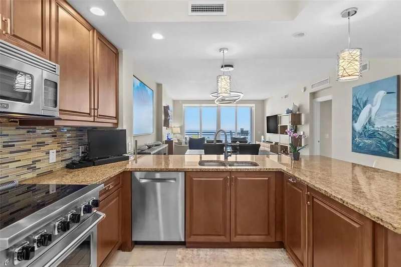 Discover the elegance and unmatched lifestyle of the Water Club on Snell Isle! Exceptional coastal living, gorgeous Tampa Bay views, resort-style amenities, and much more abound in this fabulous two-bedroom/two-bath condo in the posh Water Club condominium located in the heart of Snell Isle, one of St. Pete's most coveted neighborhoods. The Water Club is a welcome retreat from the hustle and bustle of downtown, and the Snell Isle neighborhood is great for enjoying birding, walking, jogging, and biking. Bask in spectacular sunrises, breathtaking views of Tampa Bay and watch dolphins and manatees from your large private balcony. Inside, you will love the open concept living room, dining room, and deluxe kitchen floor plan. The chef and entertainer of the family will delight in the deluxe kitchen with Bosch, JennAir, and LG stainless steel appliances, granite countertops that provide a bonus L-shaped breakfast bar with ample seating all around. Wake up every morning to spectacular sunrises over Tampa Bay from your impressive primary suite, which features floor-to-ceiling sliding hurricane-rated glass doors that open to the balcony with a panel glass railing, one walk-in and one reach-in closet, and a sumptuous ensuite bath with dual vanities, a private water closet, a large garden tub, quartz countertops, a built-in linen closet, and a sizeable glass-enclosed shower. This sumptuous residence features a private elevator foyer, an open and split floor plan, a den, 9'4" ceilings, new HVAC system, rich porcelain tile floors, an interior laundry room, hurricane-rated windows, two premier parking spots (one inside and one covered spot outside the garage), and a private climate-controlled storage unit located just outside the condo's back door. Water Club offers residents first-class resort-style amenities that include a gated and secured building and garage access with bicycle storage, a state-of-the-art fitness center, an elegant clubhouse with a catering kitchen, bar, entertaining facilities, and boardroom, an on-site community manager, a secured package delivery room, a waterside resort-style heated pool and spa, an outdoor grill and bar area, kayak/SUP/canoe storage and launch, a waterside outdoor lounge area with a fire pit and Adirondack chairs, and an expansive dock and fishing pier with harbor access. With proactive reserve funding and attentive onsite management, Water Club ensures a meticulously well-kept community for its residents. Community-wide improvements include: newly enhanced landscaping, LED outdoor lighting, seawall reconstruction, French drain construction, waterproofing of the garages, ample guest parking, newer gas outdoor grills, freshly painted buildings, and refurbishment of the kayak/SUP racks and car wash station. The St. Pete Yacht Club's Snell Isle annex is right next door, and the Vinoy Golf Club is a short walk or golf cart ride away. Located just 5 minutes from the 4th Street N shopping corridor and all the action that downtown St. Pete has to offer: nightlife, shopping, museums, waterside parks, fabulous restaurants, the Vinoy Resort and Golf Club, concerts, festivals, sporting events, and more. The Water Club is conveniently located near I-275 for easy access to Tampa International Airport, downtown Tampa, and all points south.The Water Club has a pet-friendly policy too (size and breed are subject to approval). Tenant to verify all information provided, measurements, and condo rules and regulations.