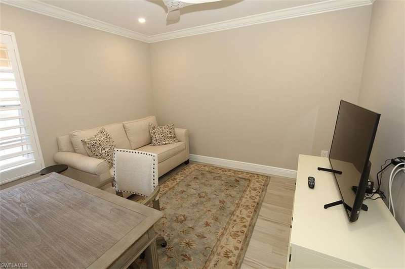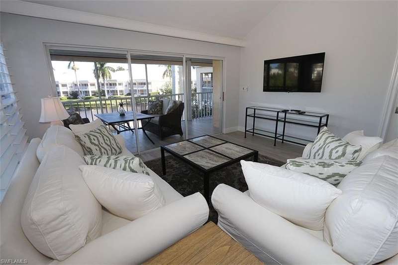 Lakefront in Pelican Bay! Beautiful views from this 2 bedroom + Den/ 2 Bath condominium. Open Floor plan, Spacious, and Neat, this condo has new Living Room Couches as of December 2011. The Dining Area has a table and seating for six. The Kitchen has cream-colored cabinets, stainless refrigerator and dishwasher, bar area. The Master Suite offers a King-Size Bed, fresh linens, matching end tables, desk/chair/WiFi, walk-in Closet, and private bath with walk-in shower. The Guest bedrooms have matching Twin Beds, fresh linens, and share a bathroom with a combination Tub/Shower. The Screened-In Lanai has a table and four chairs for dining, chaise lounge, and gorgeous lake views! Just steps to the Pelican Bay, South Beach Entry. Enjoy the world class amenities of Pelican Bay including two private casual beachfront restaurants, beach shuttle, beach chair & umbrella set-up service, tennis club (pay per play), community fitness center, walking trails and more.