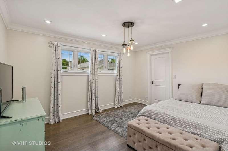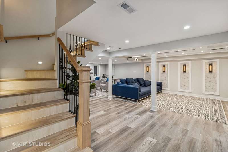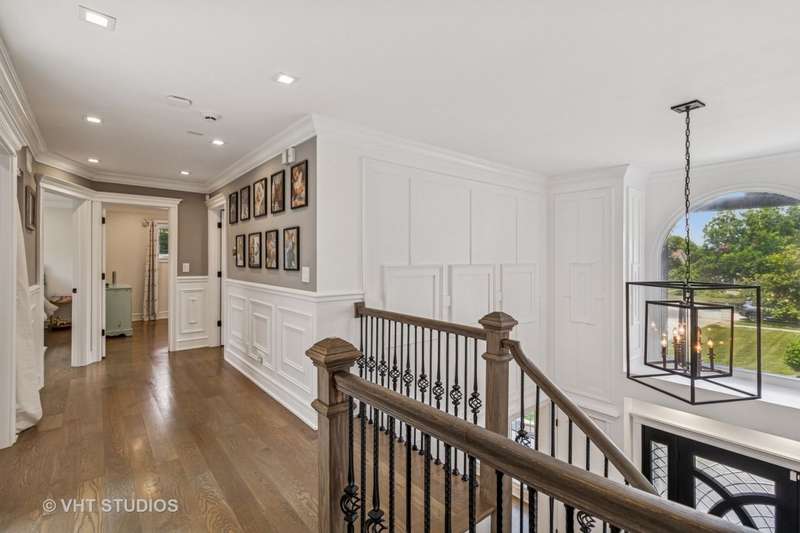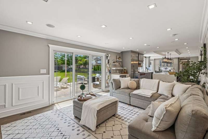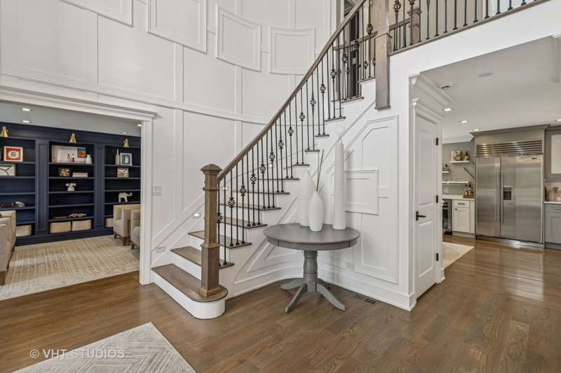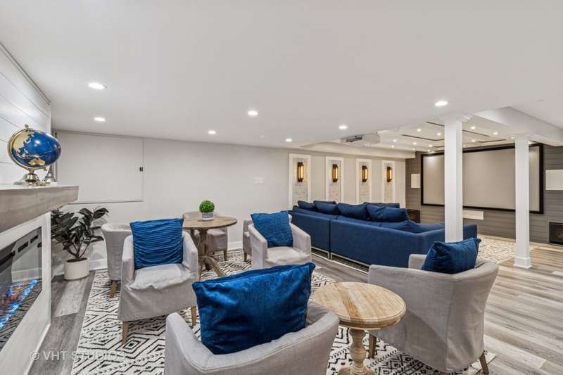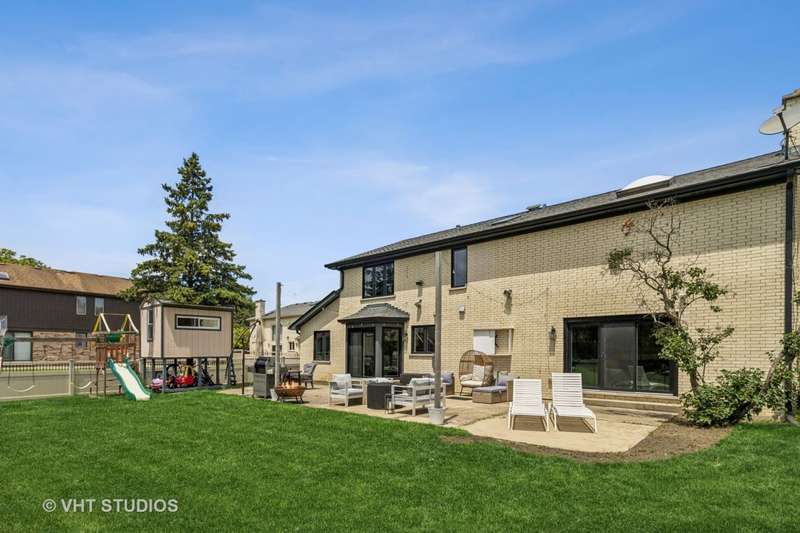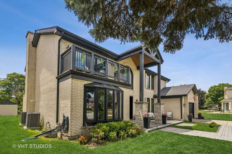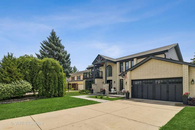 Stunning All-Brick Colonial in Prime Glenview Location Contemporary Elegance Meets Classic Charm. Nestled on nearly a half-acre in a quiet cul-de-sac, this completely renovated 2-story brick colonial offers an extraordinary blend of timeless architecture and striking contemporary design. From the moment you arrive, the beautifully landscaped front yard, brick walkway, and charming front patio set the tone for what's inside. Step into a grand entry foyer featuring a dramatic bridal staircase, flanked by sophisticated formal living and dining spaces adorned with custom built-ins, crown molding, and wainscoting. Gleaming hardwood floors flow throughout the home, complemented by designer light fixtures and upscale finishes at every turn. The heart of the home is the spectacular chef's kitchen equipped with a large island, quartz countertops, Sub-Zero refrigerator, high-end Wolf appliances, walk-in pantry, and a sleek coffee bar. Sunlight pours through expansive windows and a sliding glass door that opens to the backyard. The open layout connects seamlessly to the family room, complete with a custom fireplace, built-in shelving, and a second slider to the outdoor living space, perfect for everyday comfort and effortless entertaining. A versatile first-floor bedroom or office, a stylish half bath, and a functional mudroom round out the main level. Upstairs, the primary suite is a luxurious retreat featuring its own fireplace, walk-in closet, private balcony, and a spa-like en suite bath with a double walk-in shower and soaking tub, truly a showstopper. Three additional generously sized bedrooms each offer their own unique charm and share access to a convenient second-floor laundry room. The finished basement is an entertainer's dream, complete with a movie-ready rec room featuring a big screen and projector, a cozy lounge area with fireplace, a wet bar with quartz island and wine fridge, plus a dedicated playroom and a stunning full bath with walk-in shower. Out back, enjoy a spacious patio and a lush backyard oasis, ideal for summer barbecues, relaxing evenings, and year-round enjoyment.
