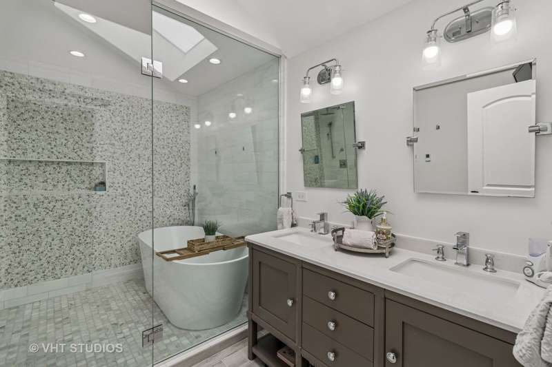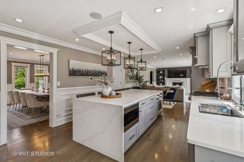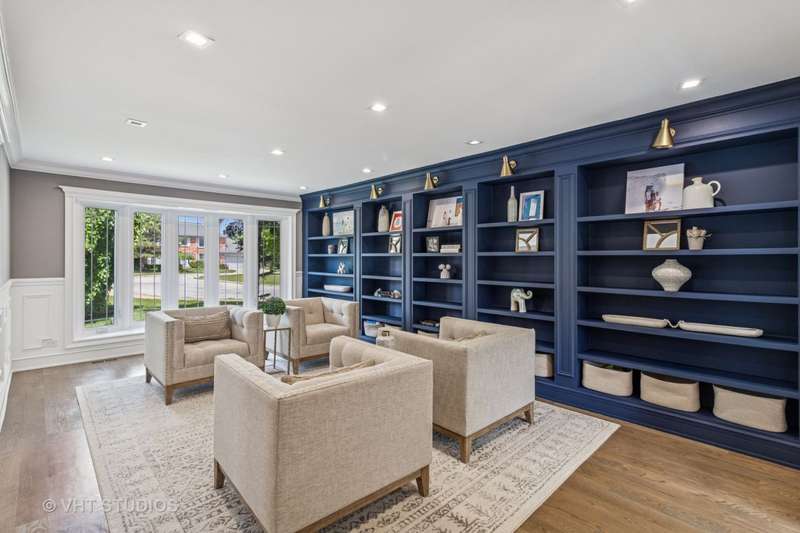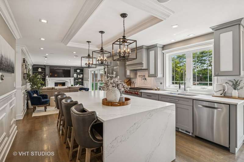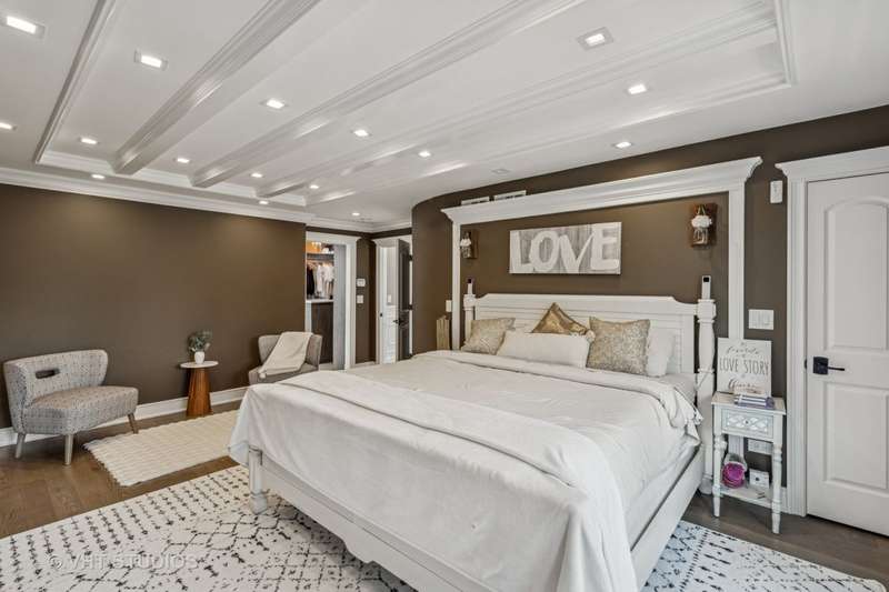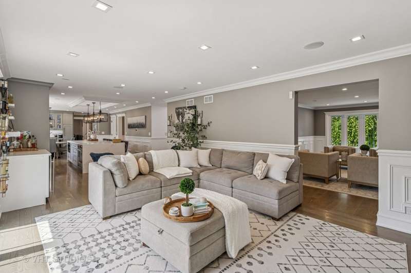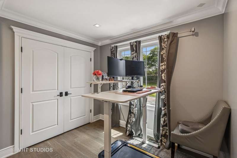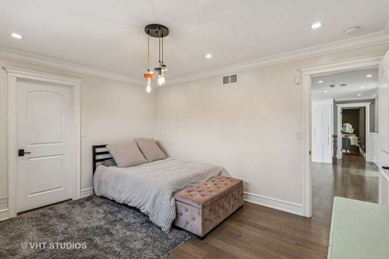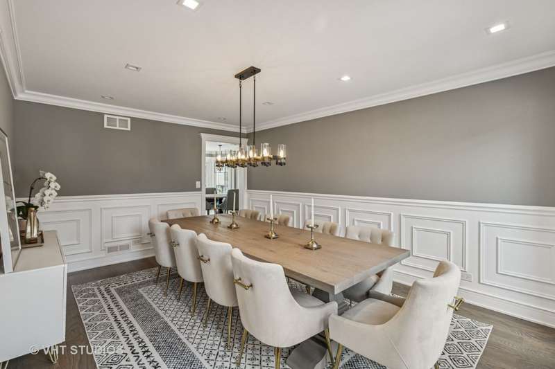 Stunning All-Brick Colonial in Prime Glenview Location Contemporary Elegance Meets Classic Charm. Nestled on nearly a half-acre in a quiet cul-de-sac, this completely renovated 2-story brick colonial offers an extraordinary blend of timeless architecture and striking contemporary design. From the moment you arrive, the beautifully landscaped front yard, brick walkway, and charming front patio set the tone for what's inside. Step into a grand entry foyer featuring a dramatic bridal staircase, flanked by sophisticated formal living and dining spaces adorned with custom built-ins, crown molding, and wainscoting. Gleaming hardwood floors flow throughout the home, complemented by designer light fixtures and upscale finishes at every turn. The heart of the home is the spectacular chef's kitchen equipped with a large island, quartz countertops, Sub-Zero refrigerator, high-end Wolf appliances, walk-in pantry, and a sleek coffee bar. Sunlight pours through expansive windows and a sliding glass door that opens to the backyard. The open layout connects seamlessly to the family room, complete with a custom fireplace, built-in shelving, and a second slider to the outdoor living space, perfect for everyday comfort and effortless entertaining. A versatile first-floor bedroom or office, a stylish half bath, and a functional mudroom round out the main level. Upstairs, the primary suite is a luxurious retreat featuring its own fireplace, walk-in closet, private balcony, and a spa-like en suite bath with a double walk-in shower and soaking tub, truly a showstopper. Three additional generously sized bedrooms each offer their own unique charm and share access to a convenient second-floor laundry room. The finished basement is an entertainer's dream, complete with a movie-ready rec room featuring a big screen and projector, a cozy lounge area with fireplace, a wet bar with quartz island and wine fridge, plus a dedicated playroom and a stunning full bath with walk-in shower. Out back, enjoy a spacious patio and a lush backyard oasis, ideal for summer barbecues, relaxing evenings, and year-round enjoyment.
