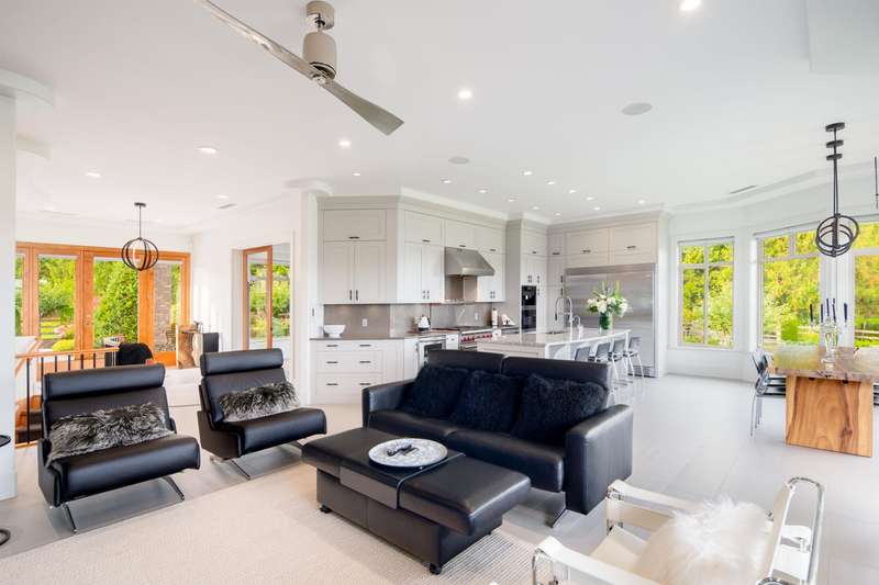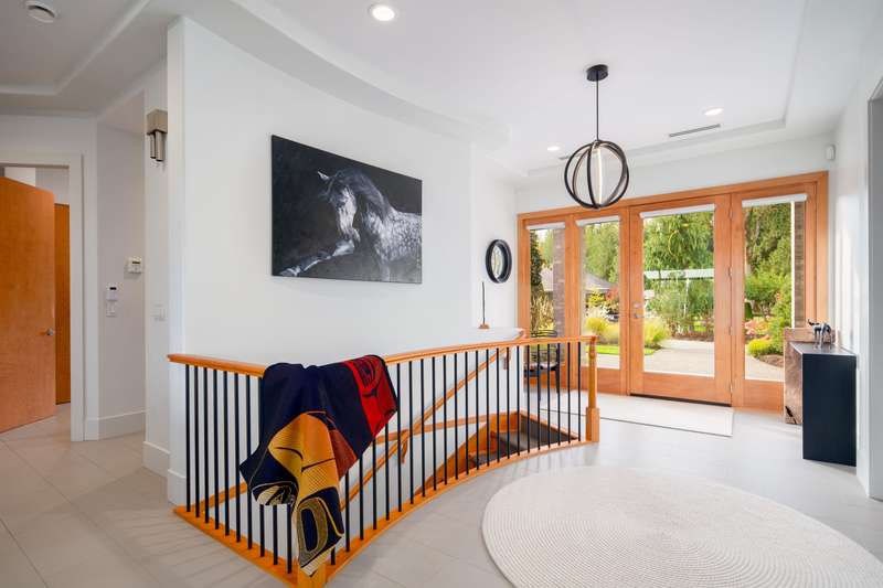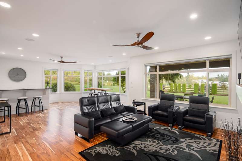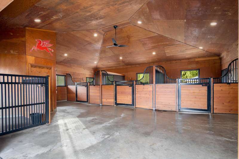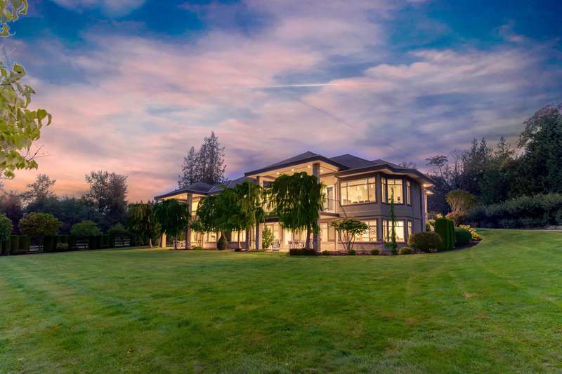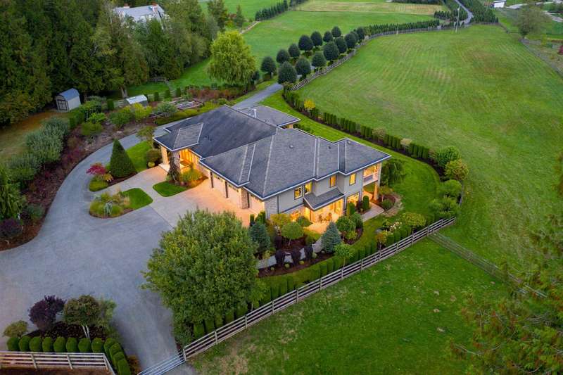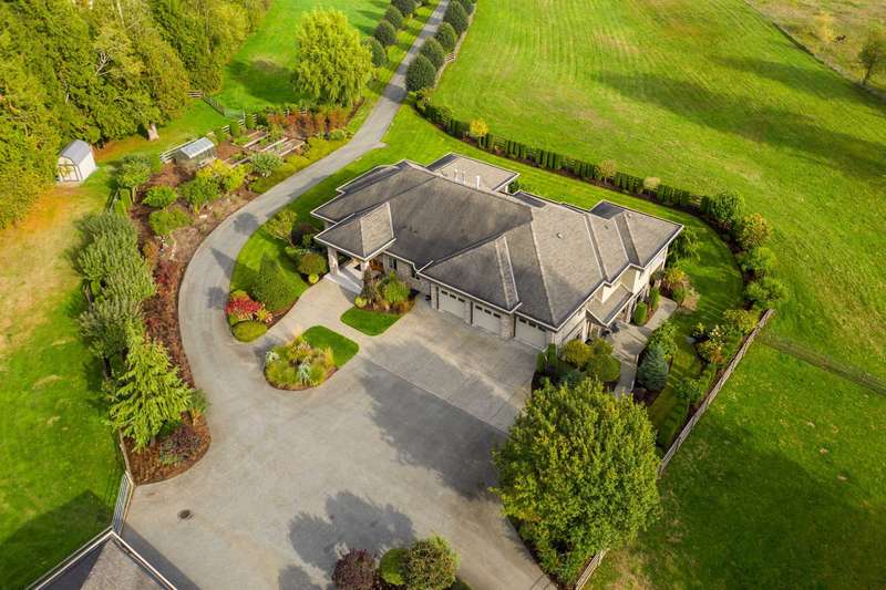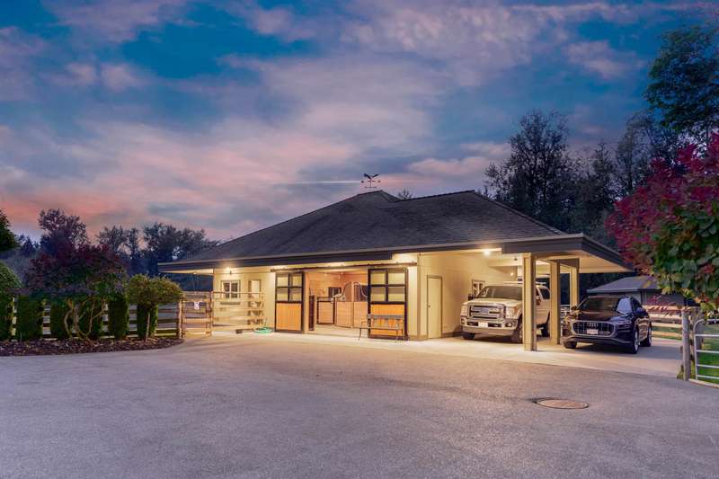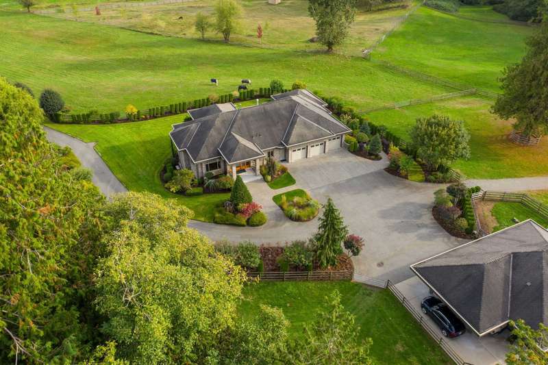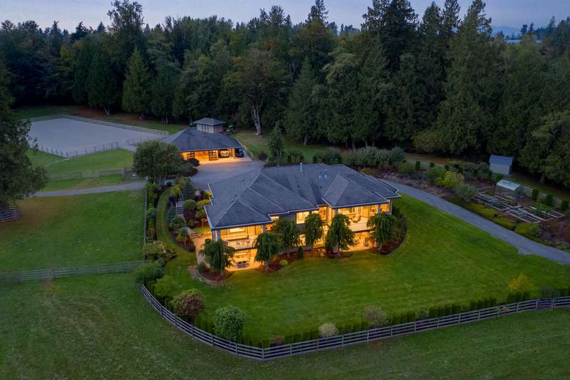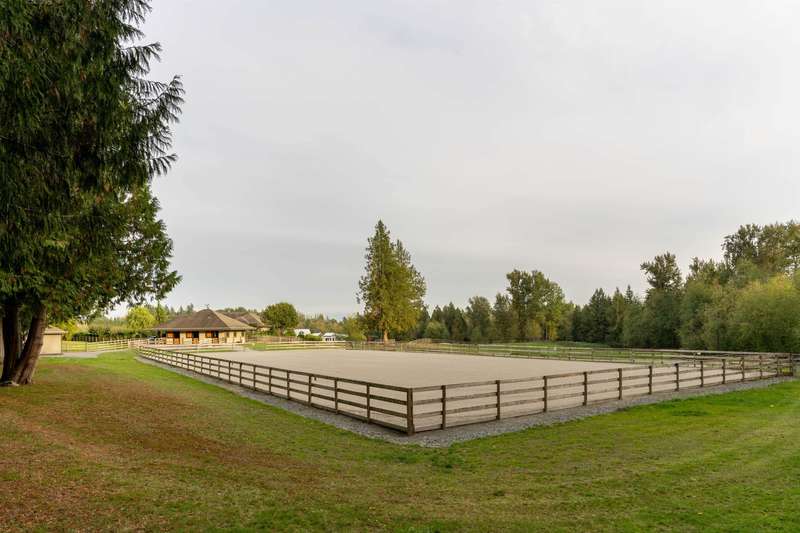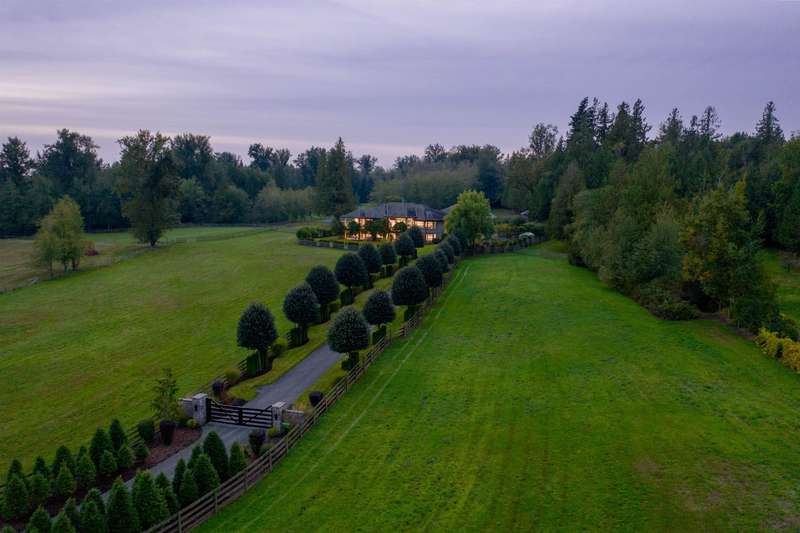 Outstanding 28.39-acre Equestrian Estate, 1000’ tree-lined commercial grade driveway with dual automated gates. Highlights include a boutique 3-stall barn, Olympic-sized outdoor arena, rolling grass pastures, and 4 km of private riding trails. The fully renovated 6412 SF, 6-bed, 6-bath home offers 10’ ceilings, two luxury kitchens, spa-inspired baths, gym, and stunning Mount Baker views. Property includes irrigated lawns, fenced paddocks, hay fields, fruit trees, and organic gardens. A rare opportunity for turnkey country living, with first class equestrian facilities.